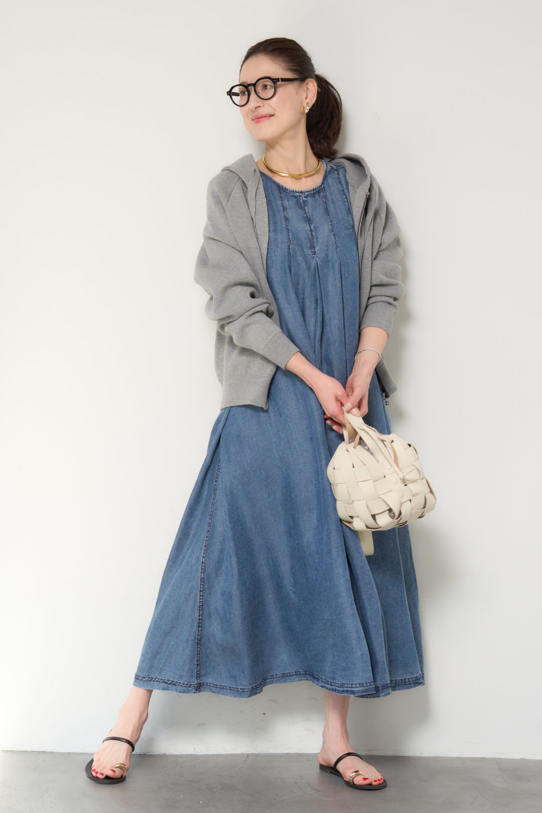 ソフトデニムステッチワンピース