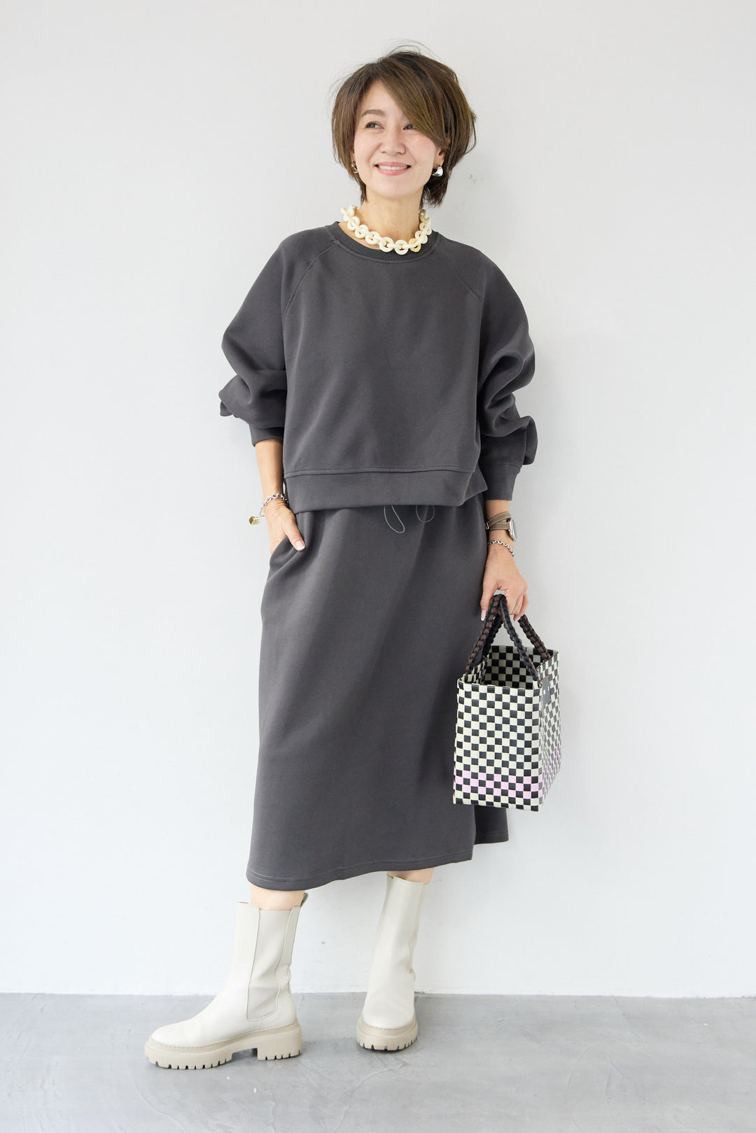 [SET]ボートネックニットプルオーバー+タックボリュームスカート(2set)