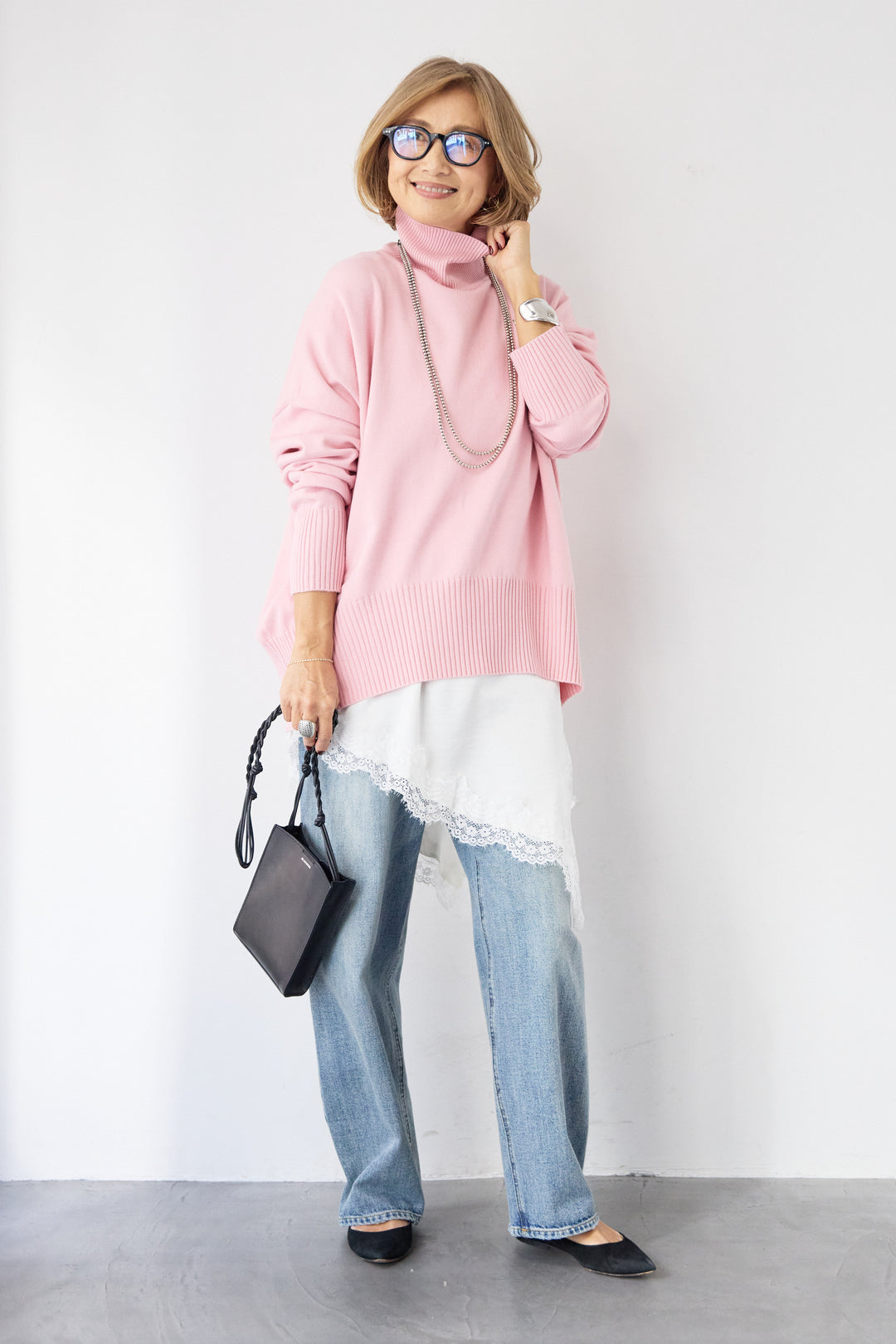 [SET]ゆるシルエットタートルネックニット+アシメレースキャミソール(2set)