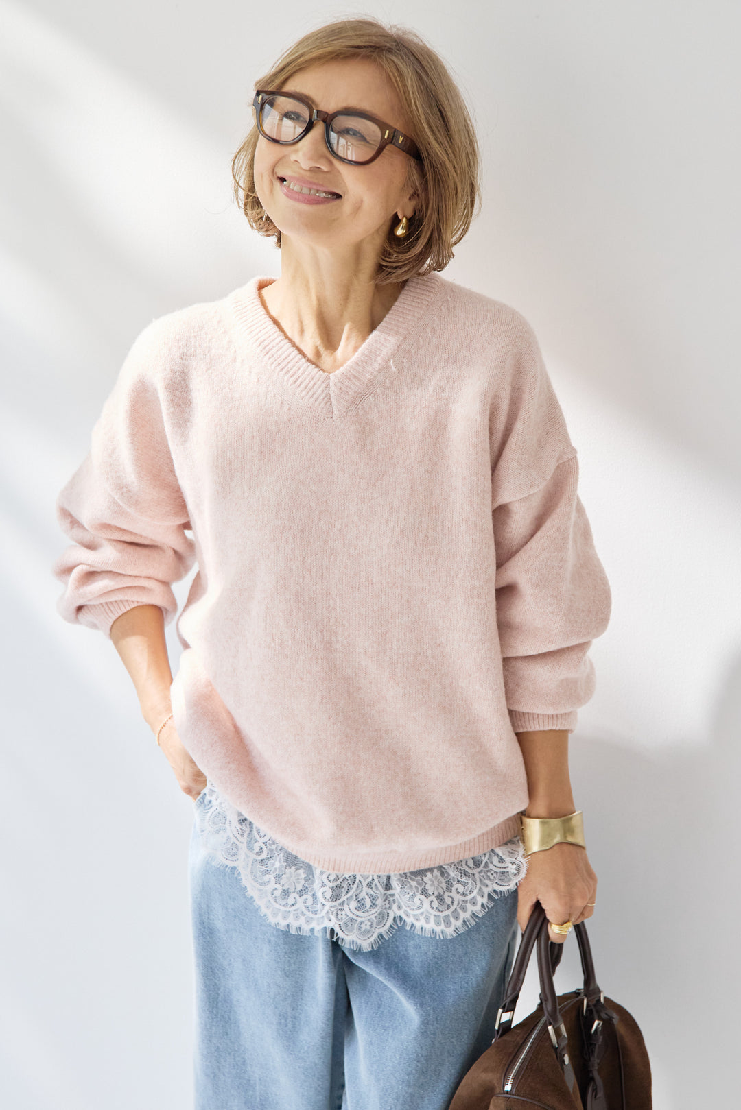 ソフトラムウール Vネックニット