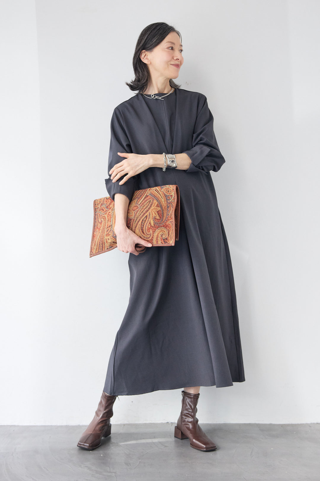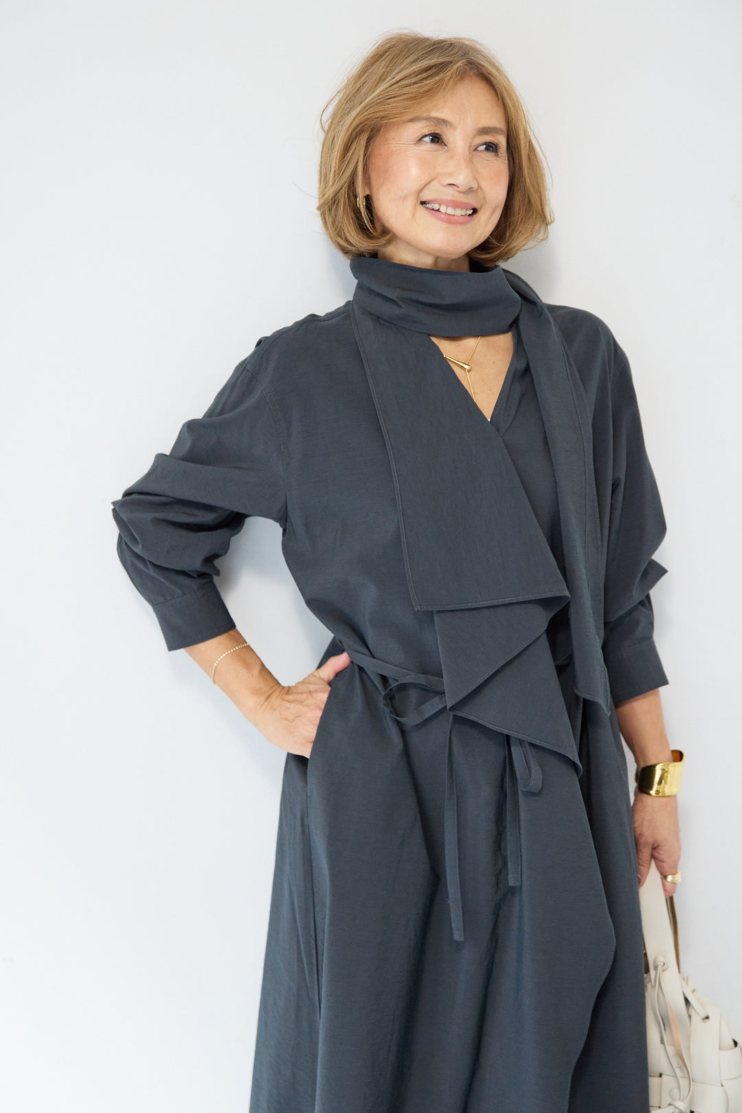 レイヤードフロント・ドレープワンピース