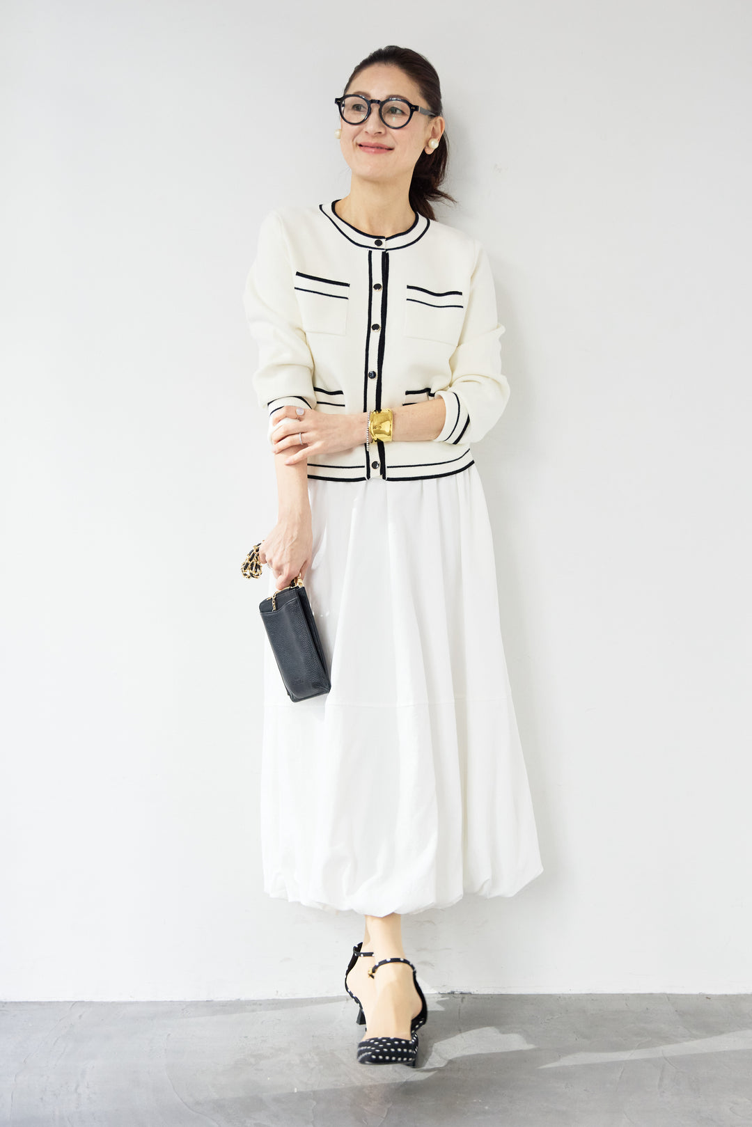 バイカラートリム ニットカーディガン