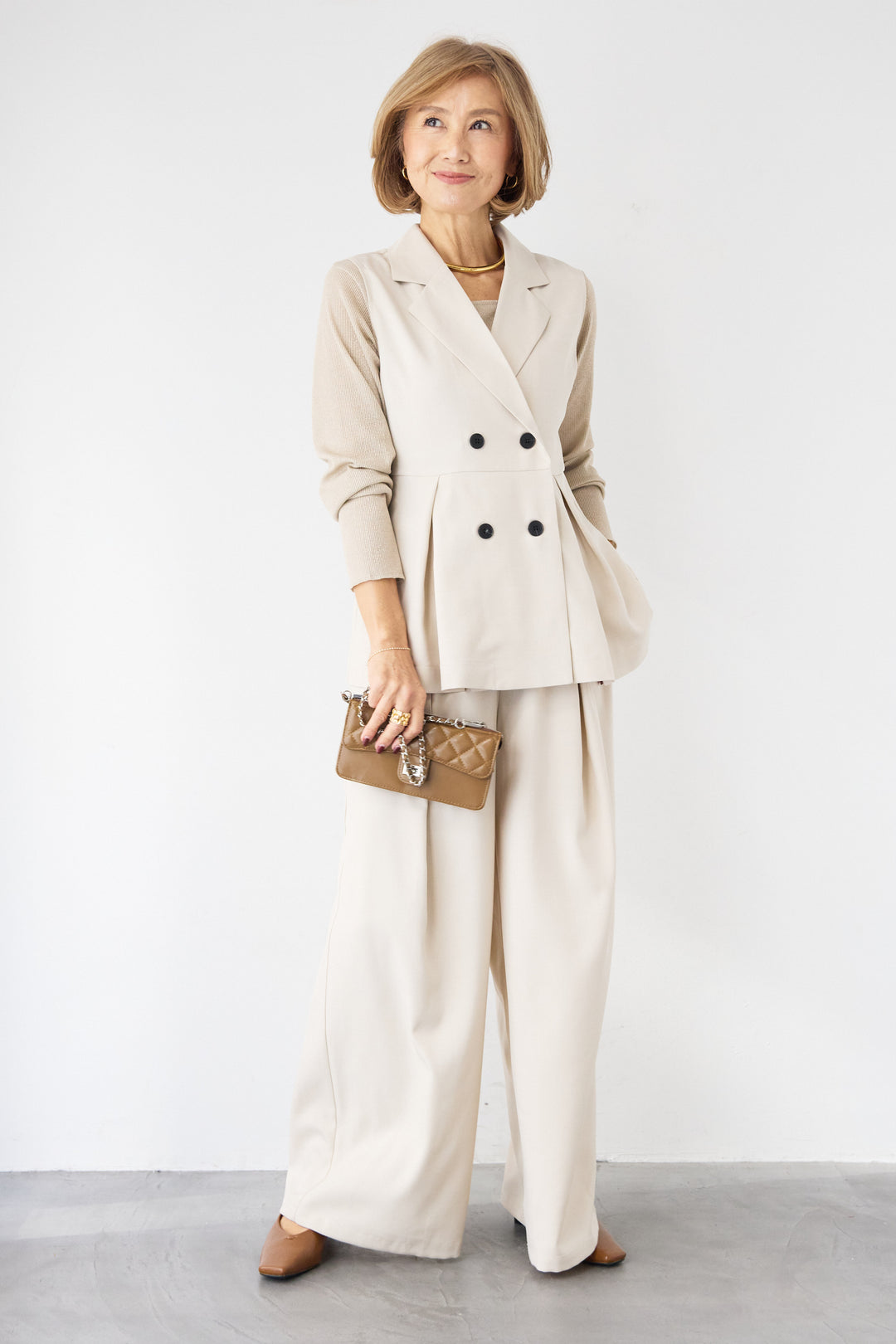 [SET]ツイルタック ペプラムベスト(セットアップ対応)+2タック ベルテッド・ワイドストレートパンツ(セットアップ対応)(2set)