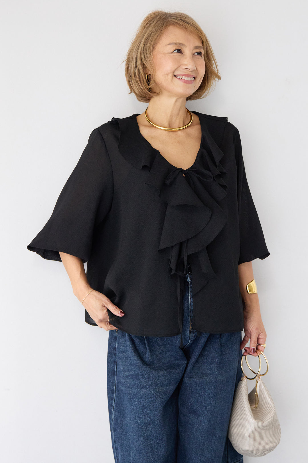 ソフトシフォン ボウタイトップス