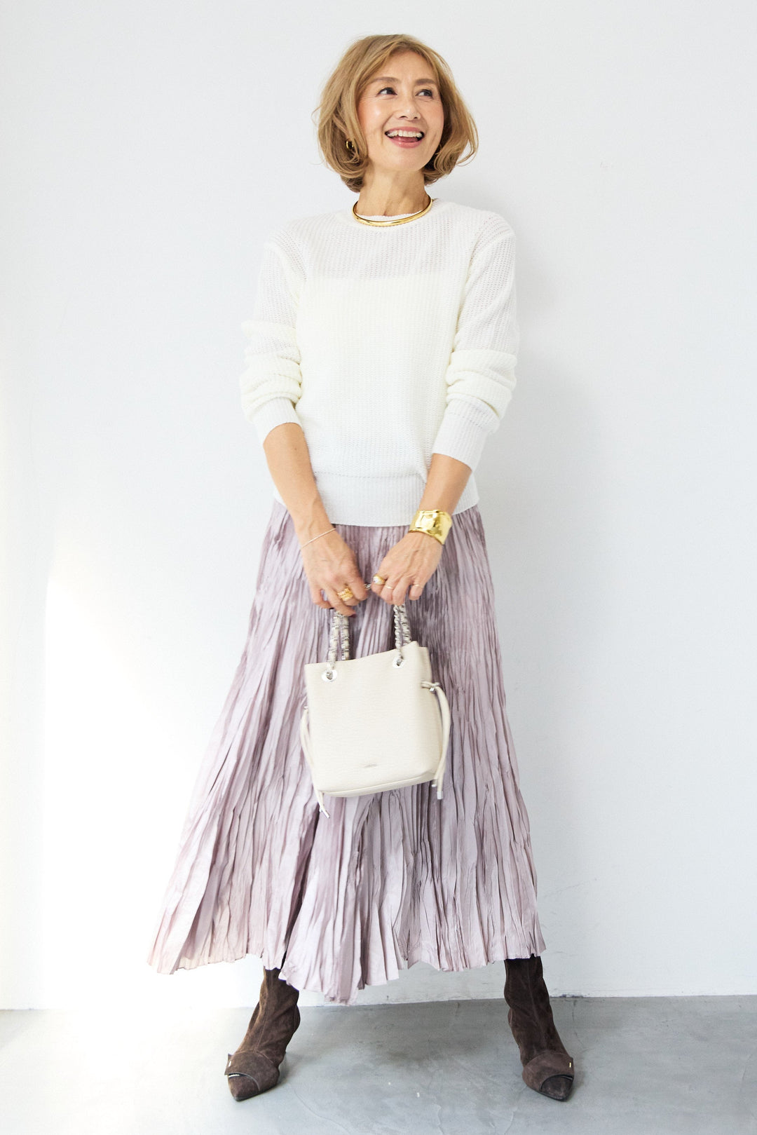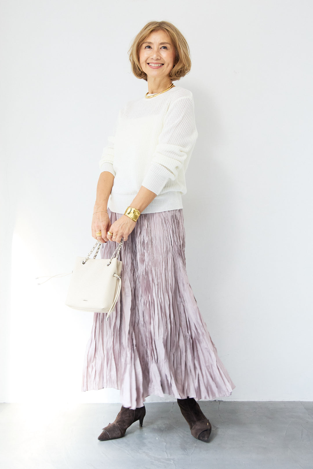 [SET]シアー メッシュ編み プルオーバー+シルキーワッシャー・エアリーマキシスカート(2set)