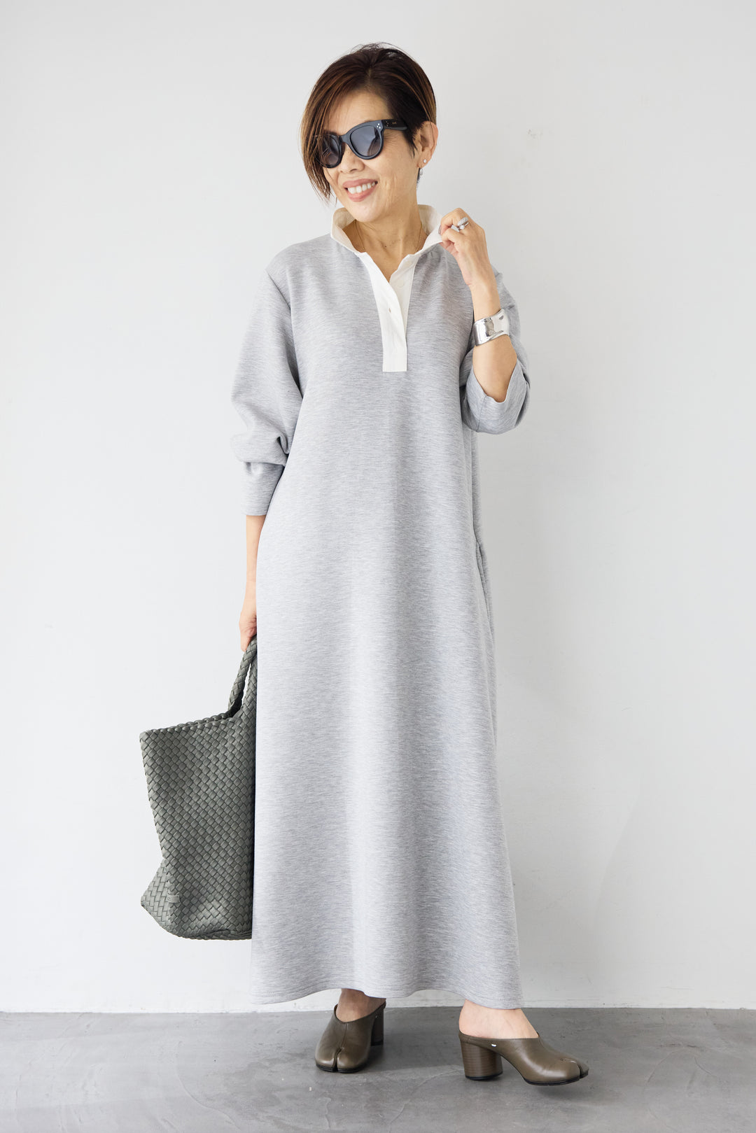 ハーフジップ・ルーズスウェットマキシワンピース
