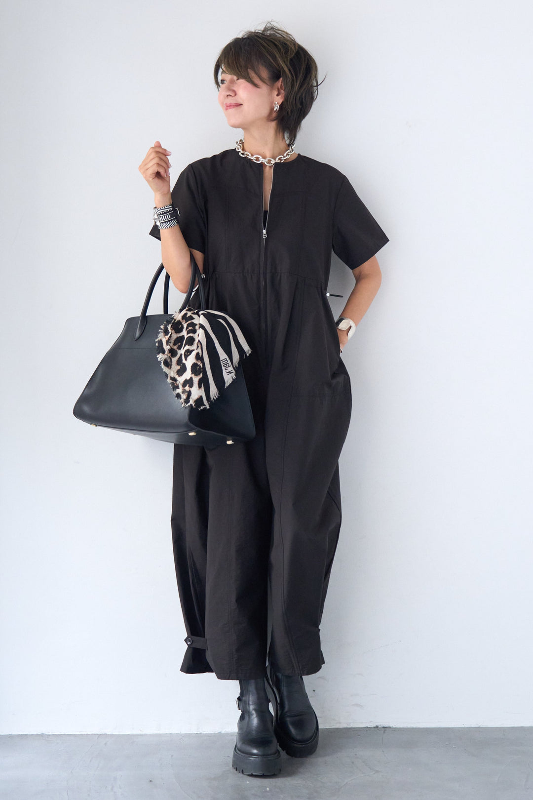 フロントジップコクーンシルエットオールインワン