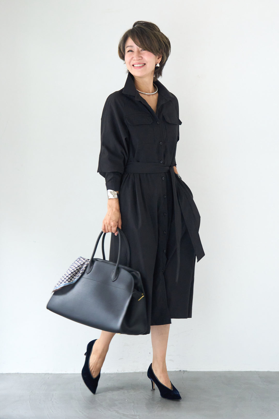 配色シャツカラー ダンボールワンピース