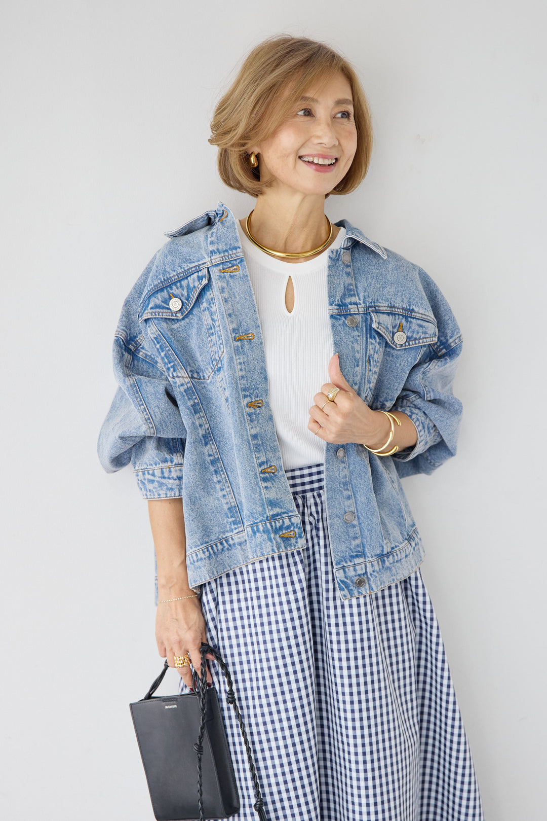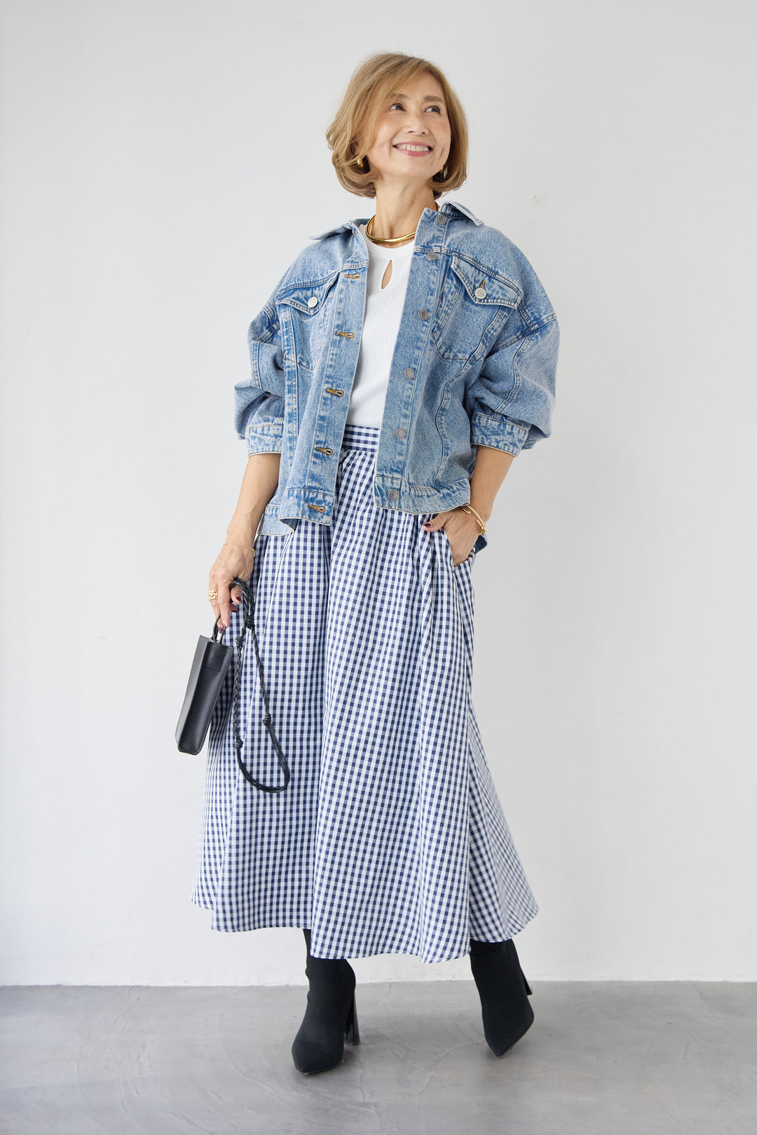 [SET]ビンテージライクGジャン+ギンガムチェックギャザースカート(2set)