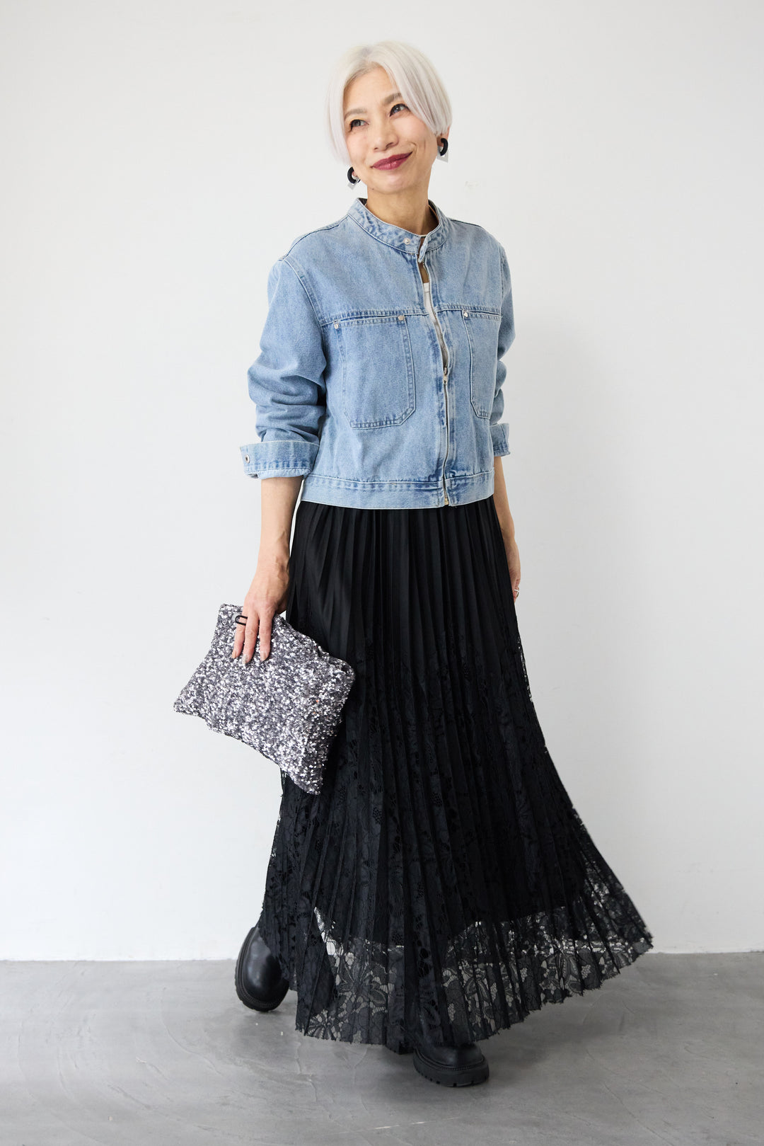 レース切替プリーツスカート