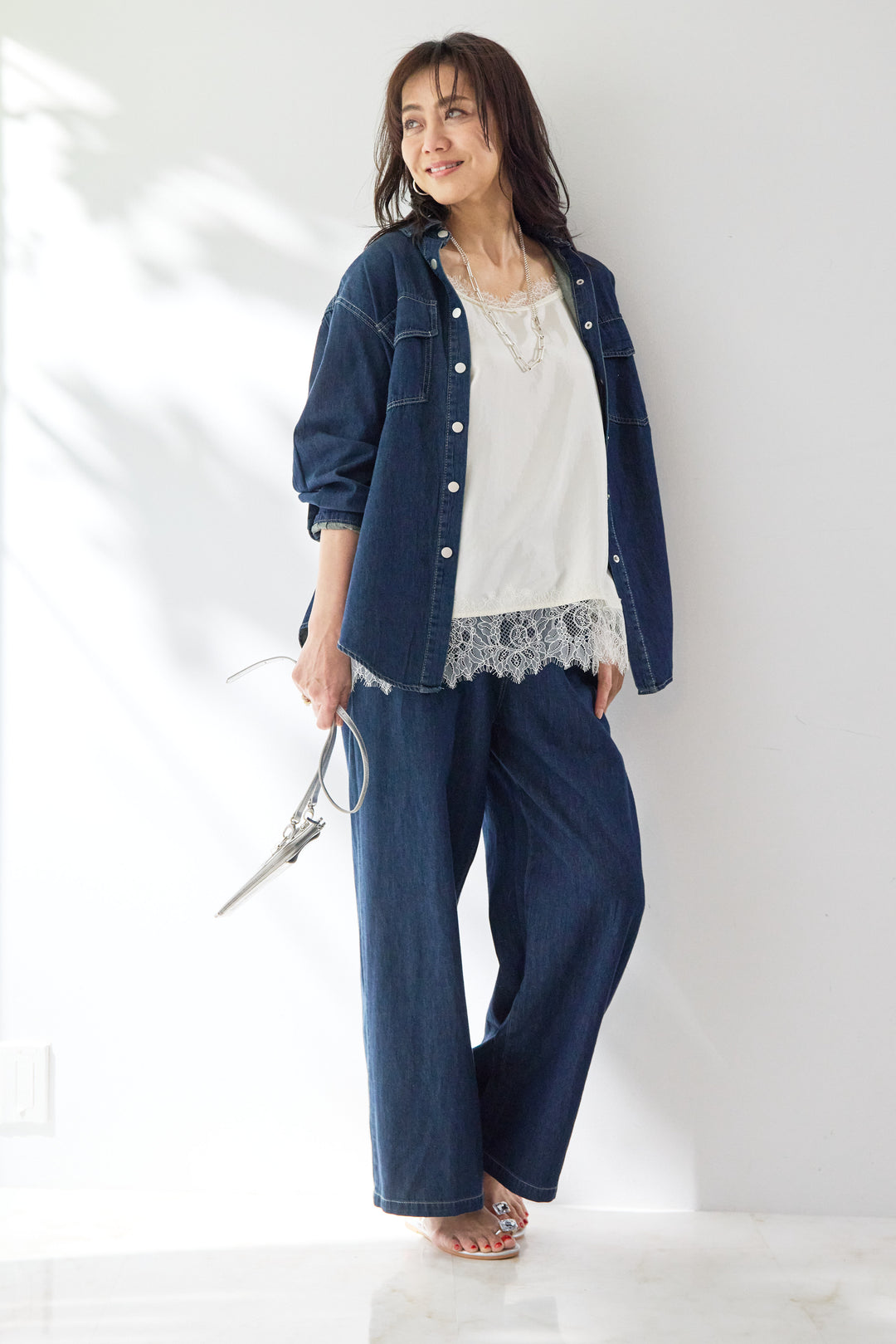 シルクライクデニムオーバーシャツ