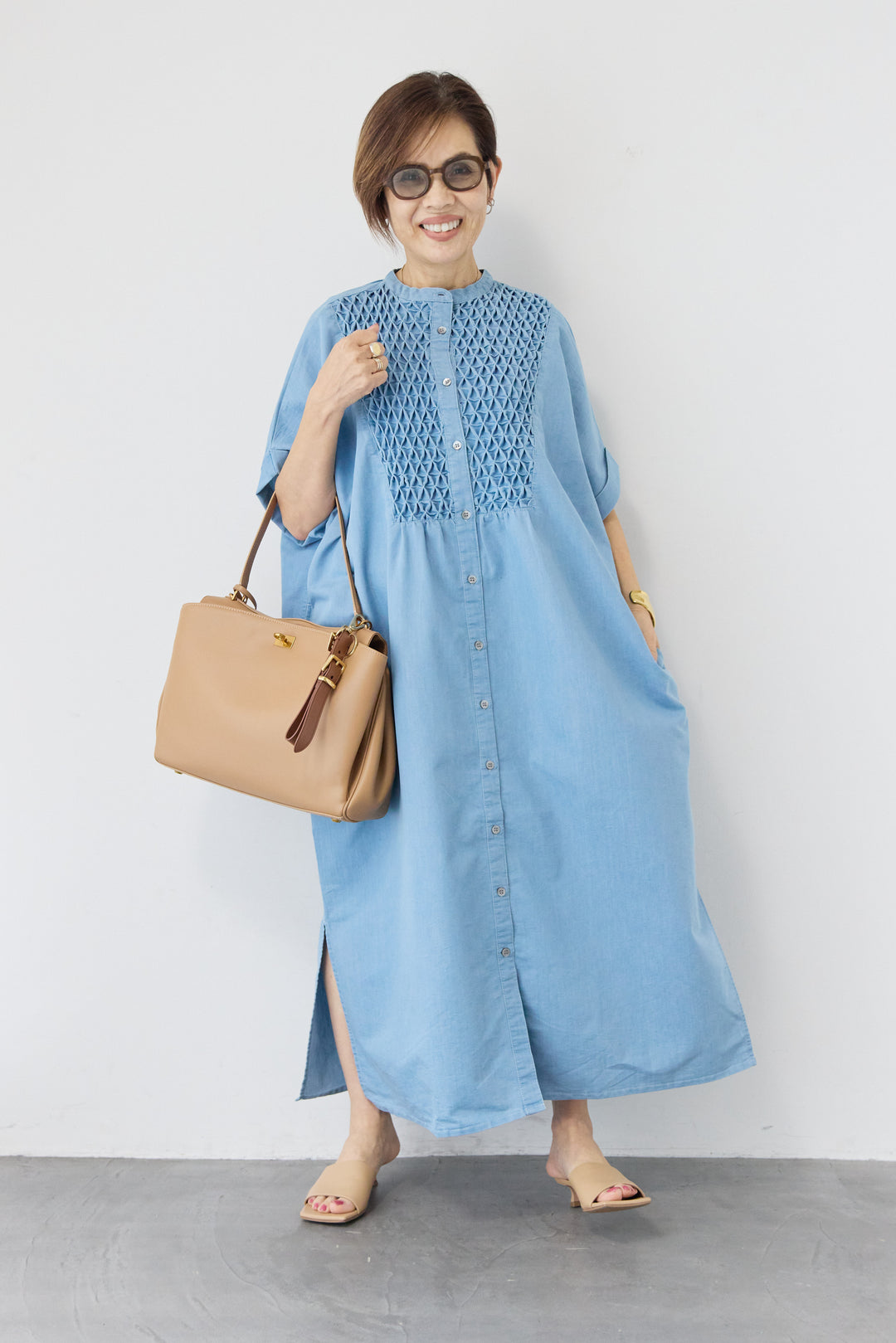 バンドカラーデニムシャツワンピース