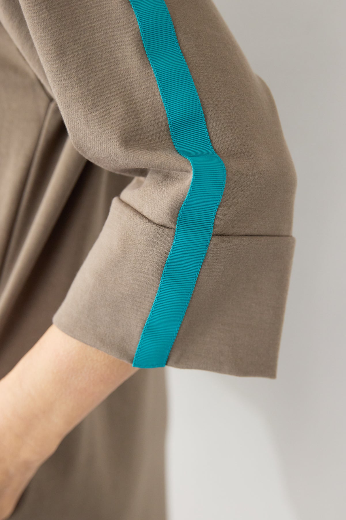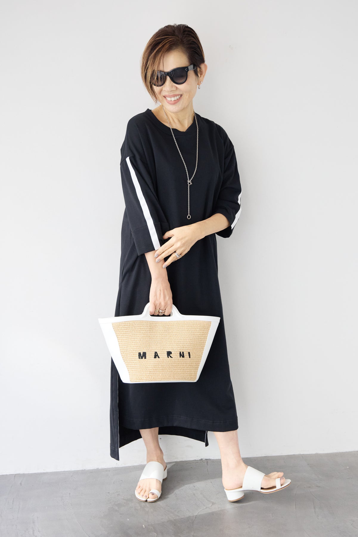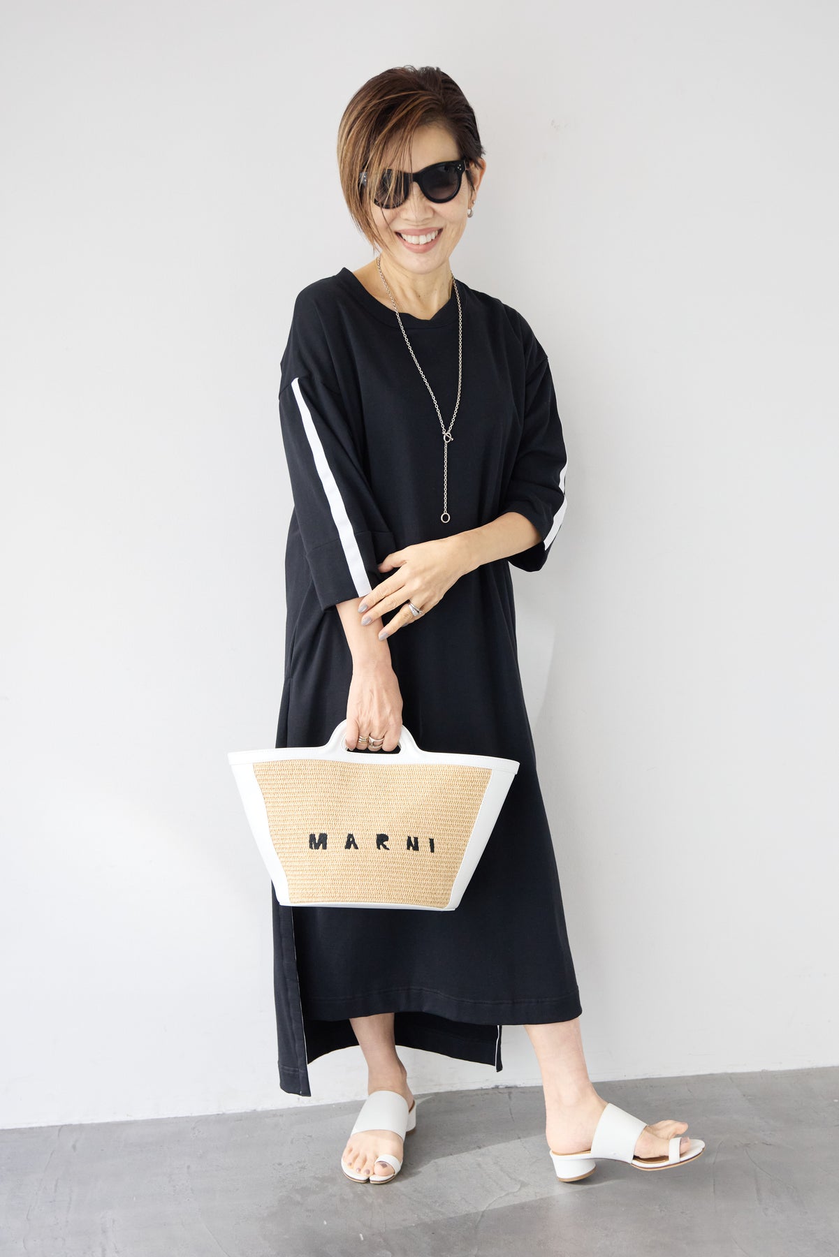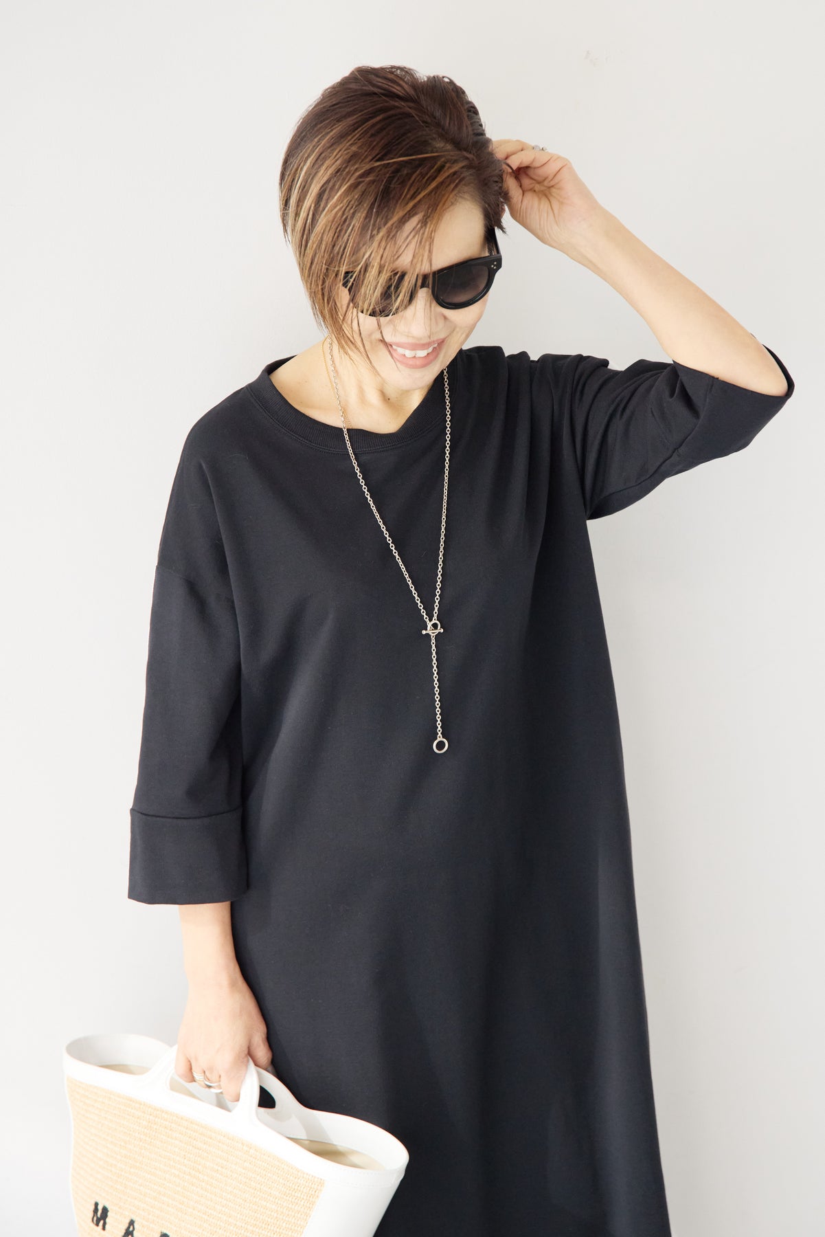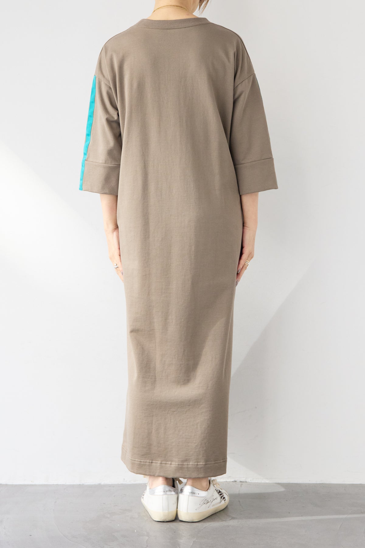 シンプルな中にアクセントを効かせた、大人のカジュアルワンピース。程よいハリと柔らかさを兼ね備えたカットソー素材で、ストレスフリーな着心地を実現しました。袖から裾スリットへと続く配色テープラインが縦のラインを強調し、すっきりとした印象に。ゆとりのあるシルエットながら、Iラインでスタイルアップ効果も期待できます。両サイドには実用的なポケット付き。深めのスリットが足さばきを良くし、パンツやレギンスとのレイヤードも楽しめます。1枚でさらっと着るだけでコーデが完成する、デイリーに活躍するアイテムです。