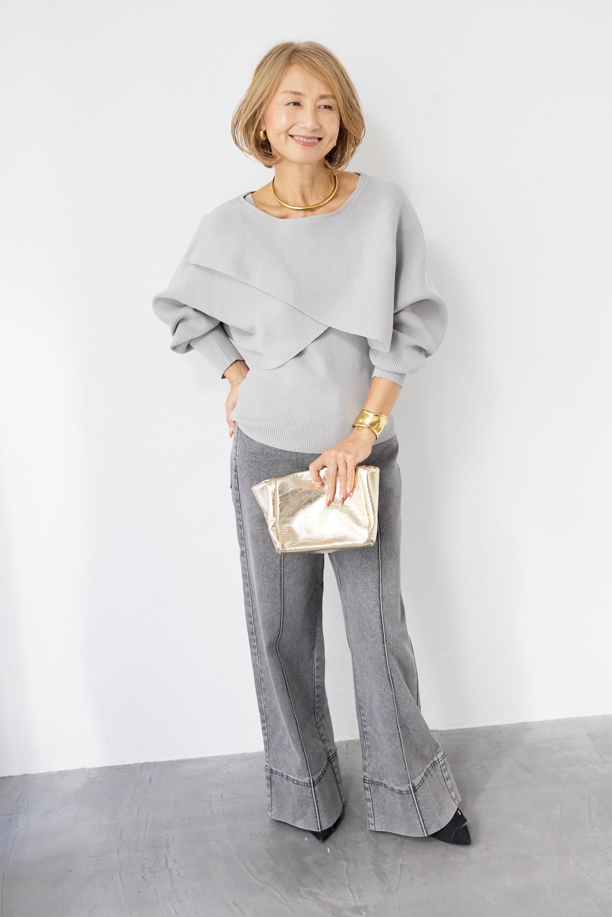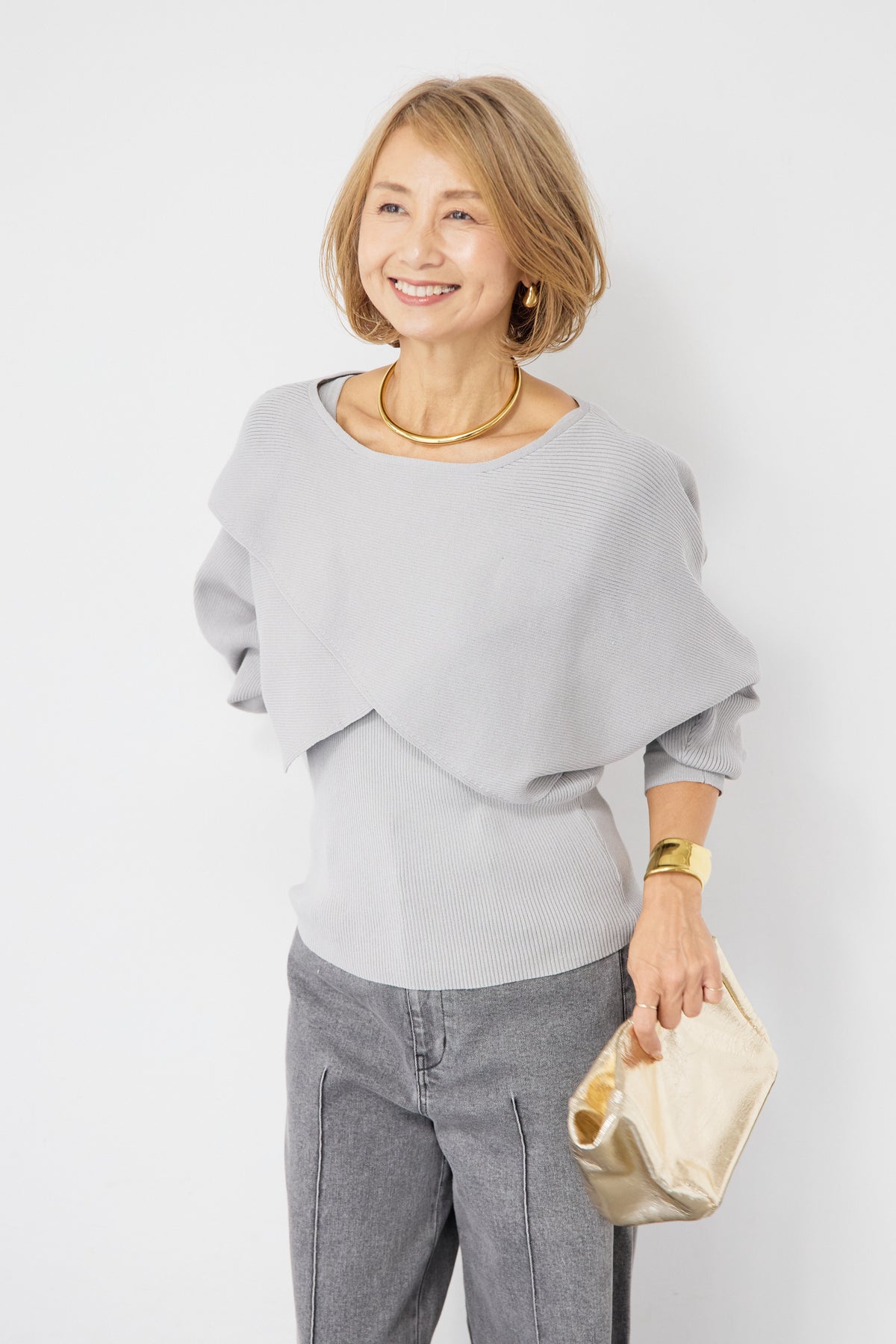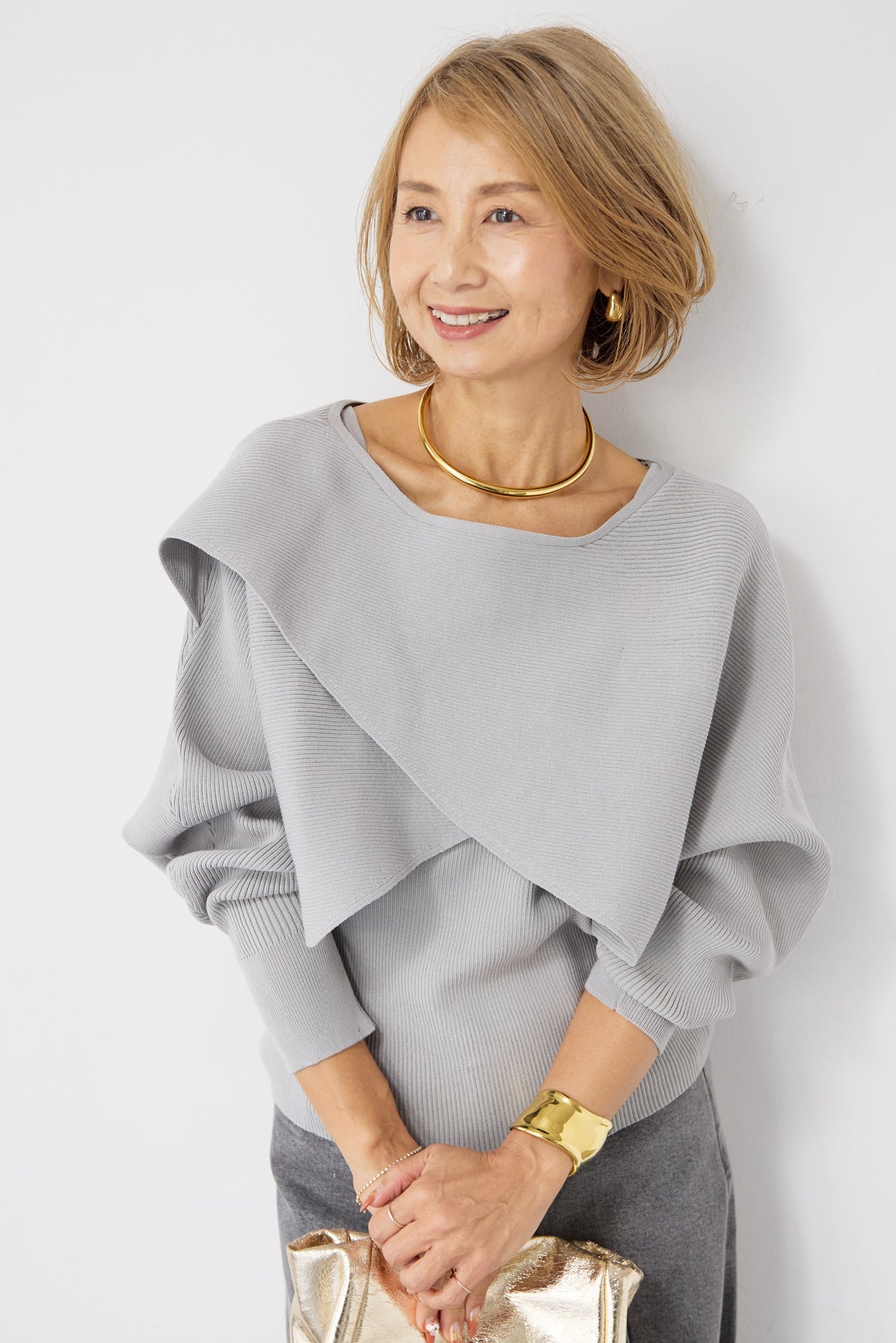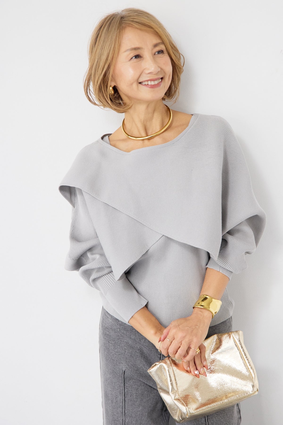 レイヤードで魅せる、大人のための上品ニットアンサンブル。ケープトップスとリブタンクトップを組み合わせた、着こなしの幅が広がるセットアイテムです。柔らかく肌なじみの良いコットン素材を使用し、ロングシーズン快適な着心地を実現。ケープ部分は斜めに重なるアシンメトリーデザインで、気になる肩や二の腕を自然にカバーしながら、顔まわりをすっきりと見せてくれます。インナーのリブタンクは程よくフィットし、単品でも活躍する万能アイテム。セットで着れば洗練されたレイヤードスタイルに、それぞれ単品使いでカジュアルにもきれいめにも着回し可能。 デニムやワイドパンツ、スカートとも好相性で、日常からお出かけまで幅広いシーンに対応します。