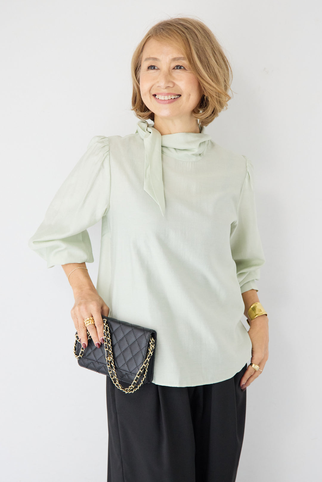 ボウタイ風ハイネック ボリュームスリーブブラウス