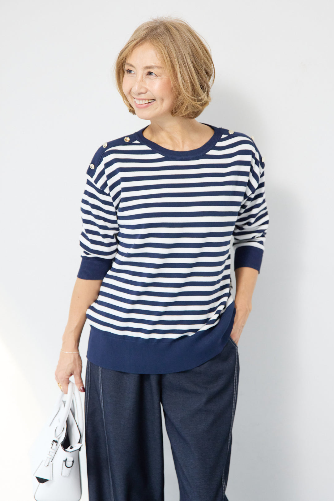 ゴールドボタン・ミラノリブ ボーダーニットプルオーバー