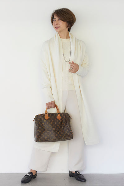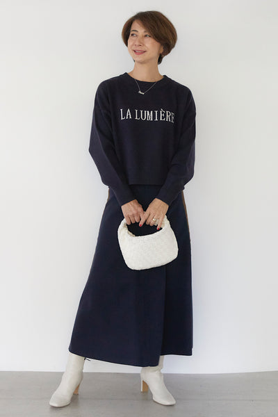 【ウール・ラクーン混】スカーフカラーミドルゲージニット