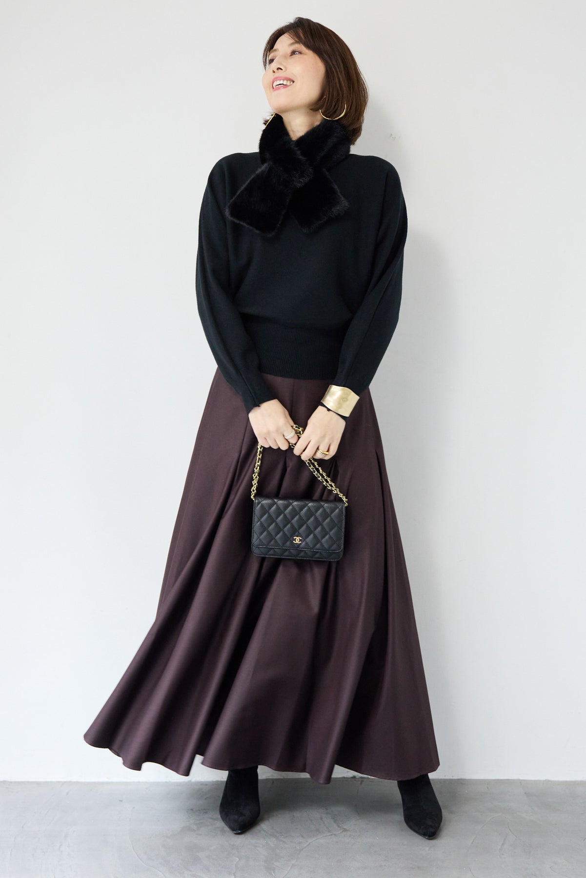 ボートネックニットプルオーバー/タックボリュームスカート