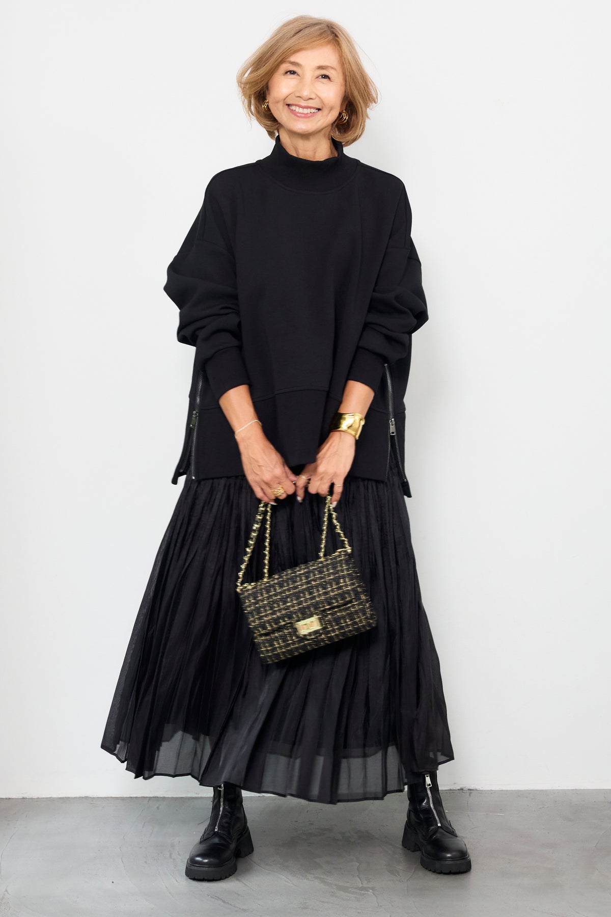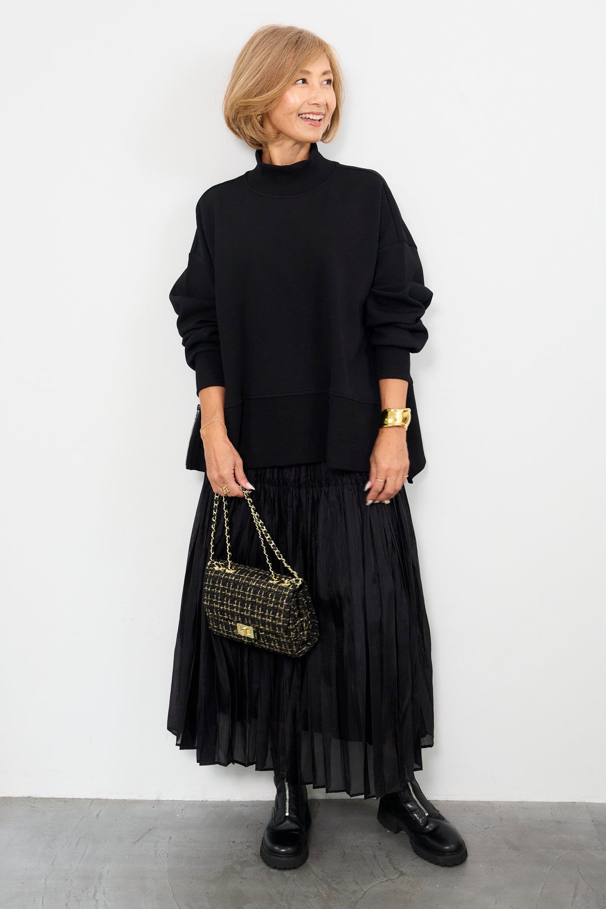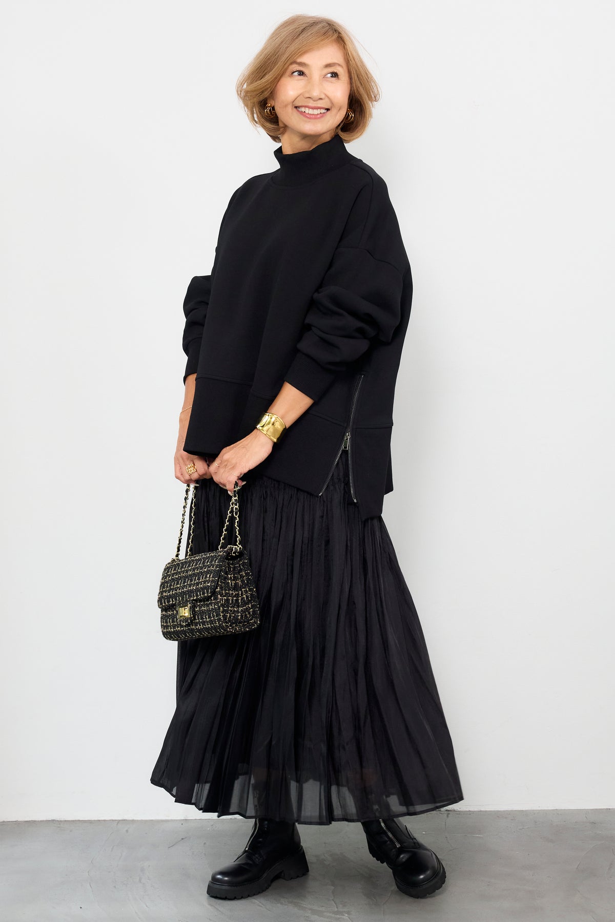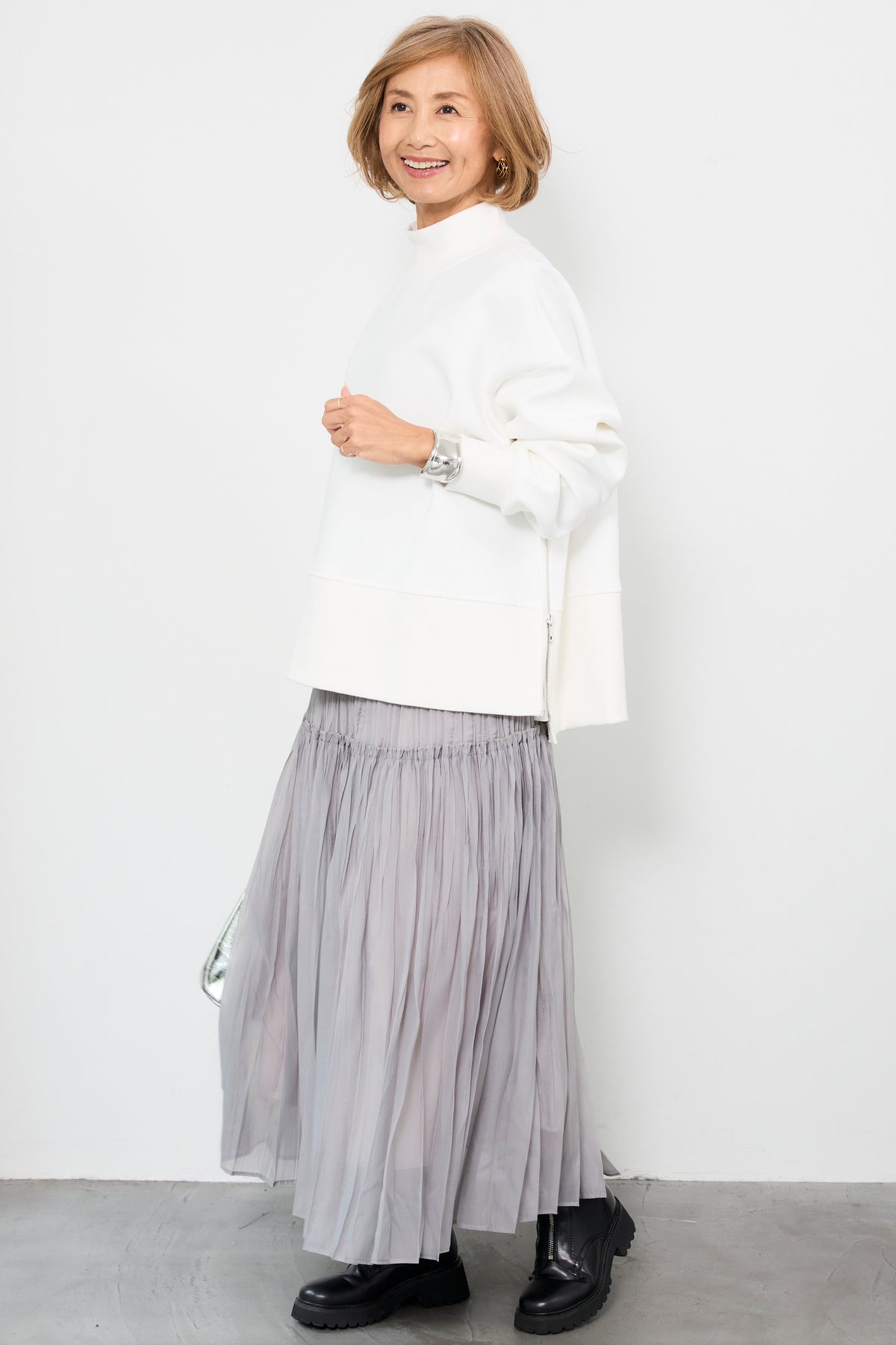 軽やかな揺れ感が魅力のティアードプリーツスカート。繊細に施された細プリーツが縦ラインを強調し、すっきりとした印象を演出します。