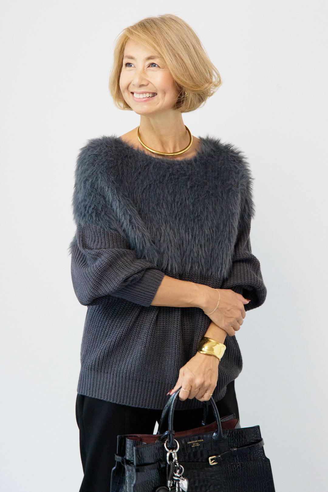 シャギー切替デザインニット