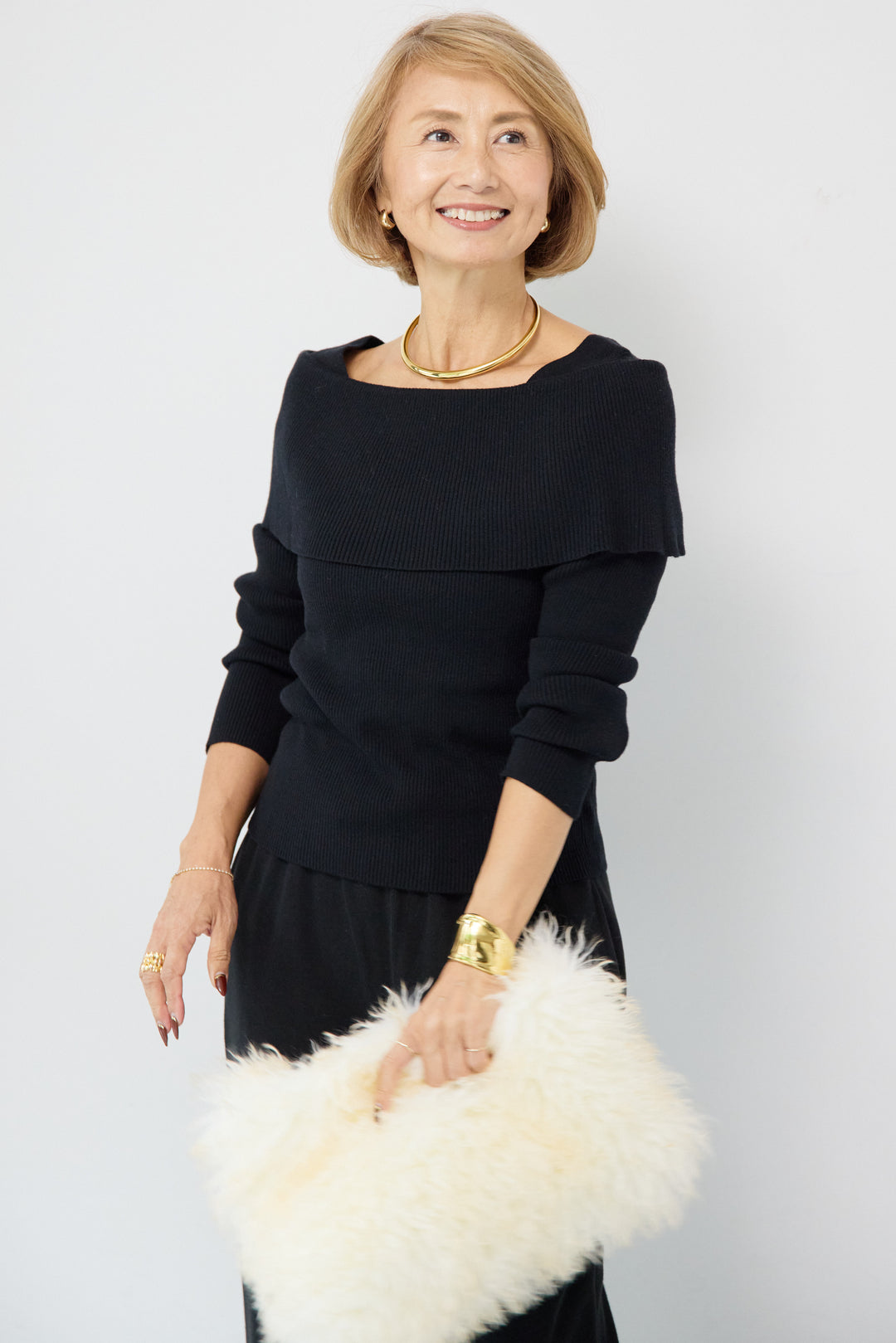 ふんわりシャギー ボートネックニットプルオーバー