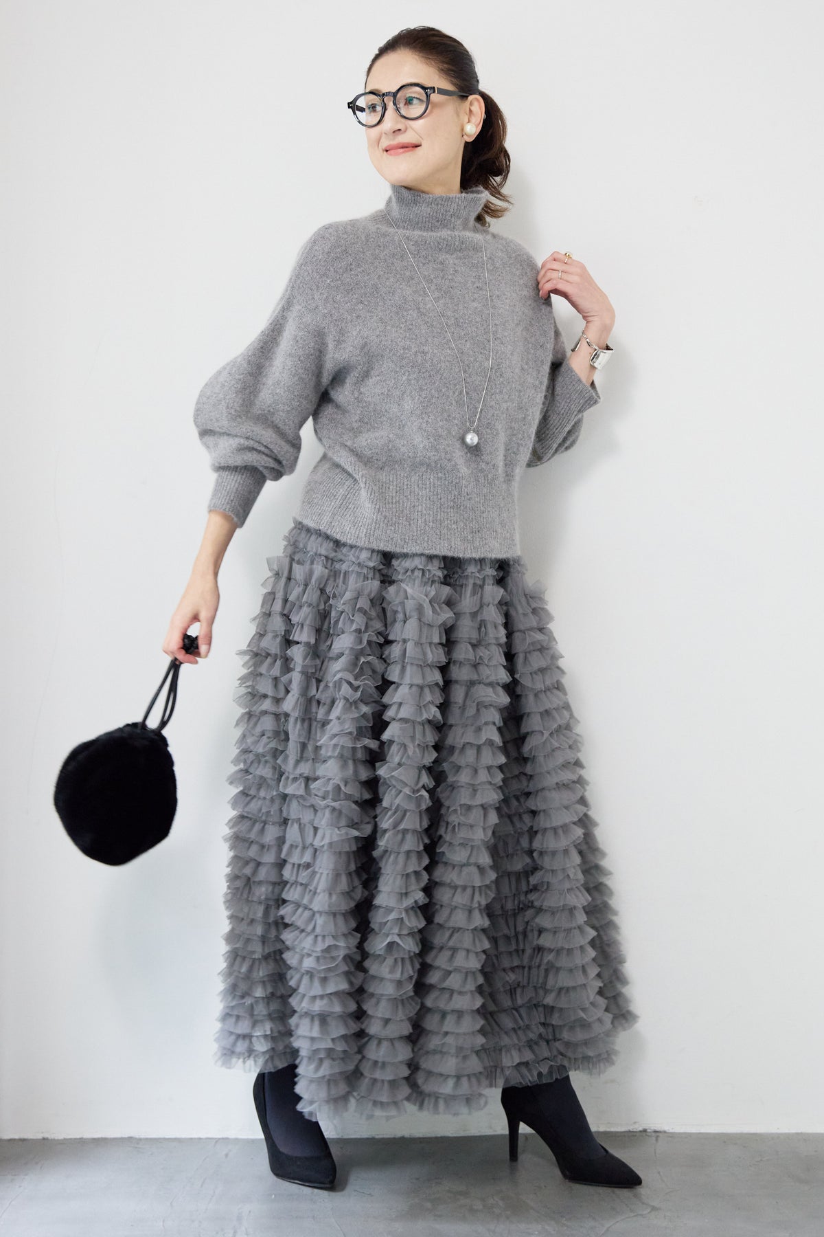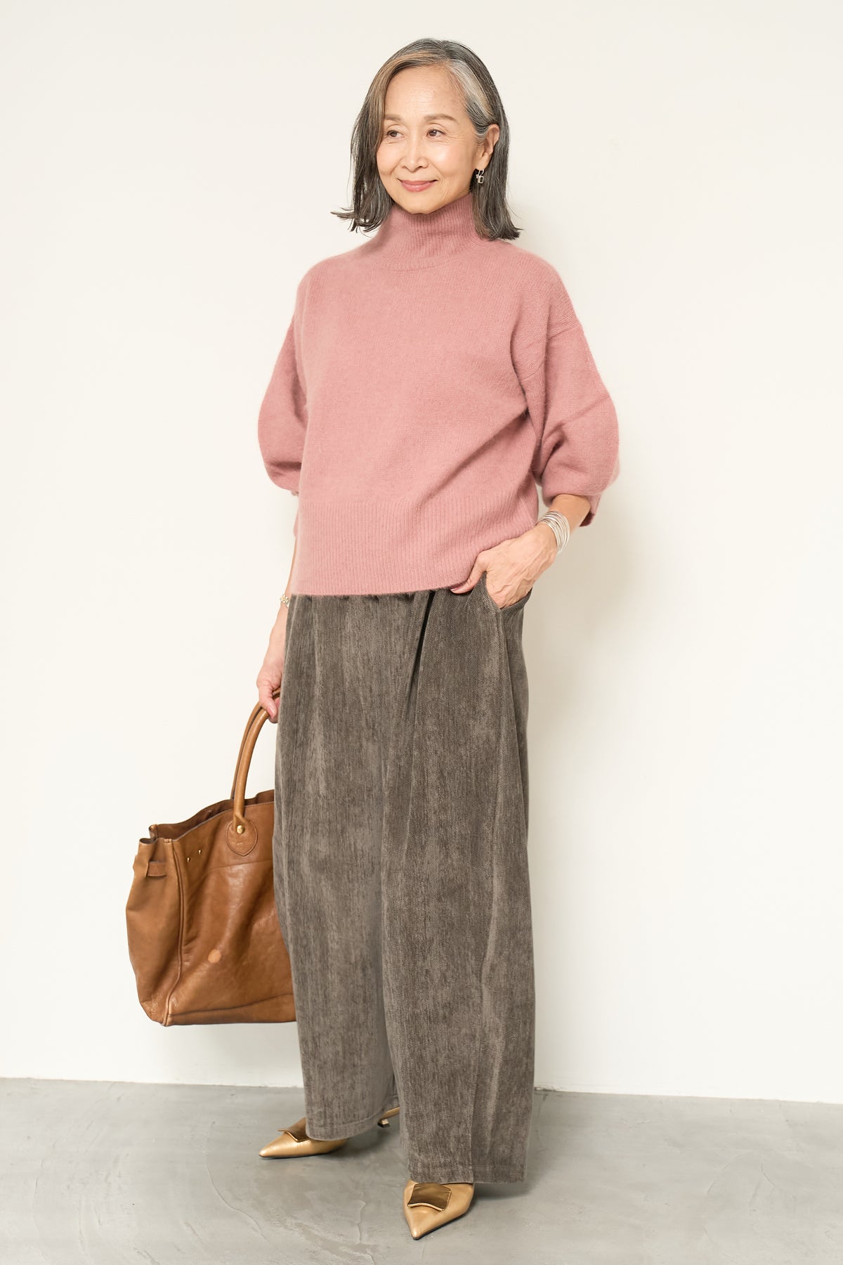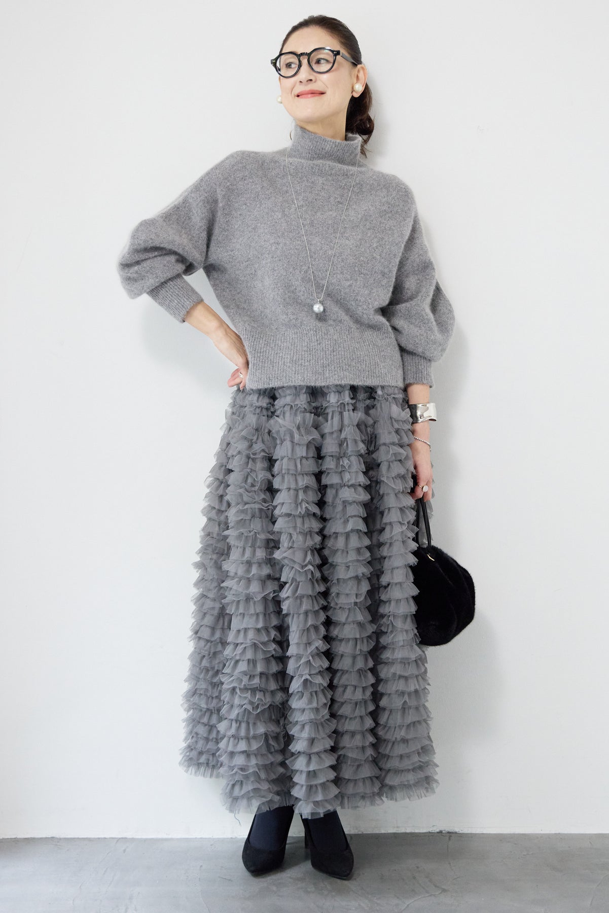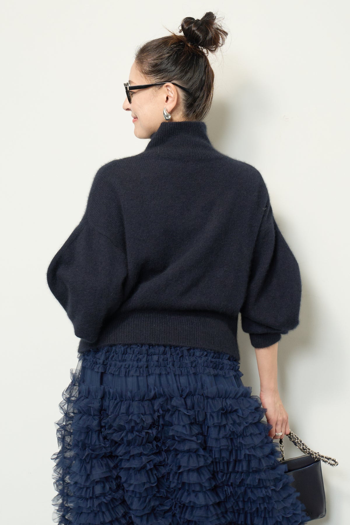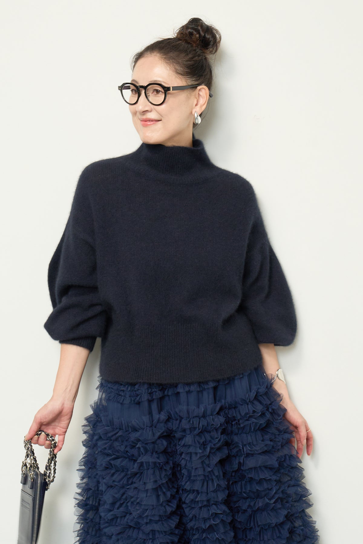 上質なFOX混素材で仕立てたボリュームスリーブニットは、柔らかな肌触りと軽やかな着心地が魅力です。立体感のある袖がシルエットに奥行きを与え、さりげない存在感をプラス。シンプルなデザインでありながら、モダンなディテールが光る一着です。 スタイルに合わせてカジュアルにもフェミニンにも着回しが可能な、トレンド感溢れるニット。季節の変わり目に最適で、どんなシーンでも活躍してくれます。