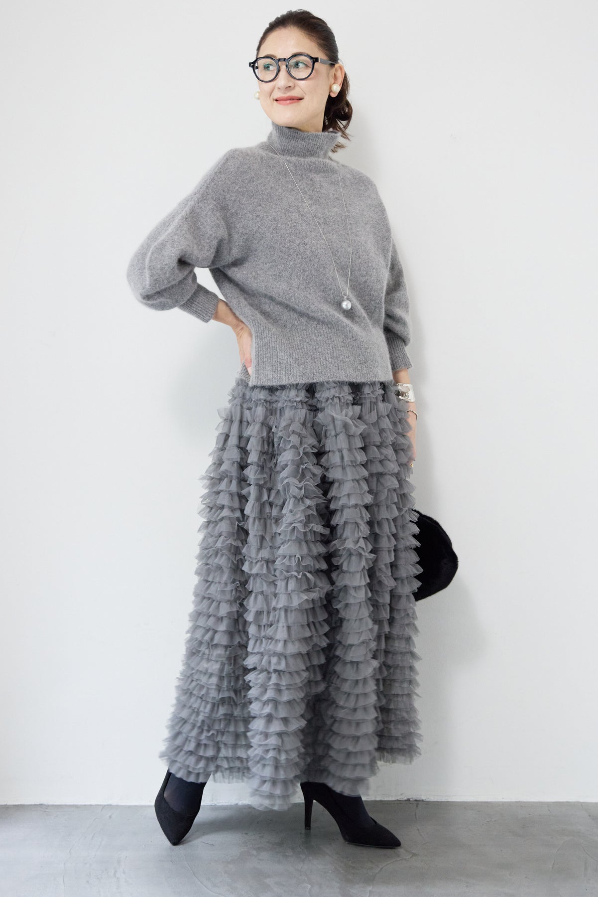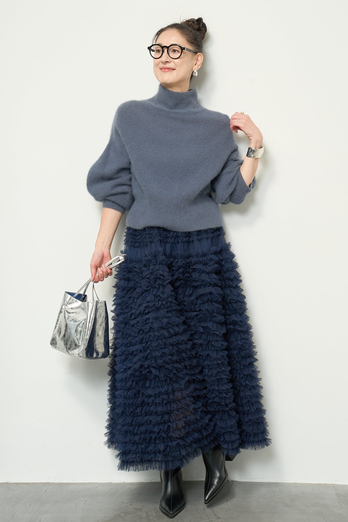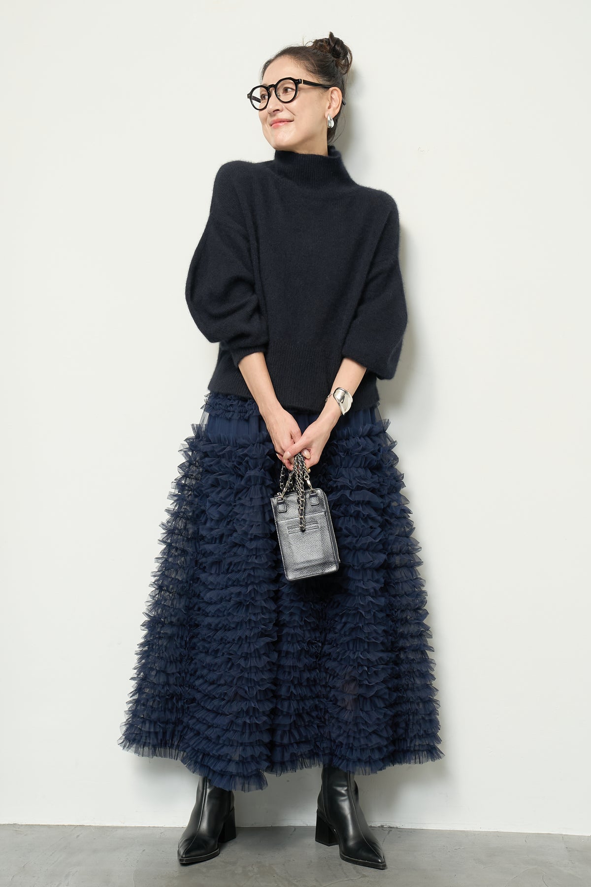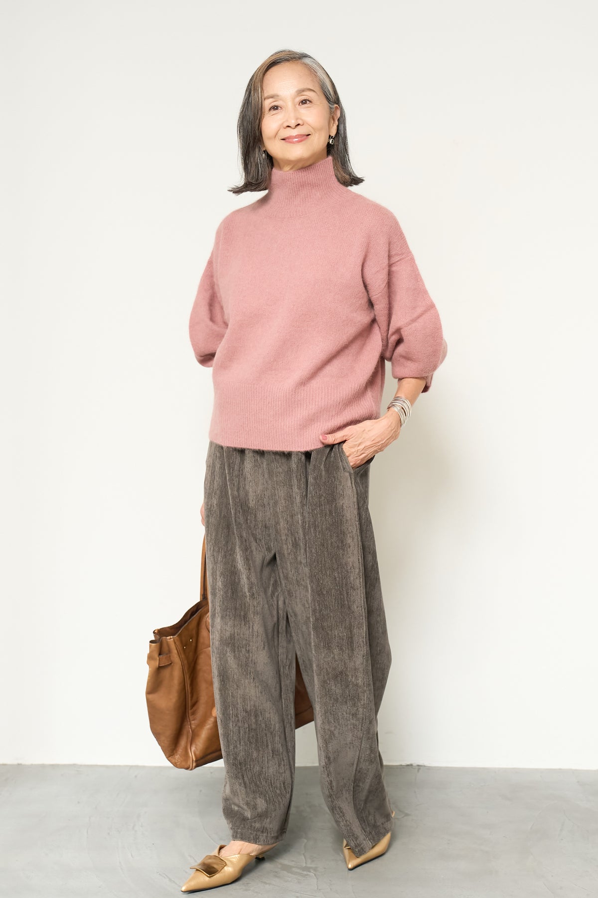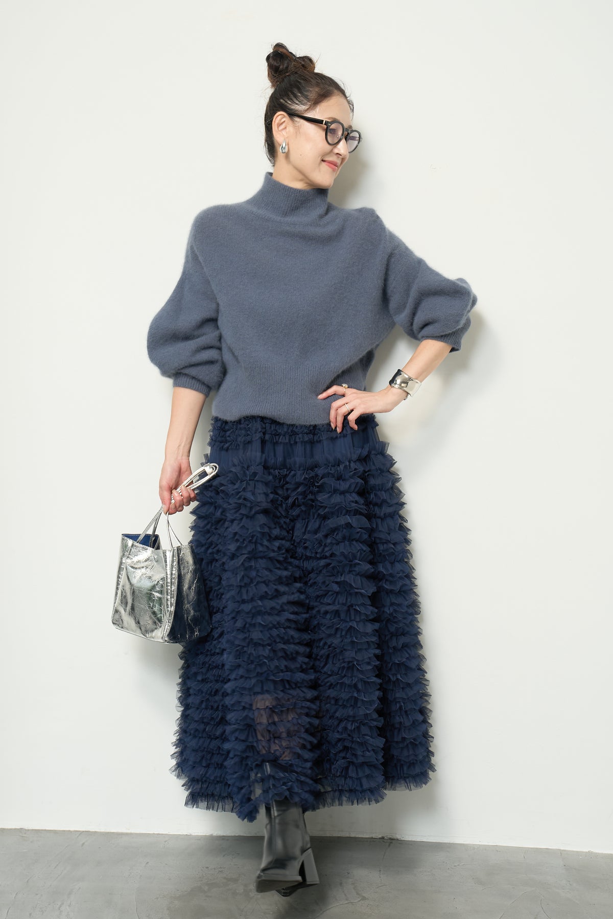 上質なFOX混素材で仕立てたボリュームスリーブニットは、柔らかな肌触りと軽やかな着心地が魅力です。立体感のある袖がシルエットに奥行きを与え、さりげない存在感をプラス。シンプルなデザインでありながら、モダンなディテールが光る一着です。 スタイルに合わせてカジュアルにもフェミニンにも着回しが可能な、トレンド感溢れるニット。季節の変わり目に最適で、どんなシーンでも活躍してくれます。