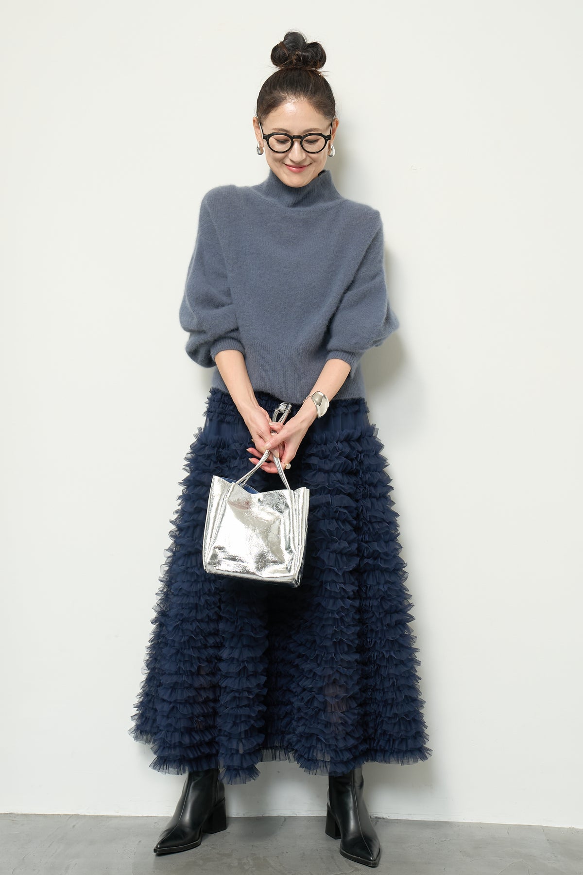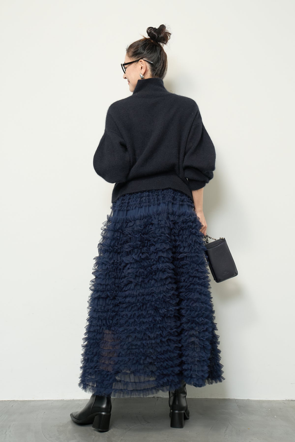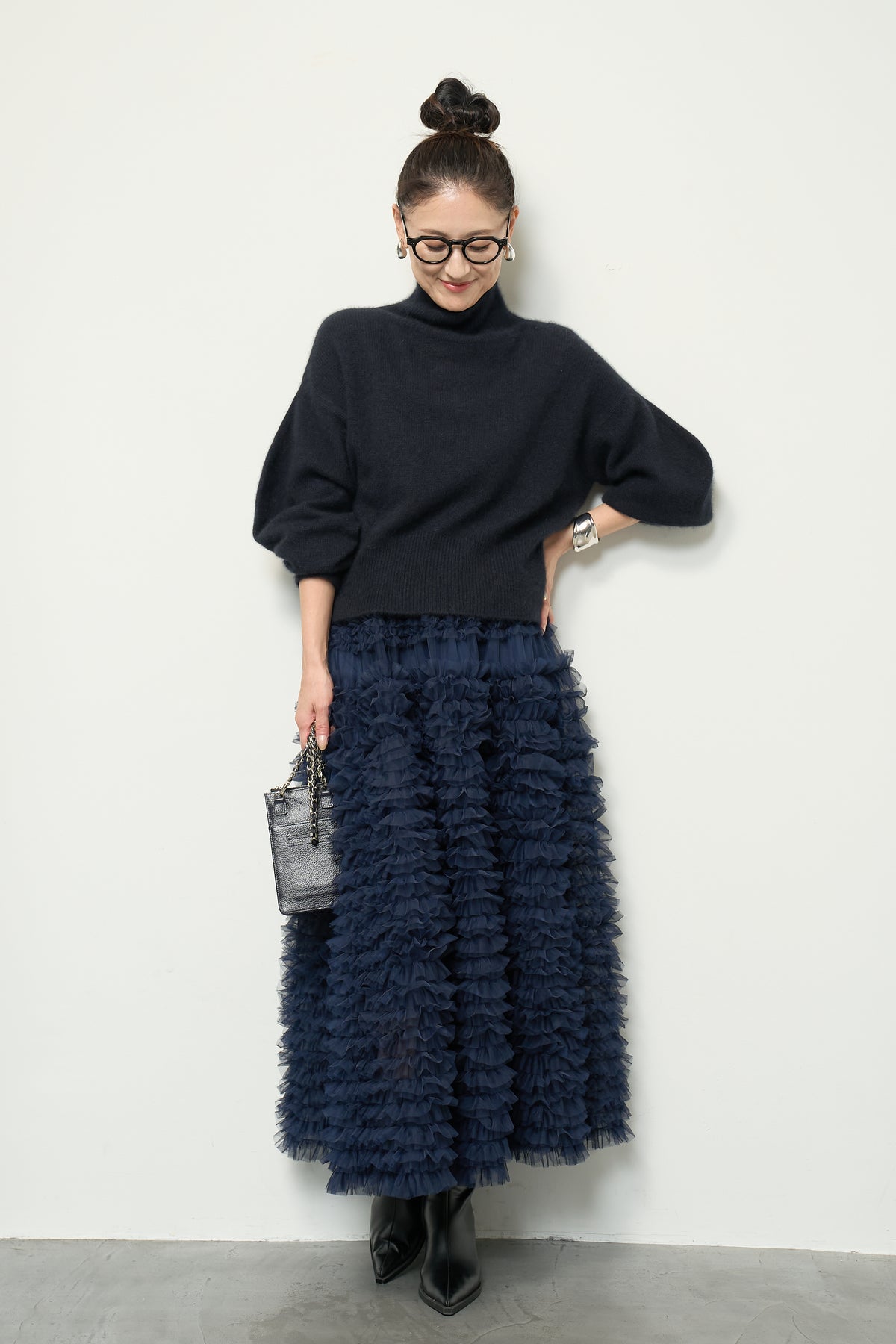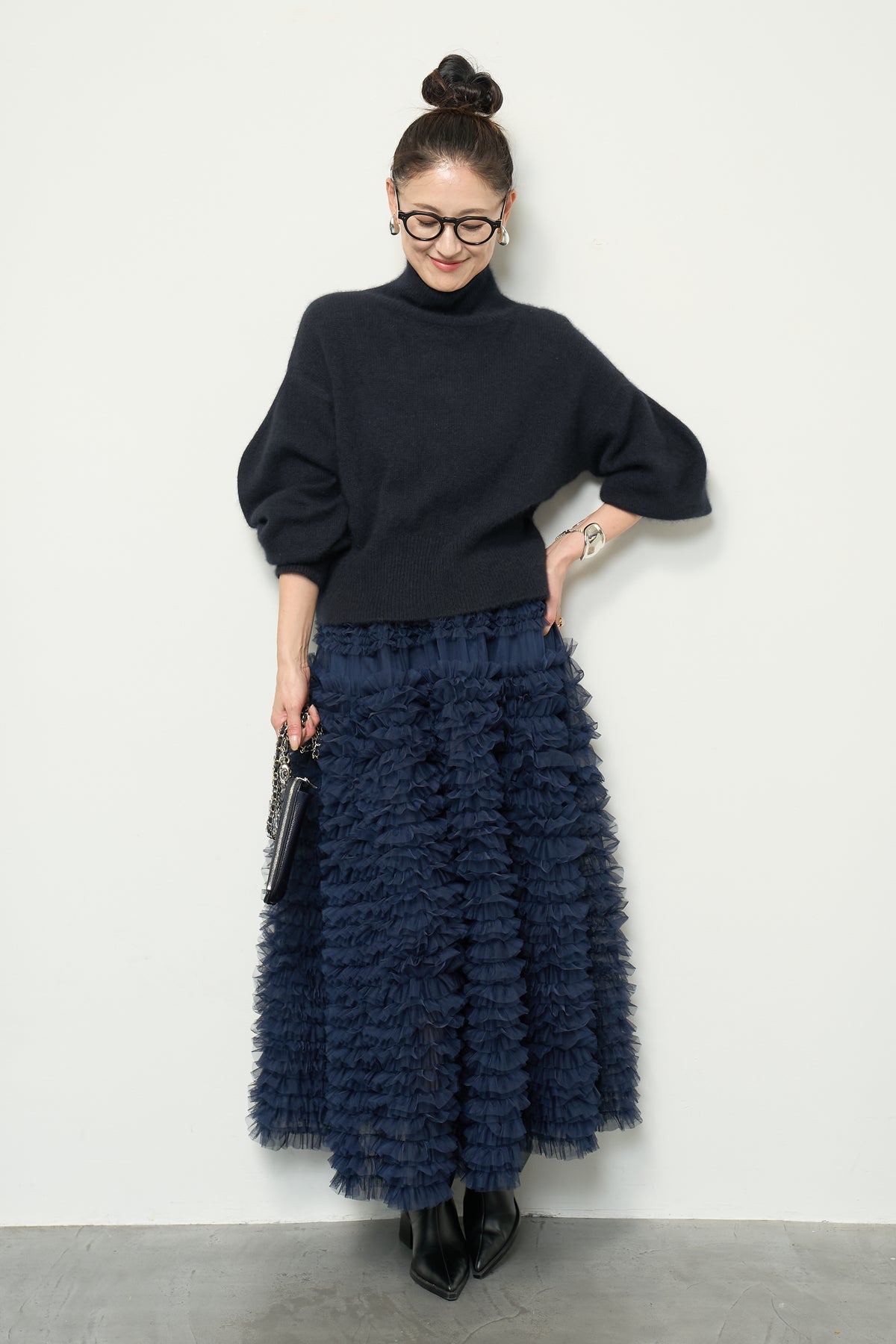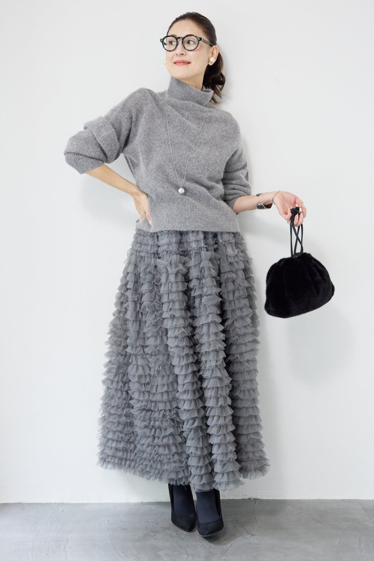 上質なFOX混素材で仕立てたボリュームスリーブニットは、柔らかな肌触りと軽やかな着心地が魅力です。立体感のある袖がシルエットに奥行きを与え、さりげない存在感をプラス。シンプルなデザインでありながら、モダンなディテールが光る一着です。 スタイルに合わせてカジュアルにもフェミニンにも着回しが可能な、トレンド感溢れるニット。季節の変わり目に最適で、どんなシーンでも活躍してくれます。