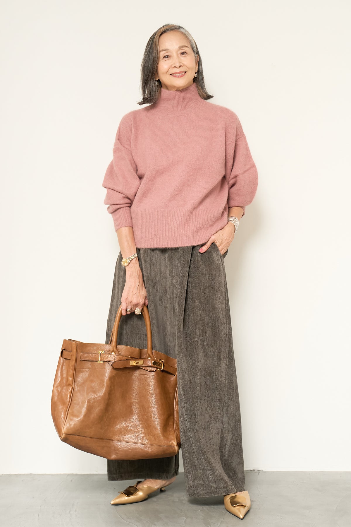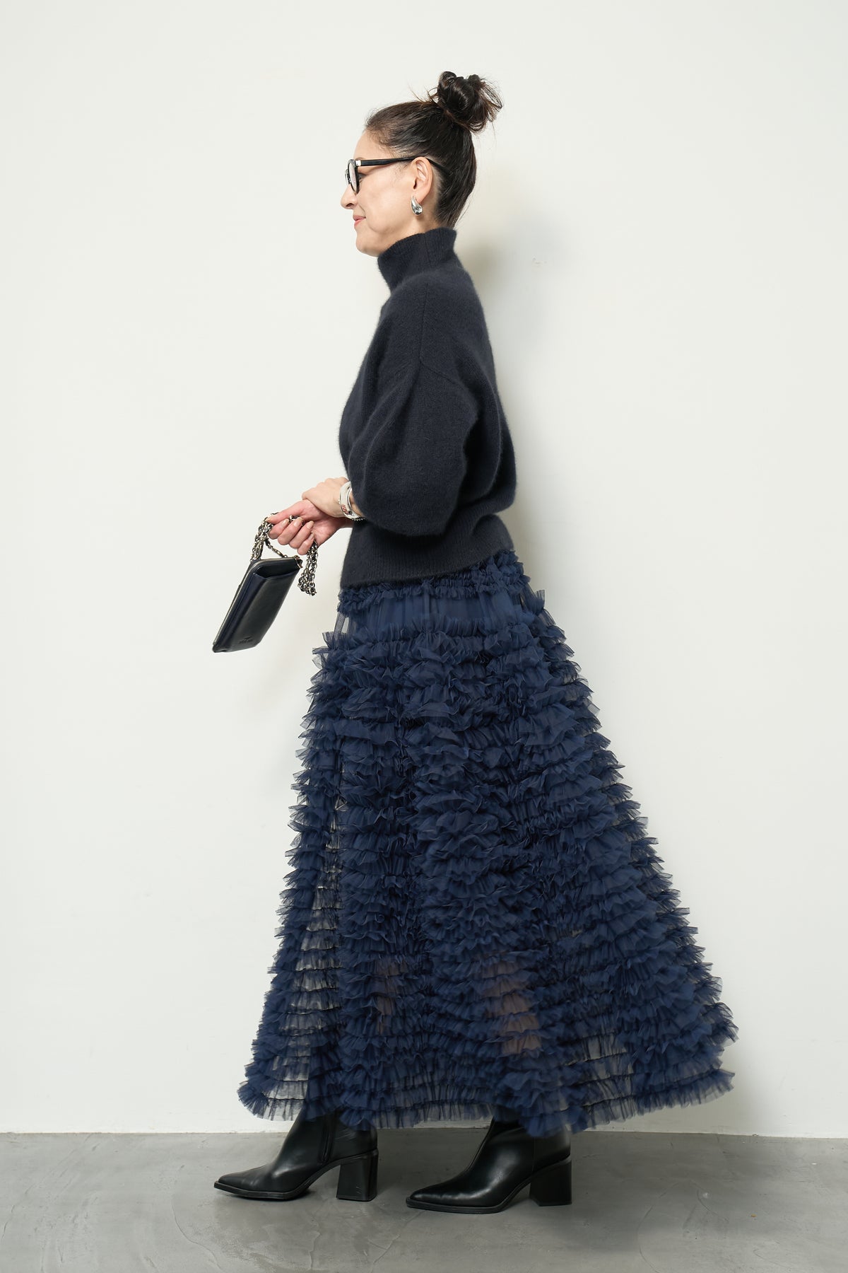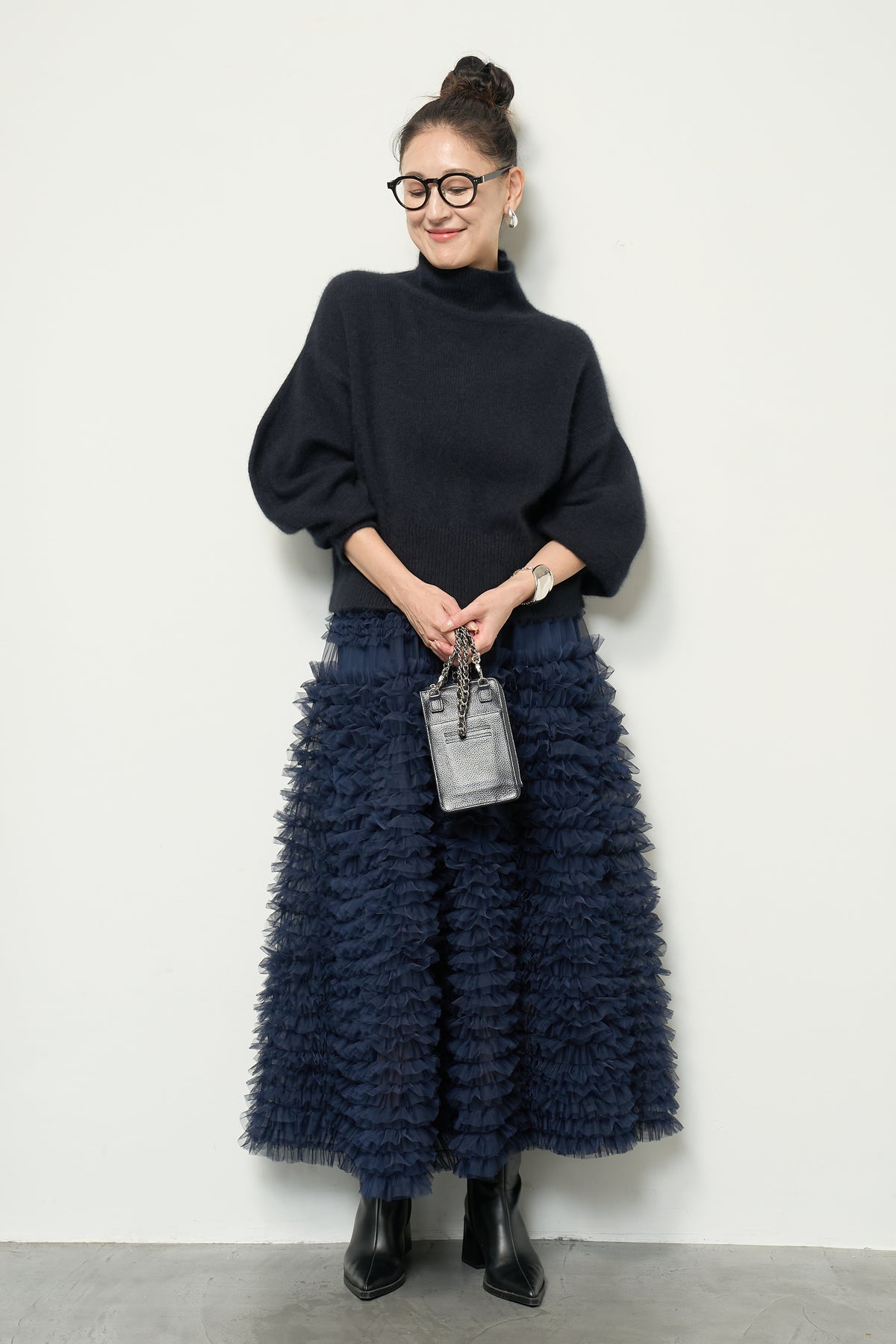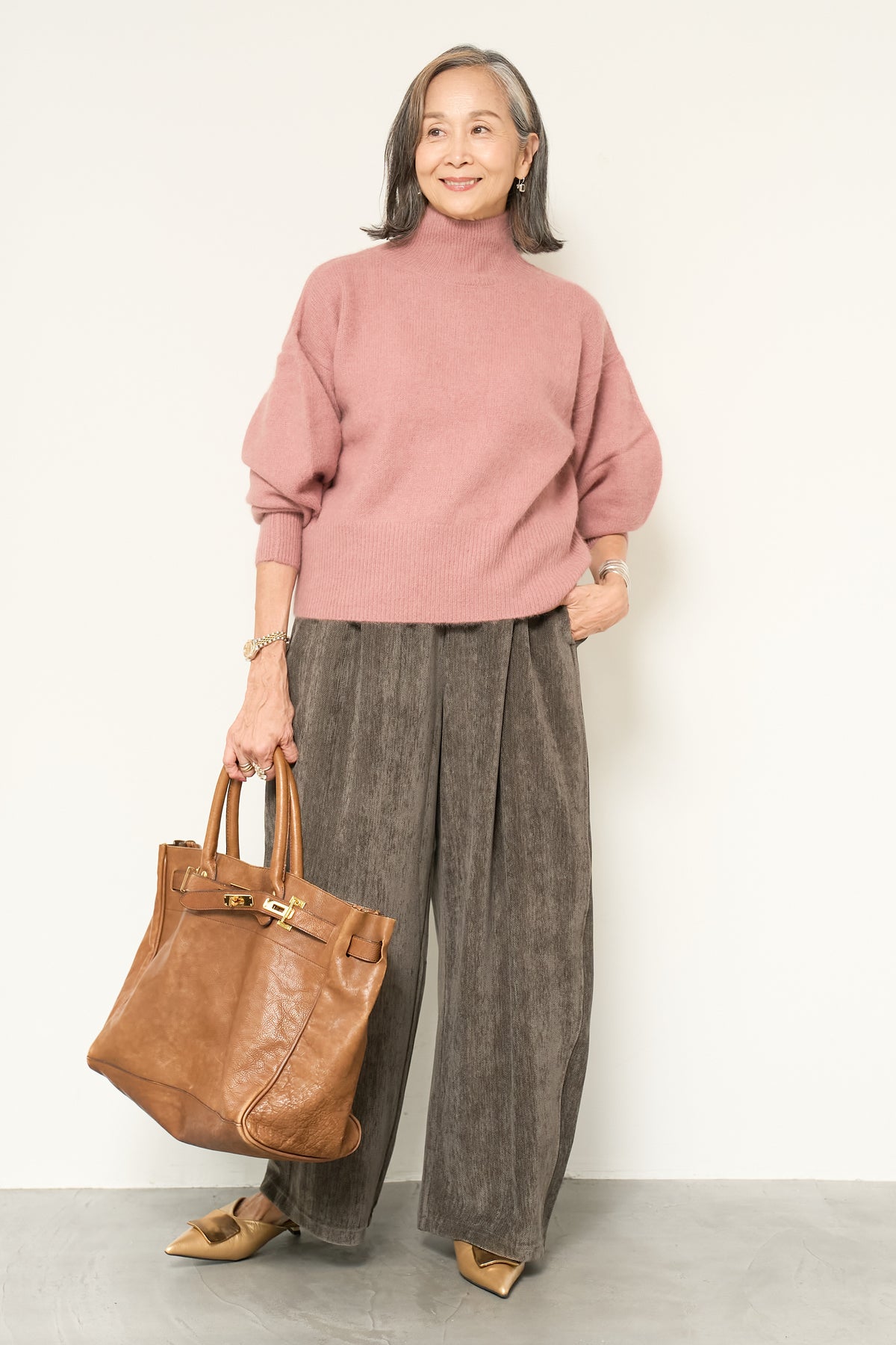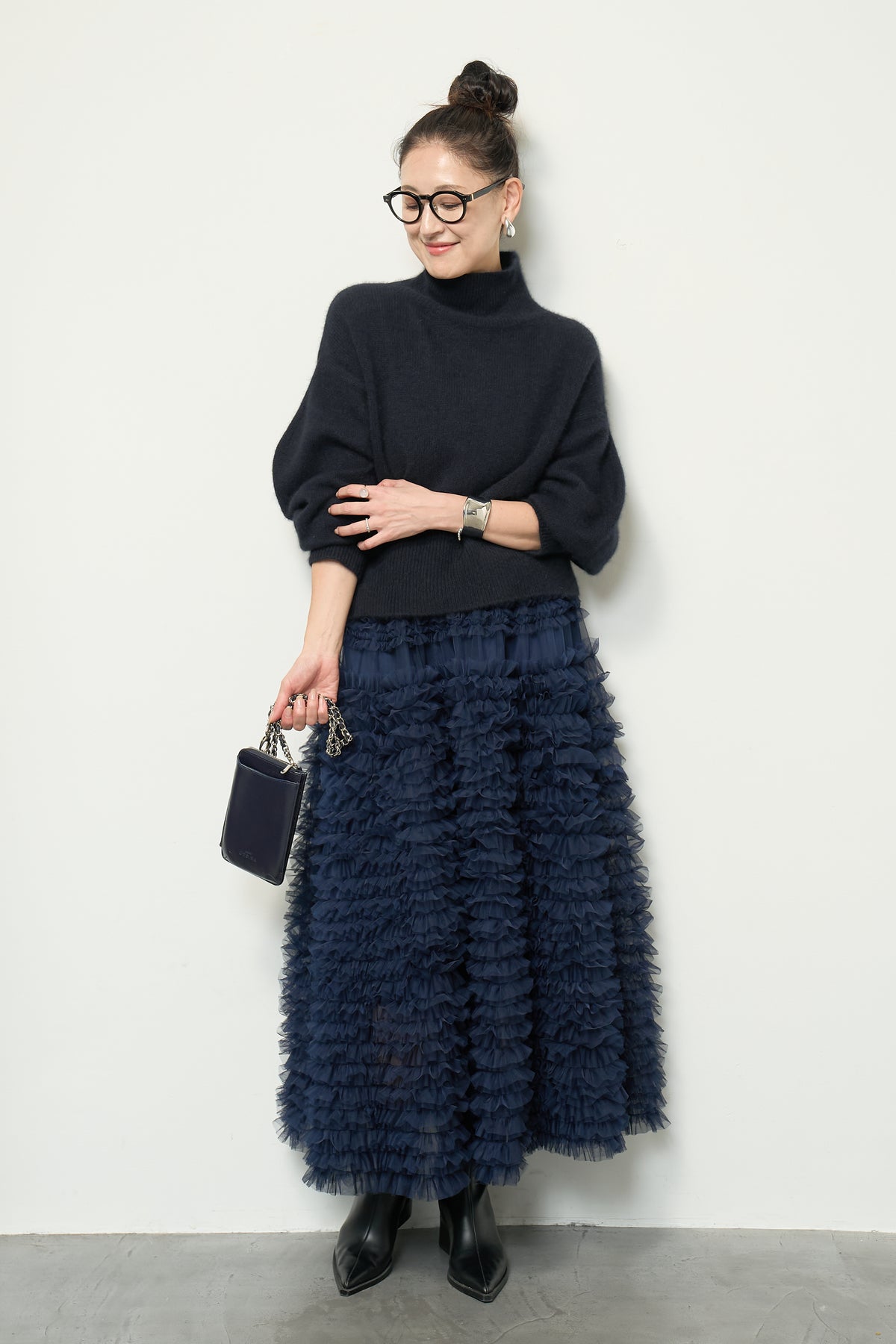 上質なFOX混素材で仕立てたボリュームスリーブニットは、柔らかな肌触りと軽やかな着心地が魅力です。立体感のある袖がシルエットに奥行きを与え、さりげない存在感をプラス。シンプルなデザインでありながら、モダンなディテールが光る一着です。 スタイルに合わせてカジュアルにもフェミニンにも着回しが可能な、トレンド感溢れるニット。季節の変わり目に最適で、どんなシーンでも活躍してくれます。