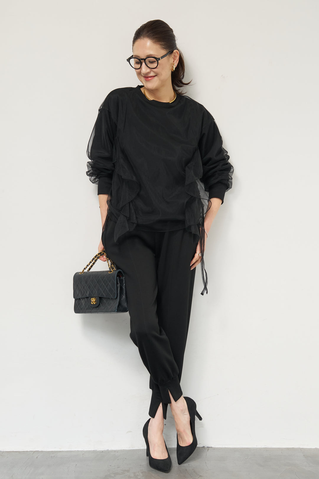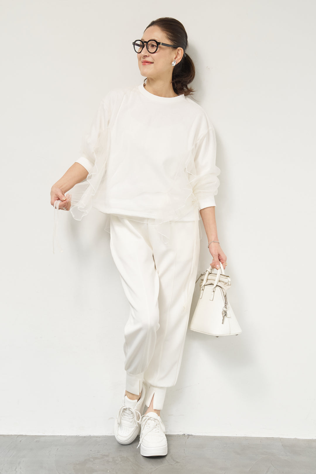 [SET]チュールレイヤード裏毛プルオーバー+ライトダンボールジョガーパンツ(2set)
