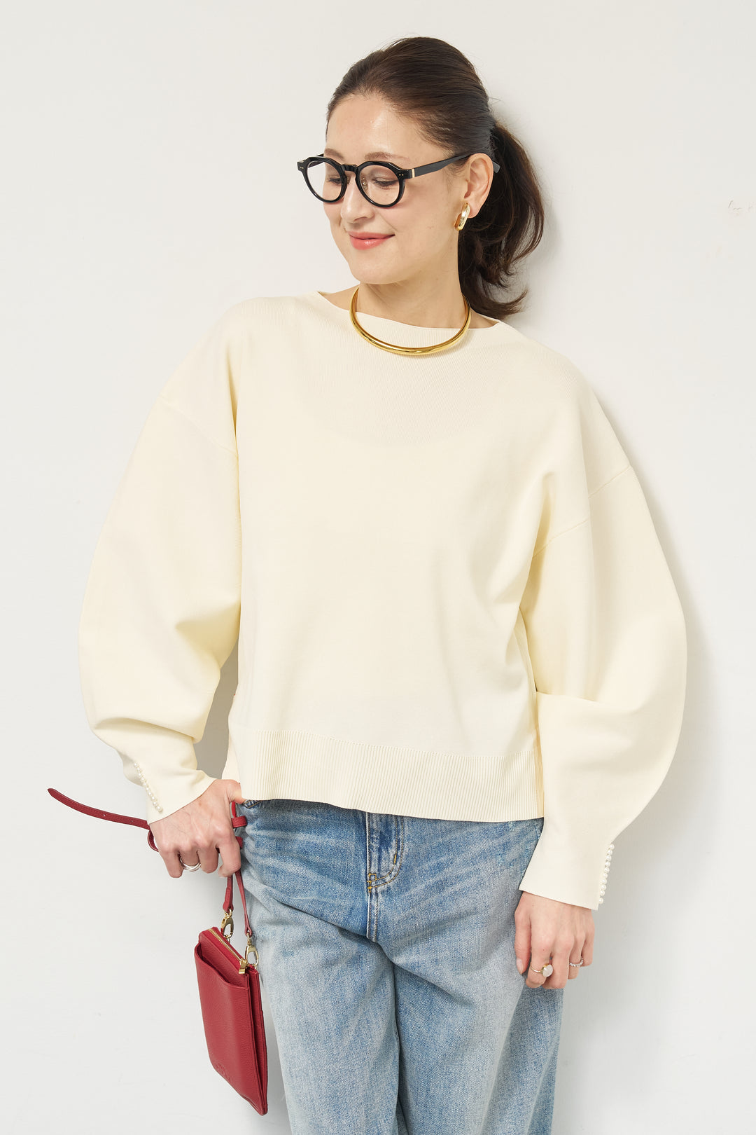 袖パールニット