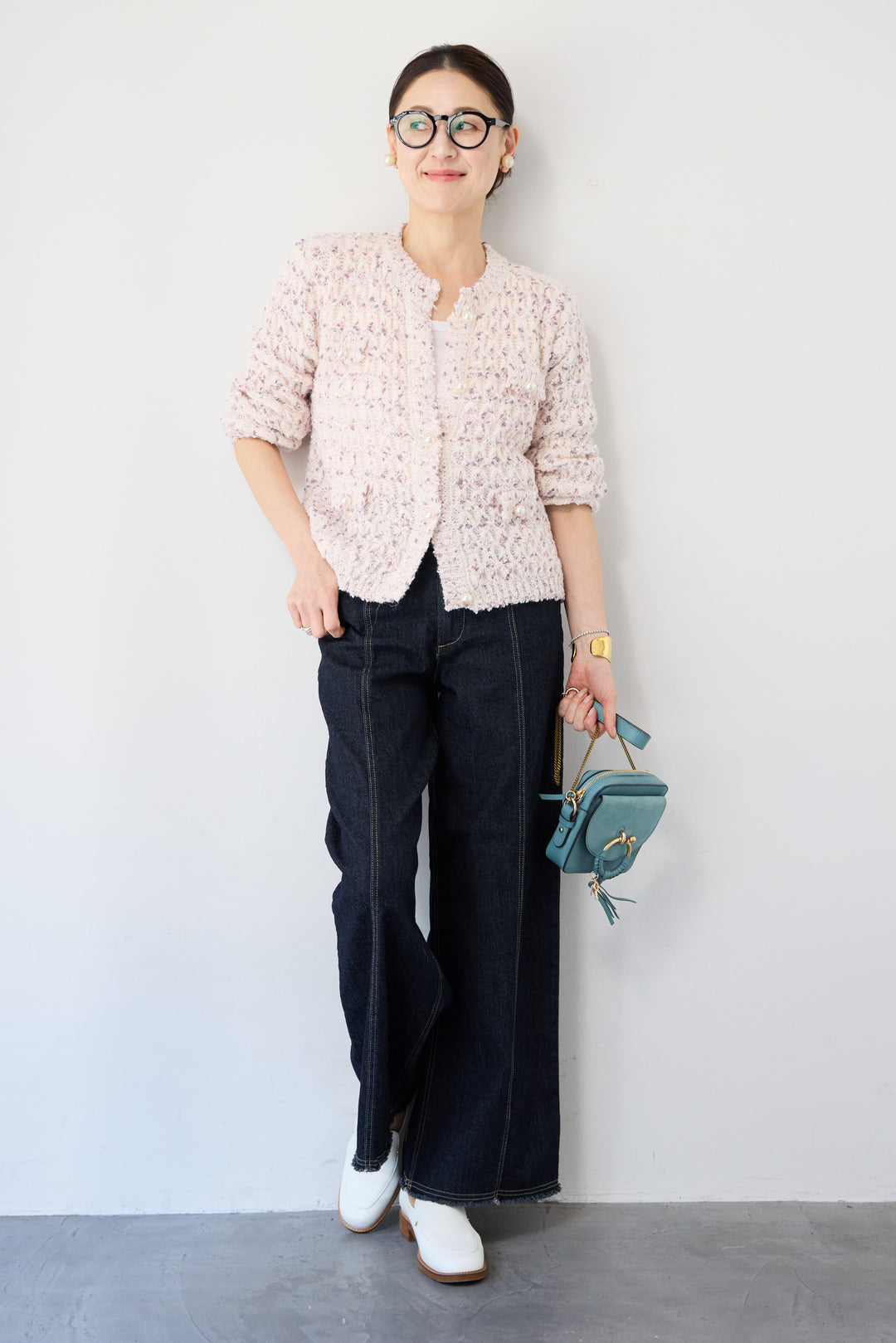 [SET]セーラーカラーセット ニットカーディガン+ダンガリーセンタープレスパンツ(2set)