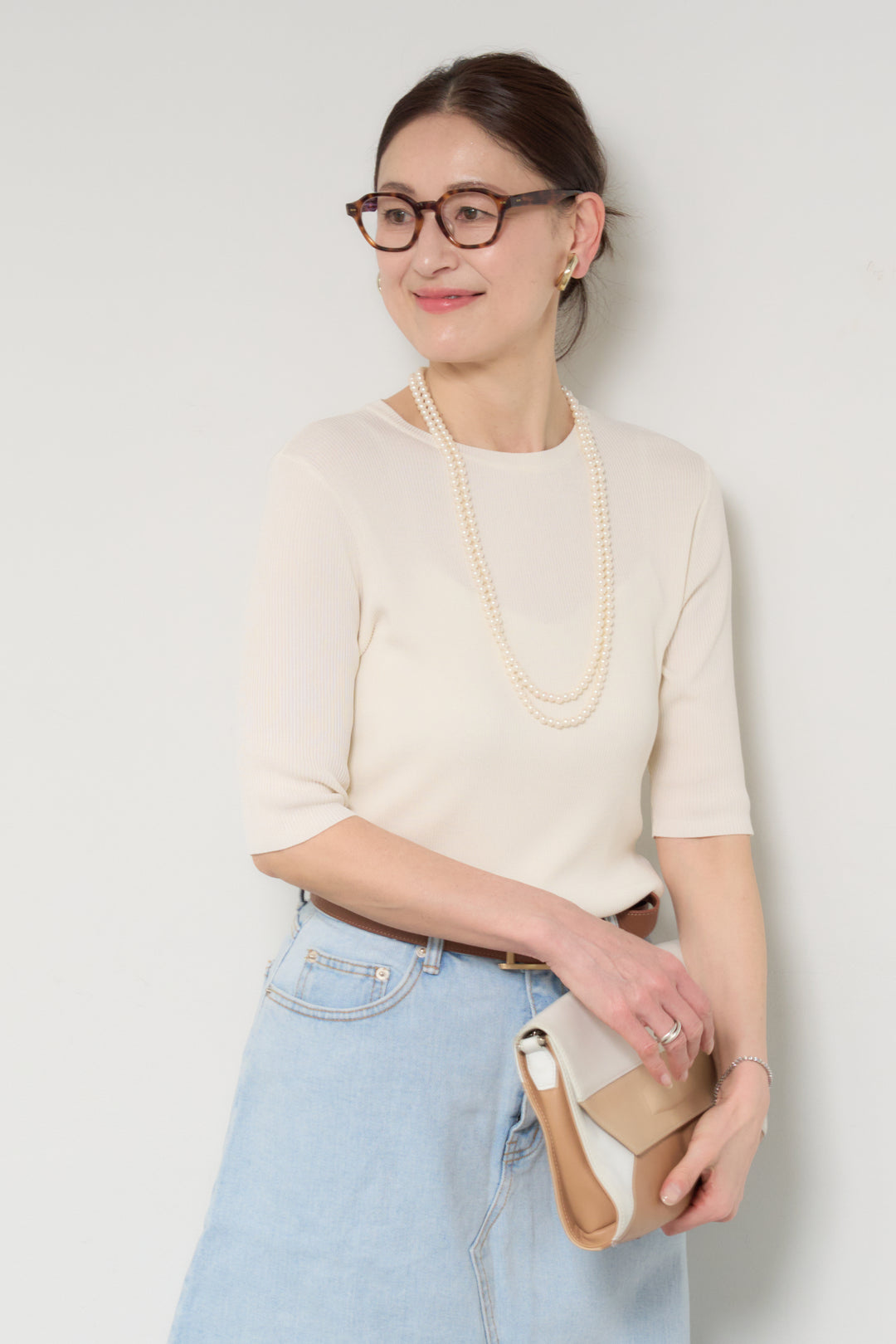 [SET]ウォッシャブルサラッとラメカーディガン+カーブデニムパンツ(2set)