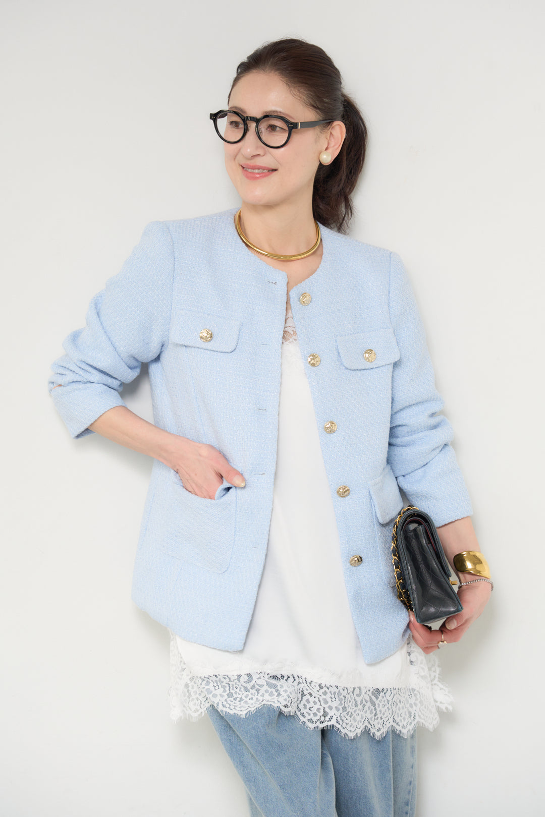 ミディ丈ツイードジャケット