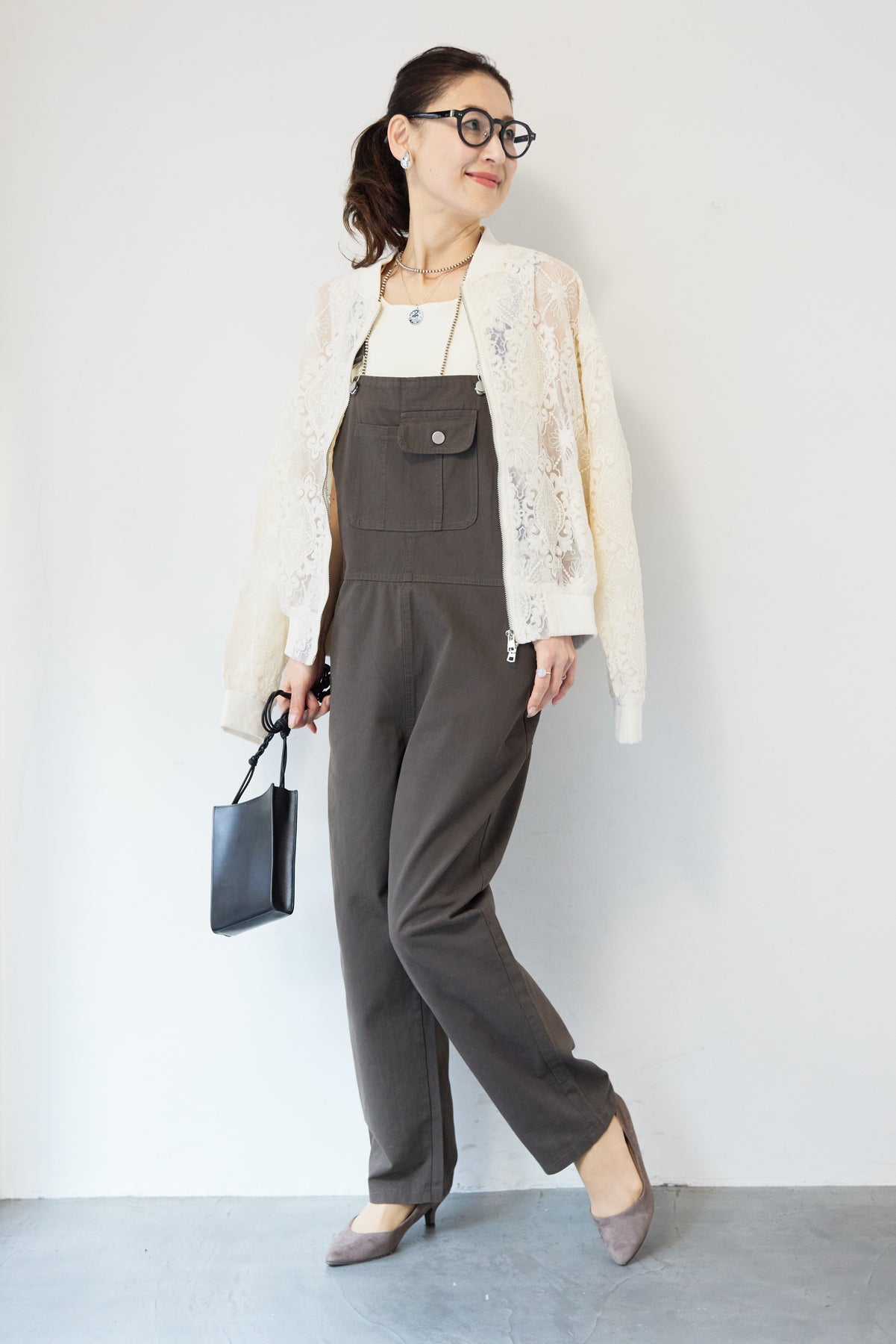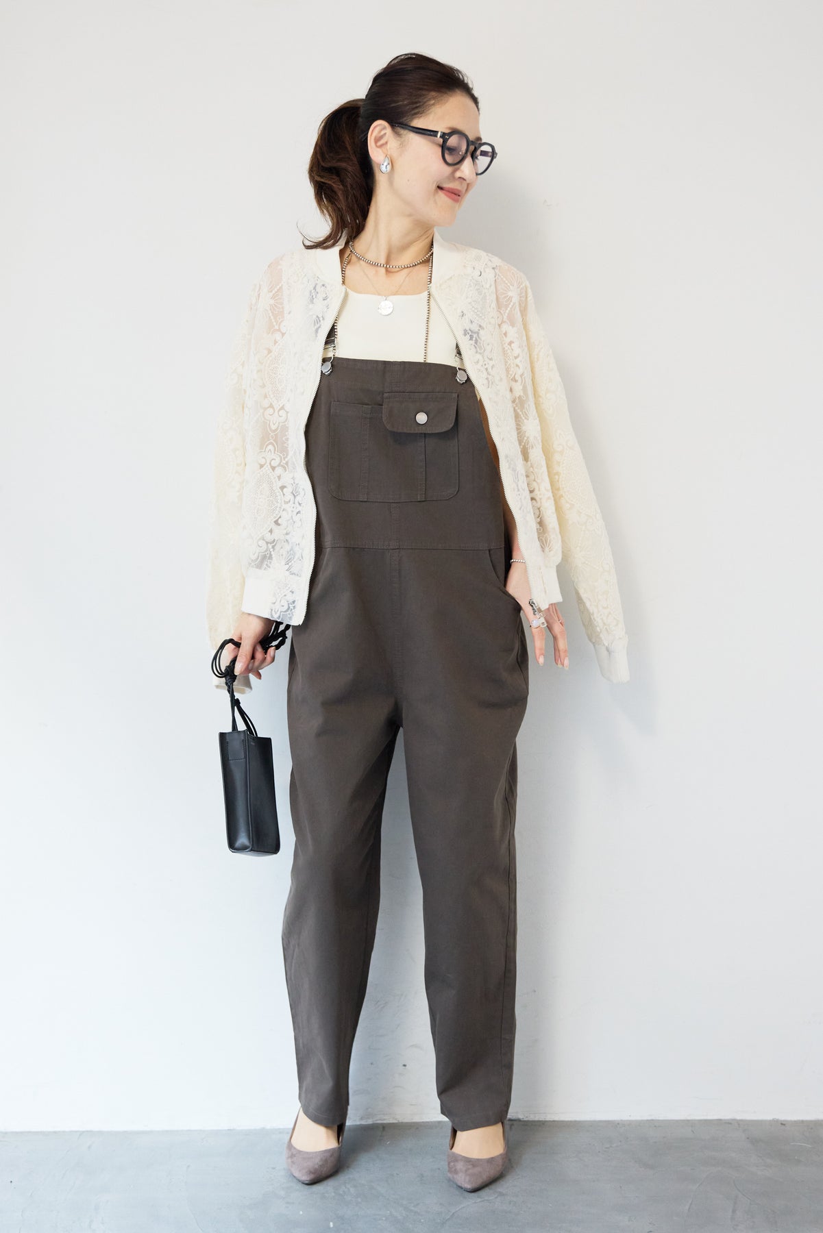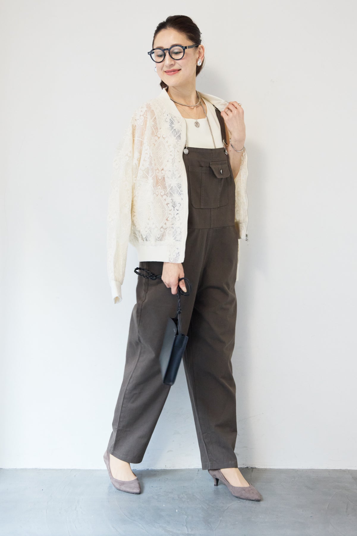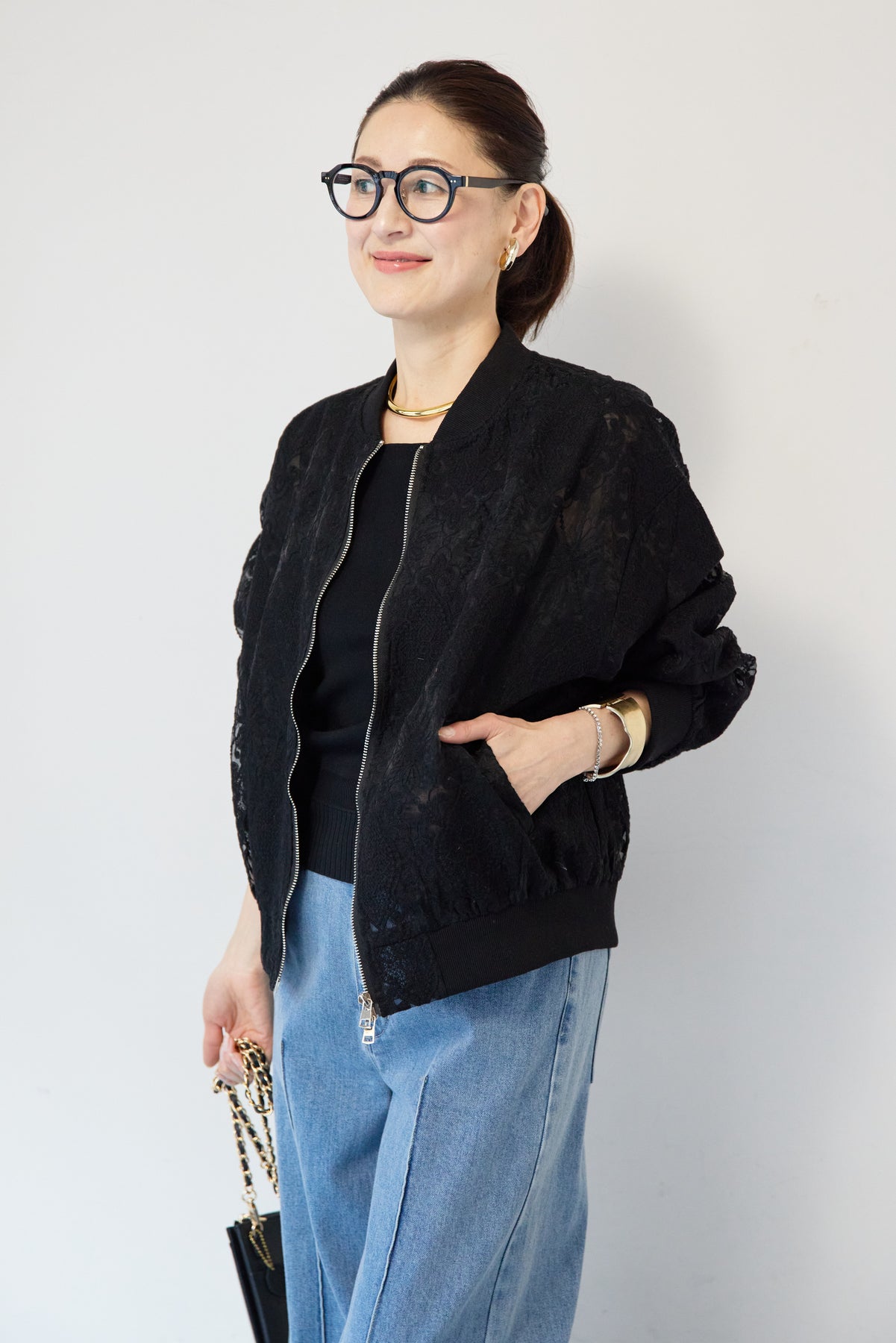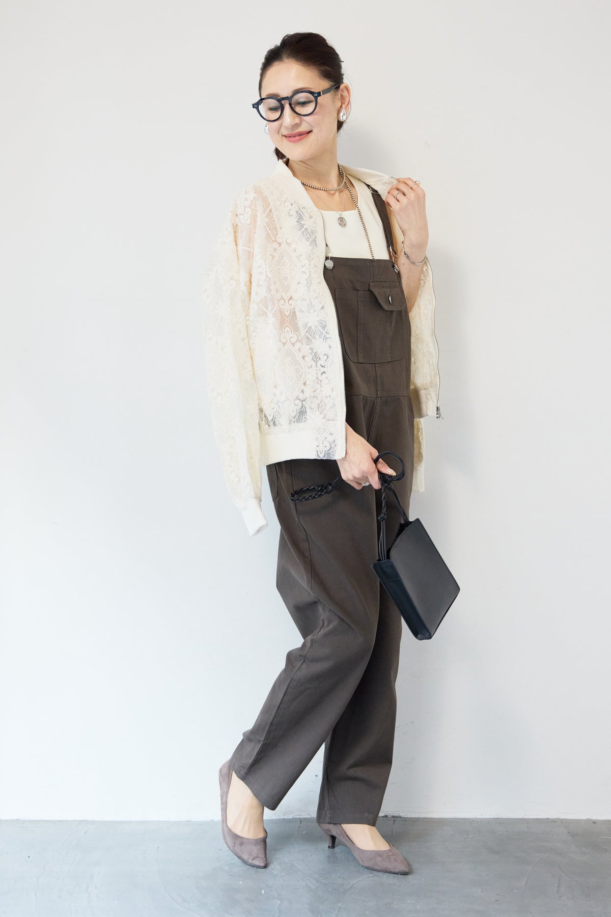 繊細なレース素材が目を惹く、上品さと軽やかさを兼ね備えたシアーブルゾン。程よい透け感の総レースデザインが、女性らしいやわらかな印象を演出します。ブルゾン型なので甘くなりすぎず、カジュアルにもきれいめにもマッチ。デニムと合わせたデイリーコーデはもちろん、ワンピースやスカートの羽織としても活躍します。首元・袖口・裾にはリブを施し、すっきりとしたシルエットと着心地の良さを両立。フロントはダブルジップ仕様で、開け方次第でスタイリングのアレンジも楽しめます。季節の変わり目や冷房対策にもおすすめの、軽やかに羽織れる一枚です。