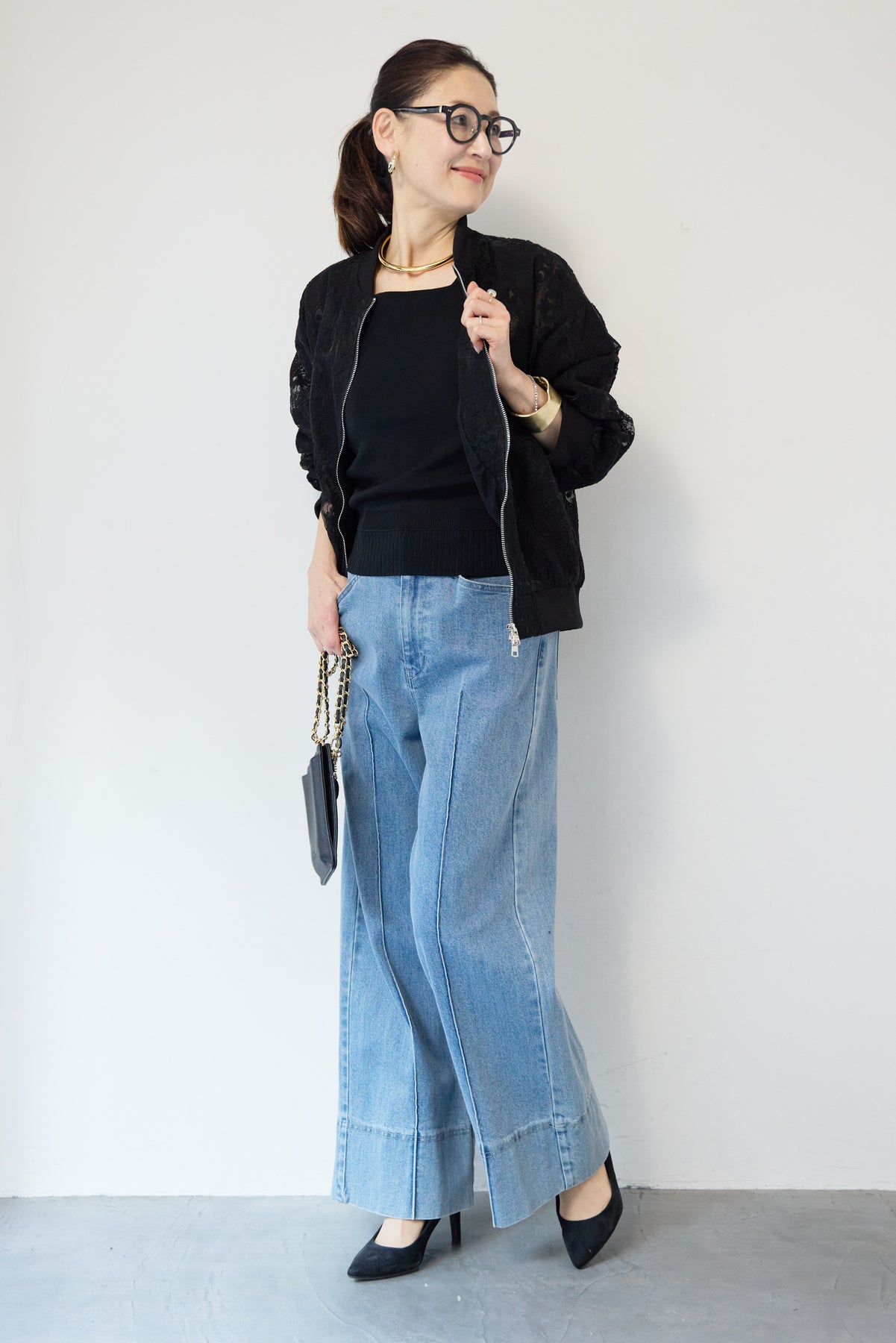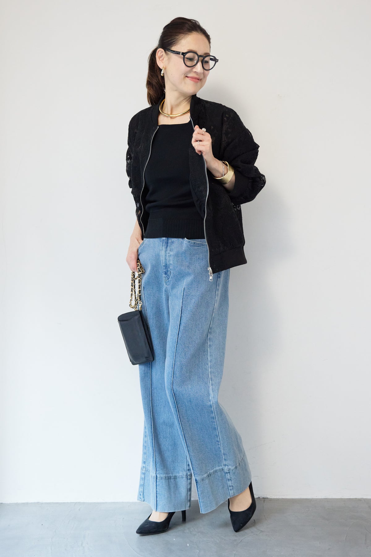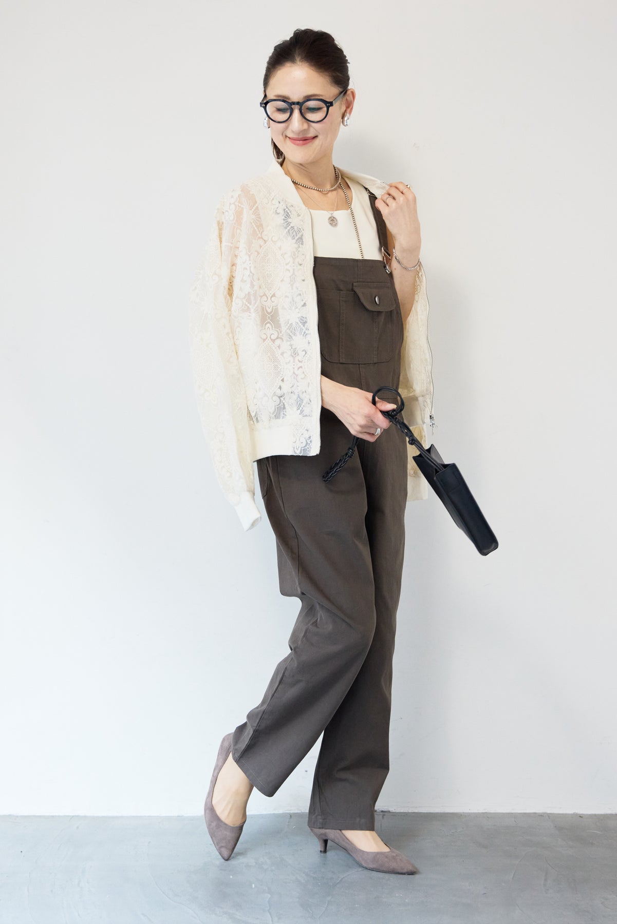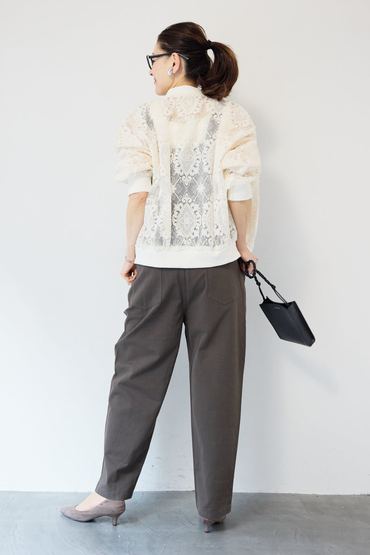 繊細なレース素材が目を惹く、上品さと軽やかさを兼ね備えたシアーブルゾン。程よい透け感の総レースデザインが、女性らしいやわらかな印象を演出します。ブルゾン型なので甘くなりすぎず、カジュアルにもきれいめにもマッチ。デニムと合わせたデイリーコーデはもちろん、ワンピースやスカートの羽織としても活躍します。首元・袖口・裾にはリブを施し、すっきりとしたシルエットと着心地の良さを両立。フロントはダブルジップ仕様で、開け方次第でスタイリングのアレンジも楽しめます。季節の変わり目や冷房対策にもおすすめの、軽やかに羽織れる一枚です。