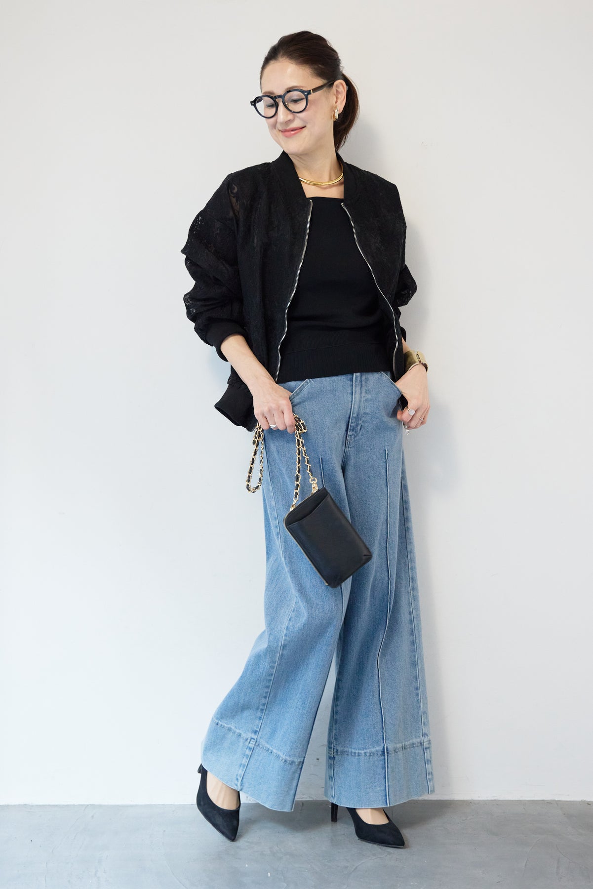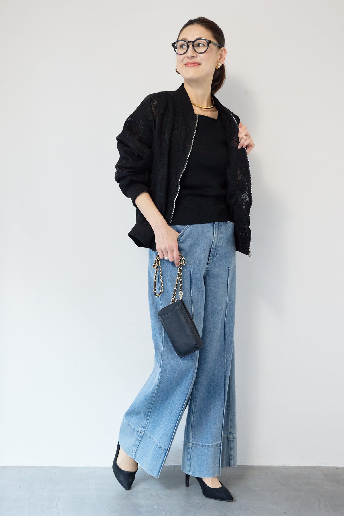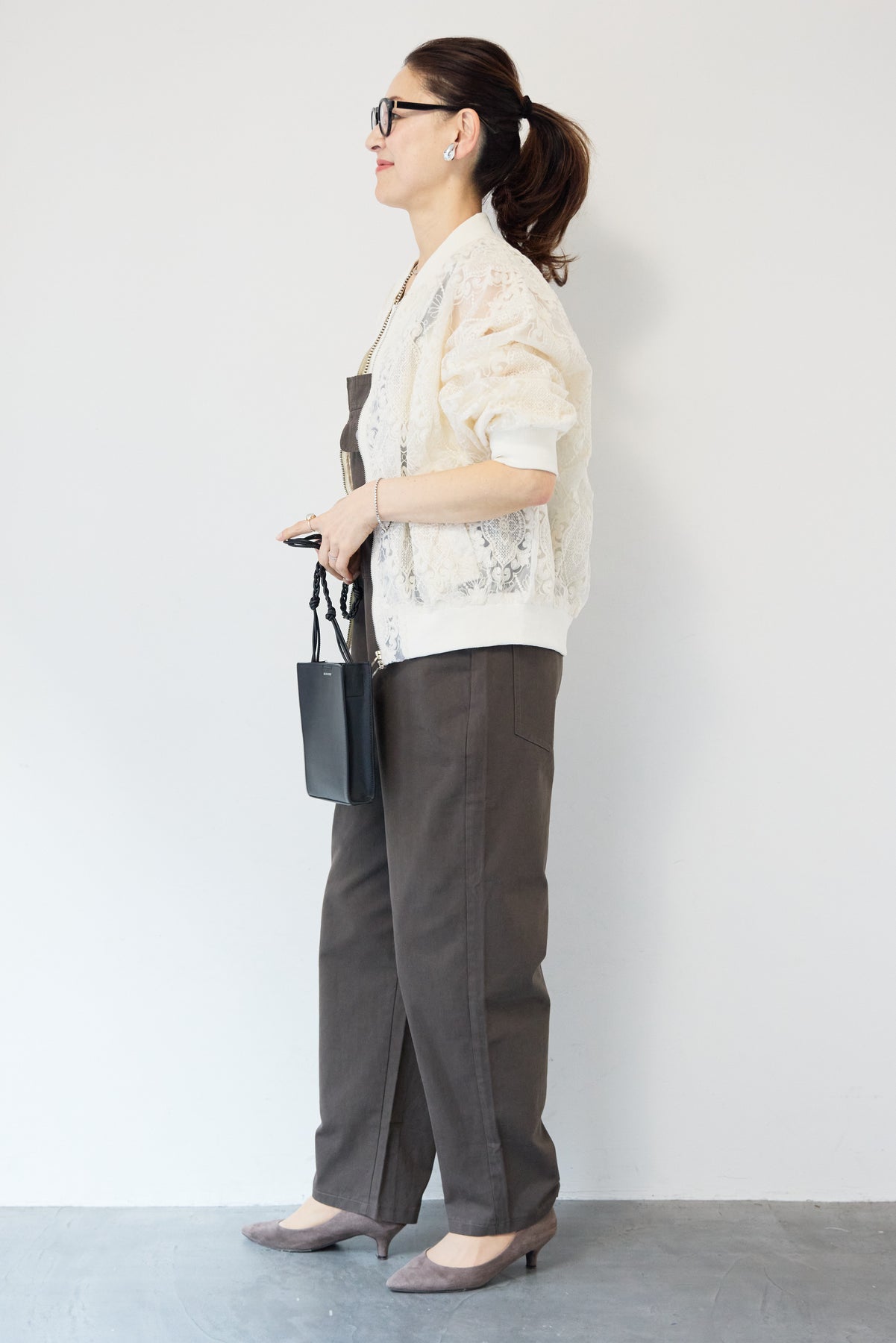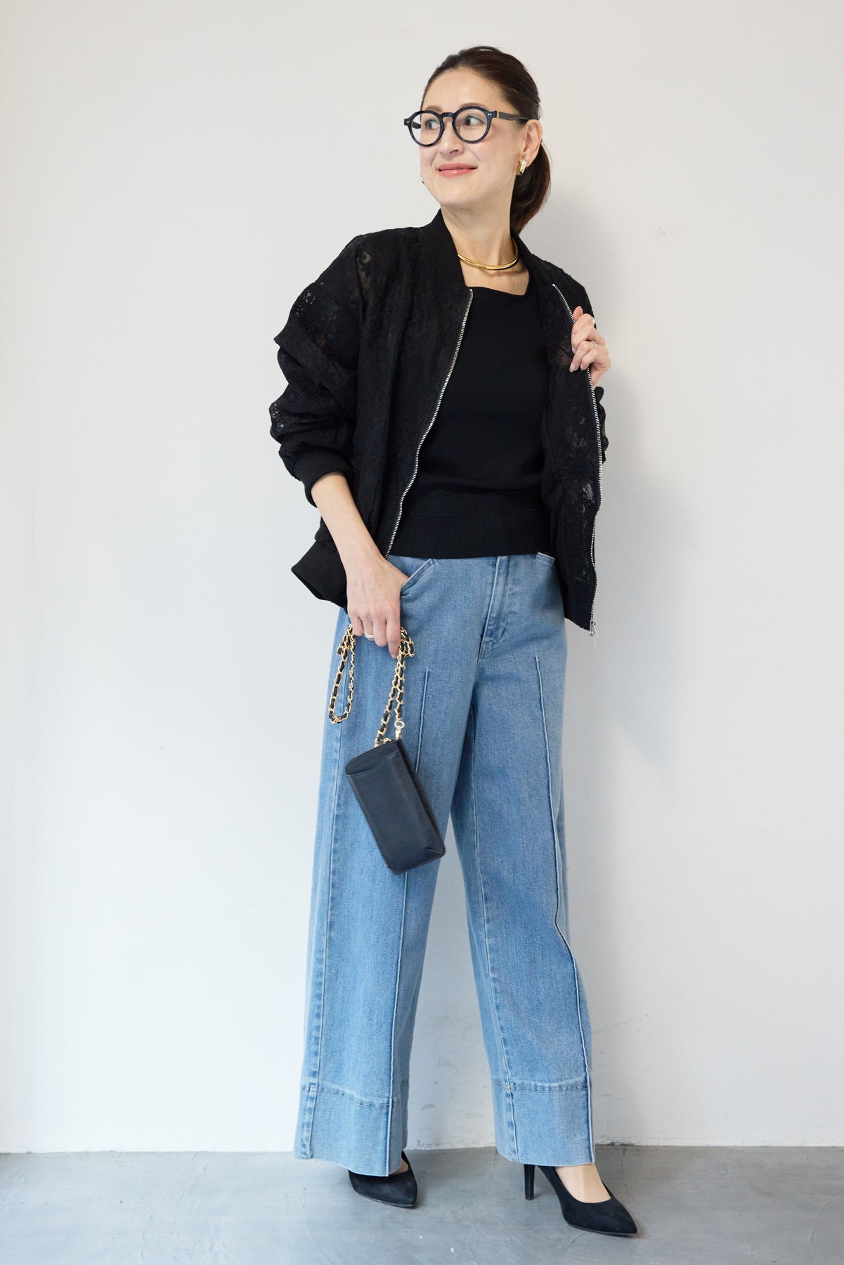繊細なレース素材が目を惹く、上品さと軽やかさを兼ね備えたシアーブルゾン。程よい透け感の総レースデザインが、女性らしいやわらかな印象を演出します。ブルゾン型なので甘くなりすぎず、カジュアルにもきれいめにもマッチ。デニムと合わせたデイリーコーデはもちろん、ワンピースやスカートの羽織としても活躍します。首元・袖口・裾にはリブを施し、すっきりとしたシルエットと着心地の良さを両立。フロントはダブルジップ仕様で、開け方次第でスタイリングのアレンジも楽しめます。季節の変わり目や冷房対策にもおすすめの、軽やかに羽織れる一枚です。