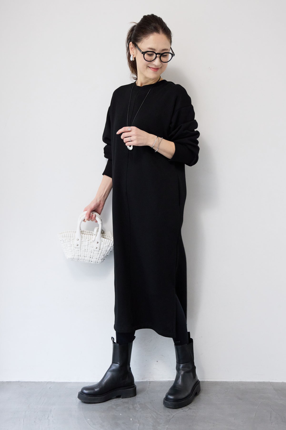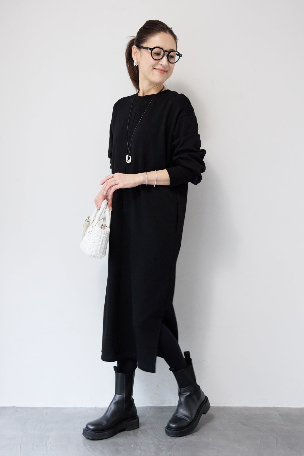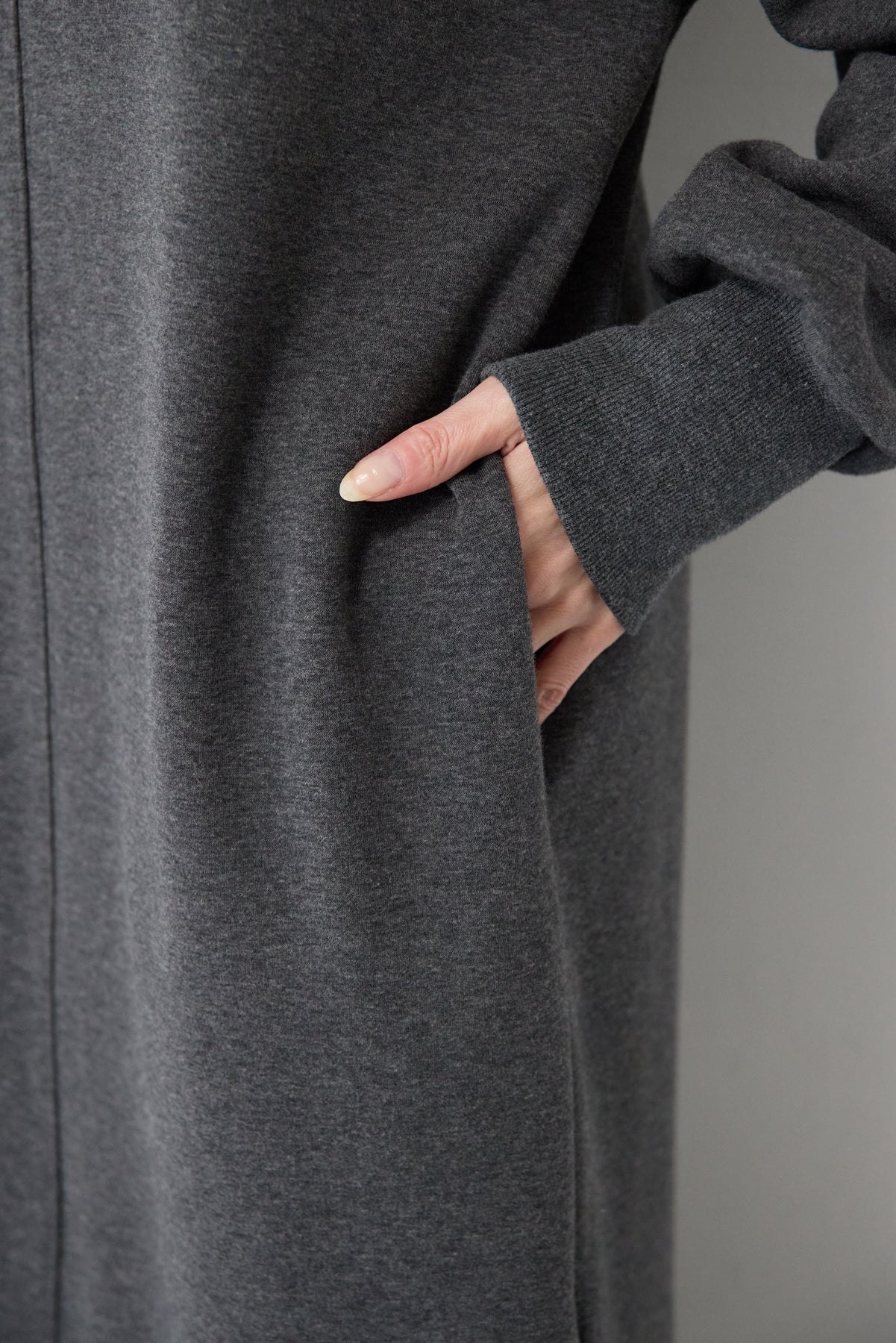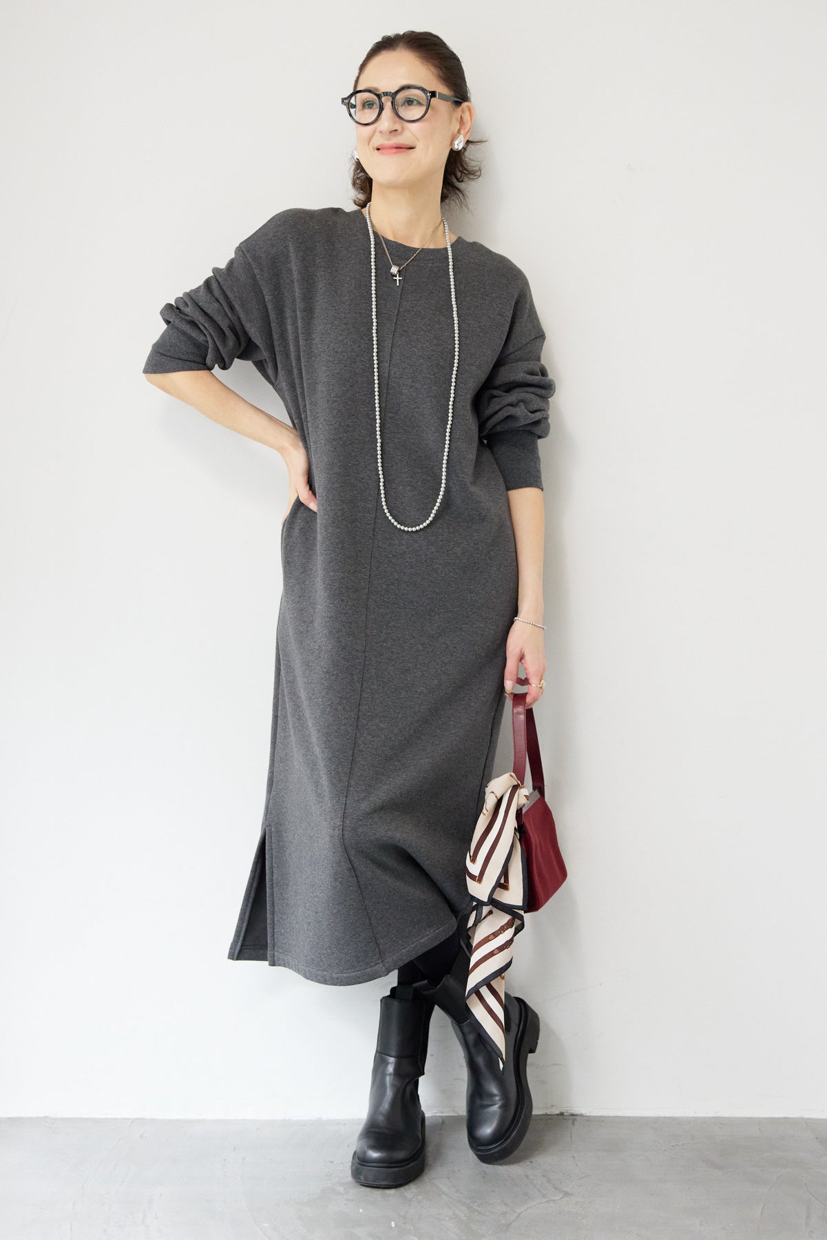 シンプルな中にさりげないデザイン性を効かせた、大人のための裏起毛ワンピース。柔らかくあたたかな裏起毛素材を使用し、寒い季節も快適な着心地を叶えます。フロントは縦ラインを強調する切り替えデザインで、すっきりとした印象に。背中には存在感のあるバックジップを施し、後ろ姿まで抜かりなく仕上げました。着脱のしやすさはもちろん、コーディネートのアクセントにもなるポイントです。程よくゆとりのあるストレートシルエットとロング丈が、体のラインを拾いすぎず上品にカバー。裾にはサイドスリットを入れることで、足さばきが良く、重たく見えないバランスに仕上げています。一枚でさらっと着るだけでサマになり、ブーツやスニーカーなど合わせる小物次第でカジュアルにもきれいめにも活躍します。