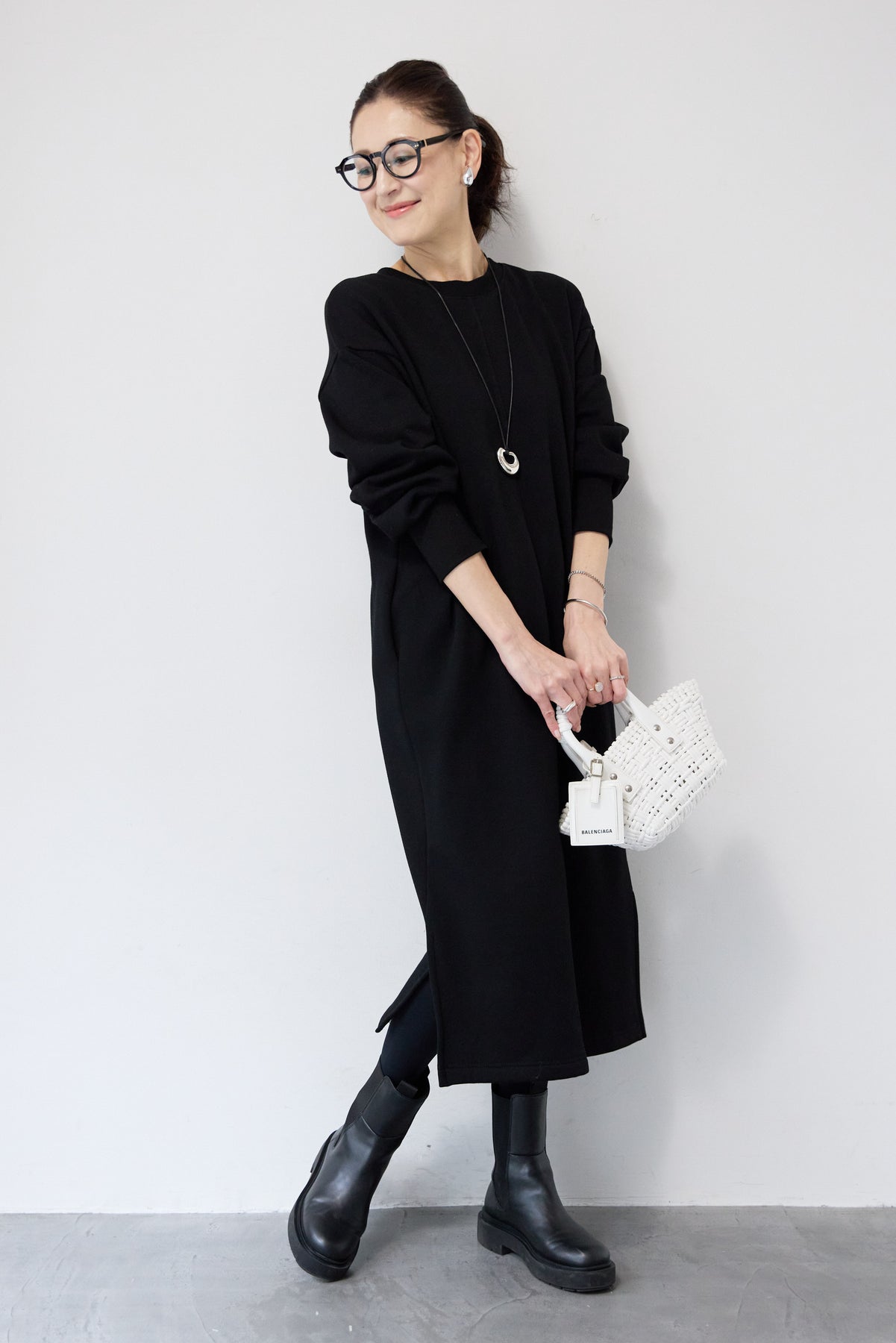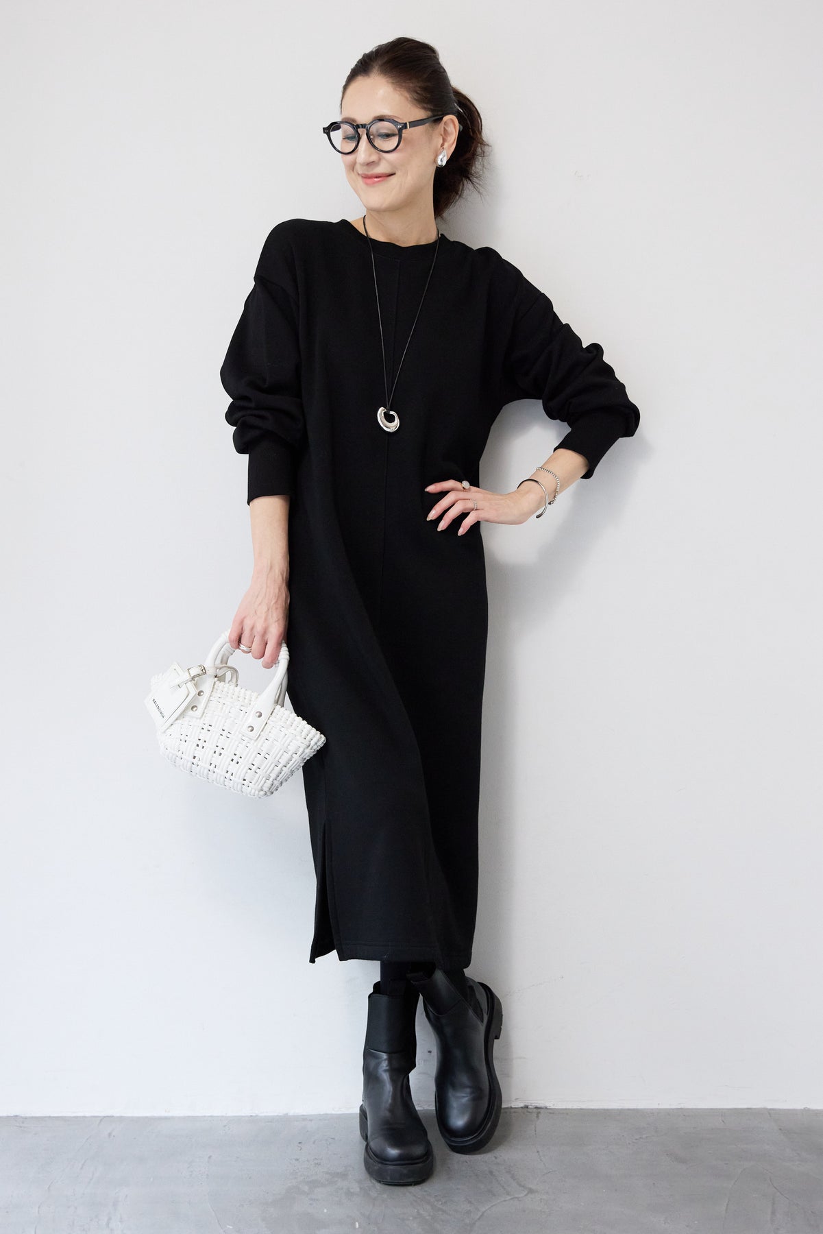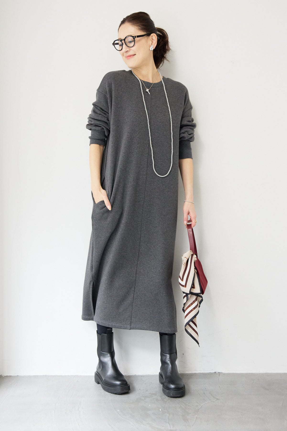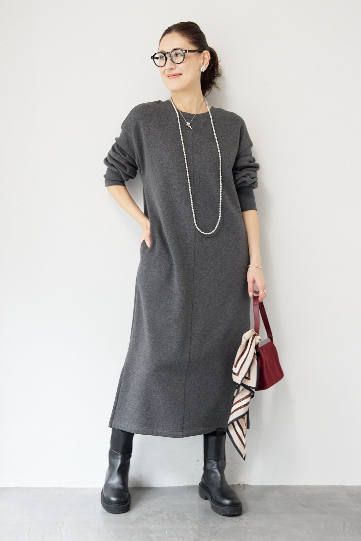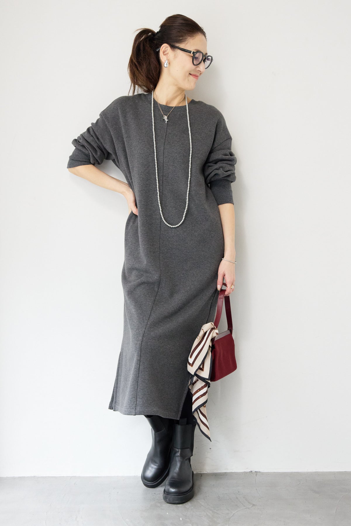 シンプルな中にさりげないデザイン性を効かせた、大人のための裏起毛ワンピース。柔らかくあたたかな裏起毛素材を使用し、寒い季節も快適な着心地を叶えます。フロントは縦ラインを強調する切り替えデザインで、すっきりとした印象に。背中には存在感のあるバックジップを施し、後ろ姿まで抜かりなく仕上げました。着脱のしやすさはもちろん、コーディネートのアクセントにもなるポイントです。程よくゆとりのあるストレートシルエットとロング丈が、体のラインを拾いすぎず上品にカバー。裾にはサイドスリットを入れることで、足さばきが良く、重たく見えないバランスに仕上げています。一枚でさらっと着るだけでサマになり、ブーツやスニーカーなど合わせる小物次第でカジュアルにもきれいめにも活躍します。