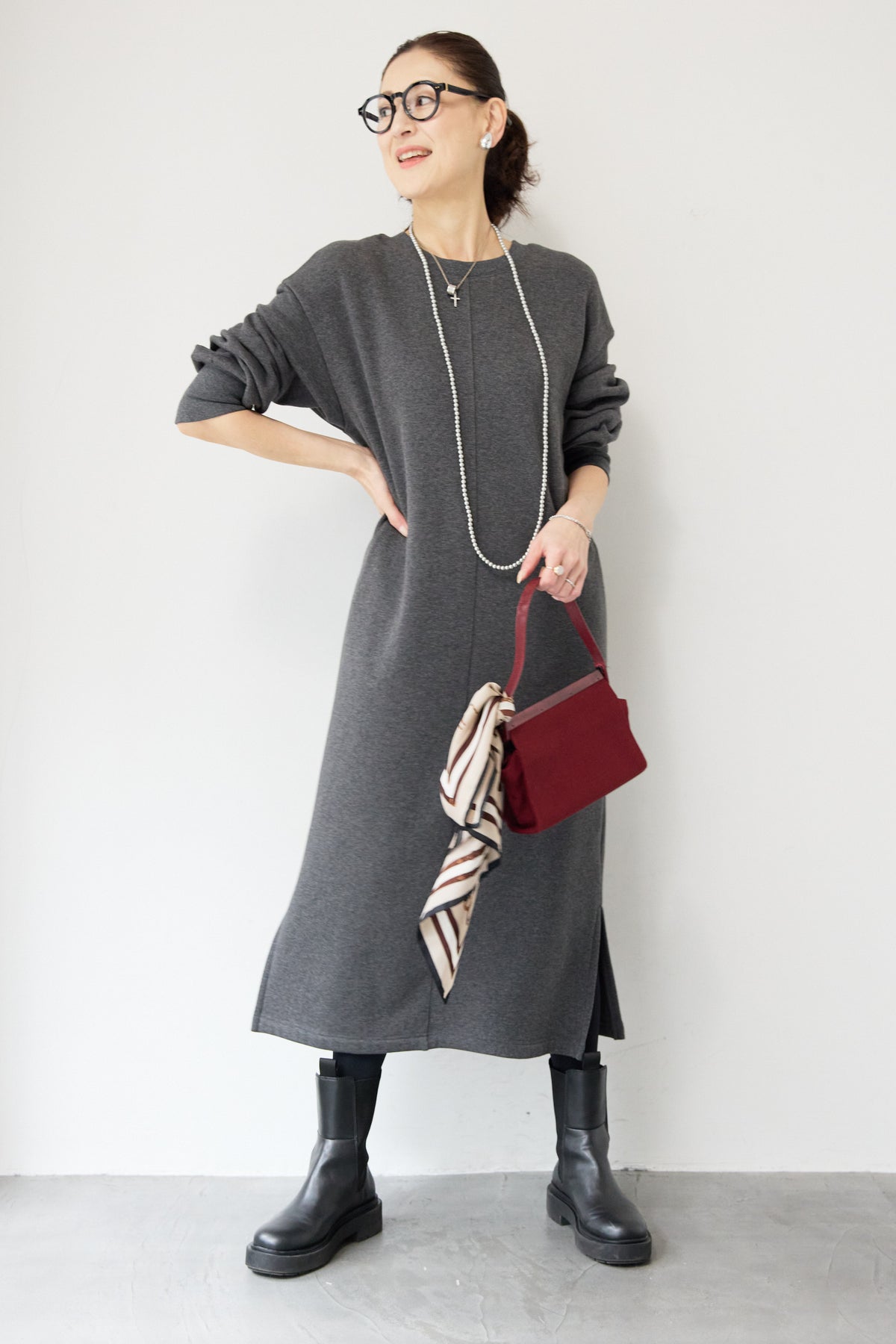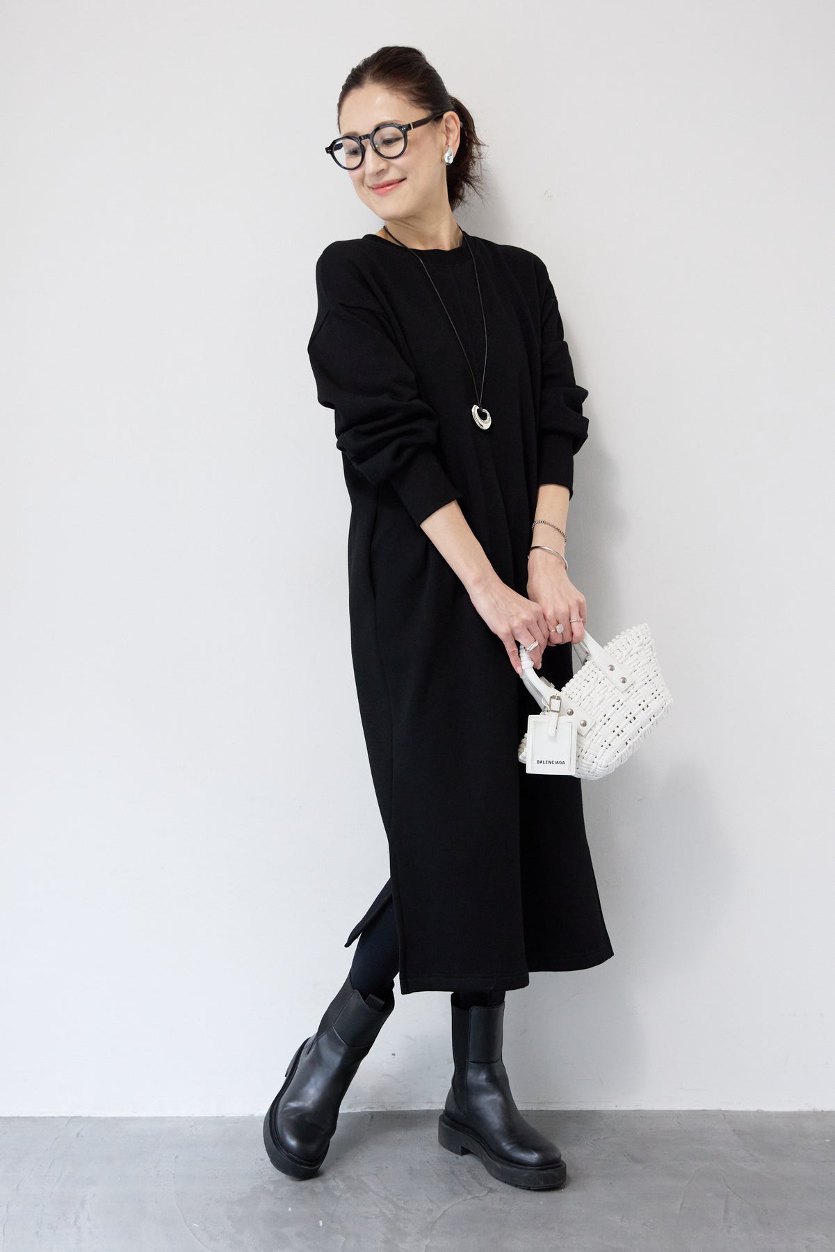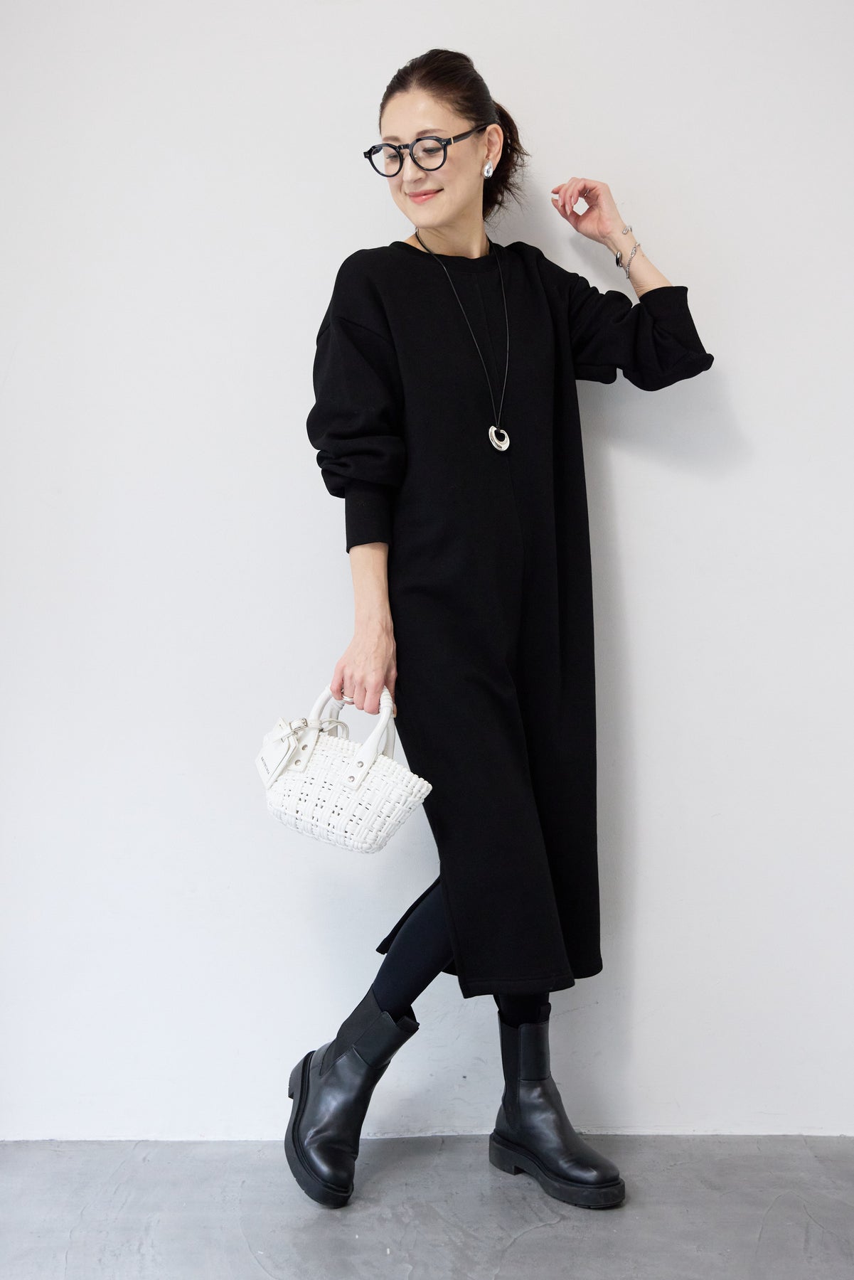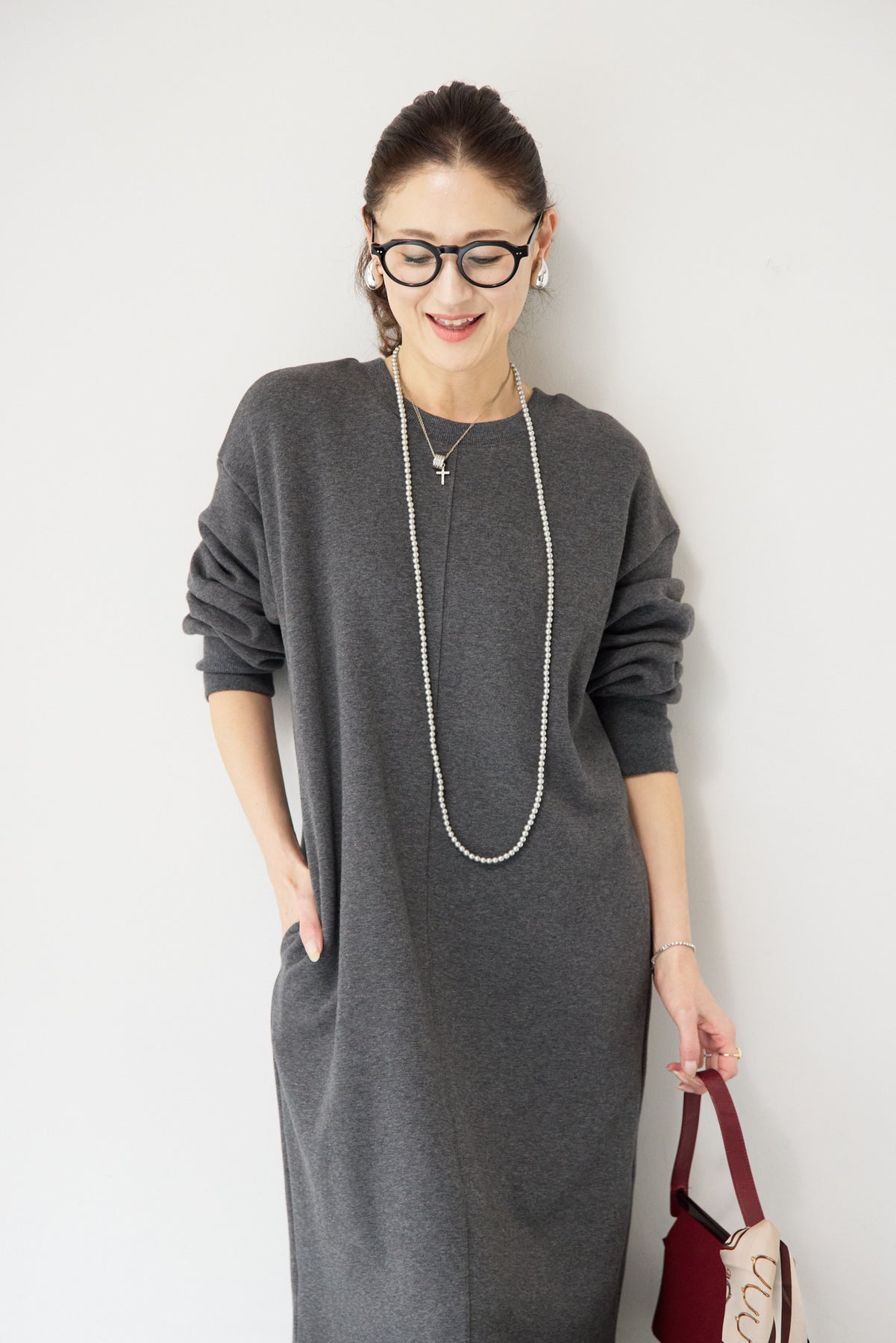 シンプルな中にさりげないデザイン性を効かせた、大人のための裏起毛ワンピース。柔らかくあたたかな裏起毛素材を使用し、寒い季節も快適な着心地を叶えます。フロントは縦ラインを強調する切り替えデザインで、すっきりとした印象に。背中には存在感のあるバックジップを施し、後ろ姿まで抜かりなく仕上げました。着脱のしやすさはもちろん、コーディネートのアクセントにもなるポイントです。程よくゆとりのあるストレートシルエットとロング丈が、体のラインを拾いすぎず上品にカバー。裾にはサイドスリットを入れることで、足さばきが良く、重たく見えないバランスに仕上げています。一枚でさらっと着るだけでサマになり、ブーツやスニーカーなど合わせる小物次第でカジュアルにもきれいめにも活躍します。