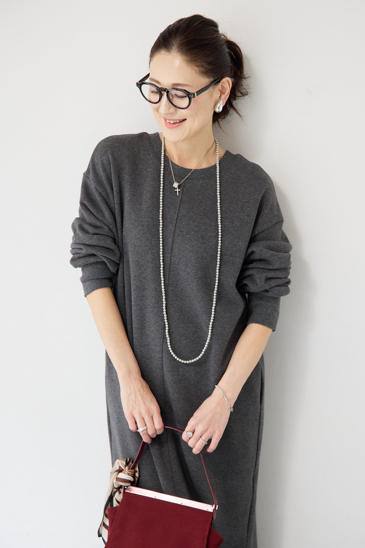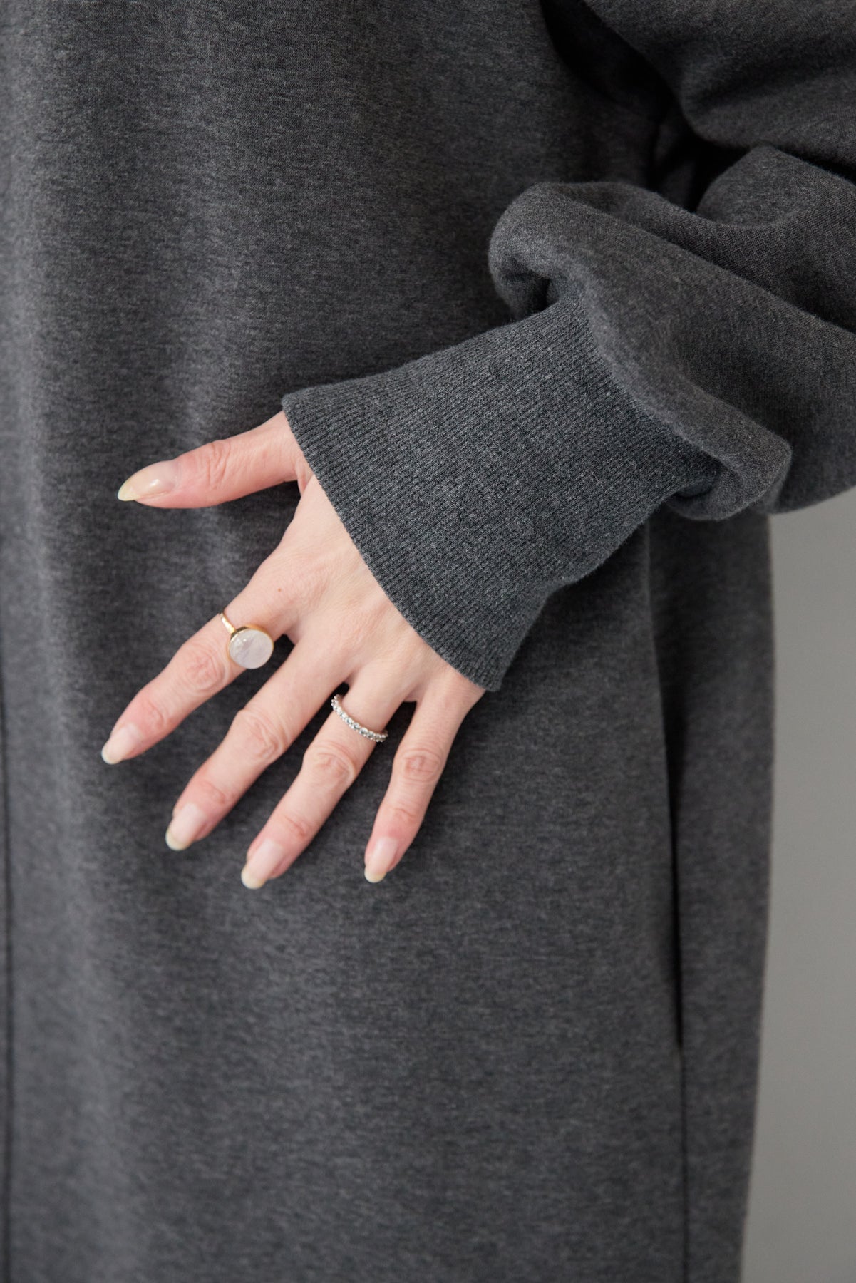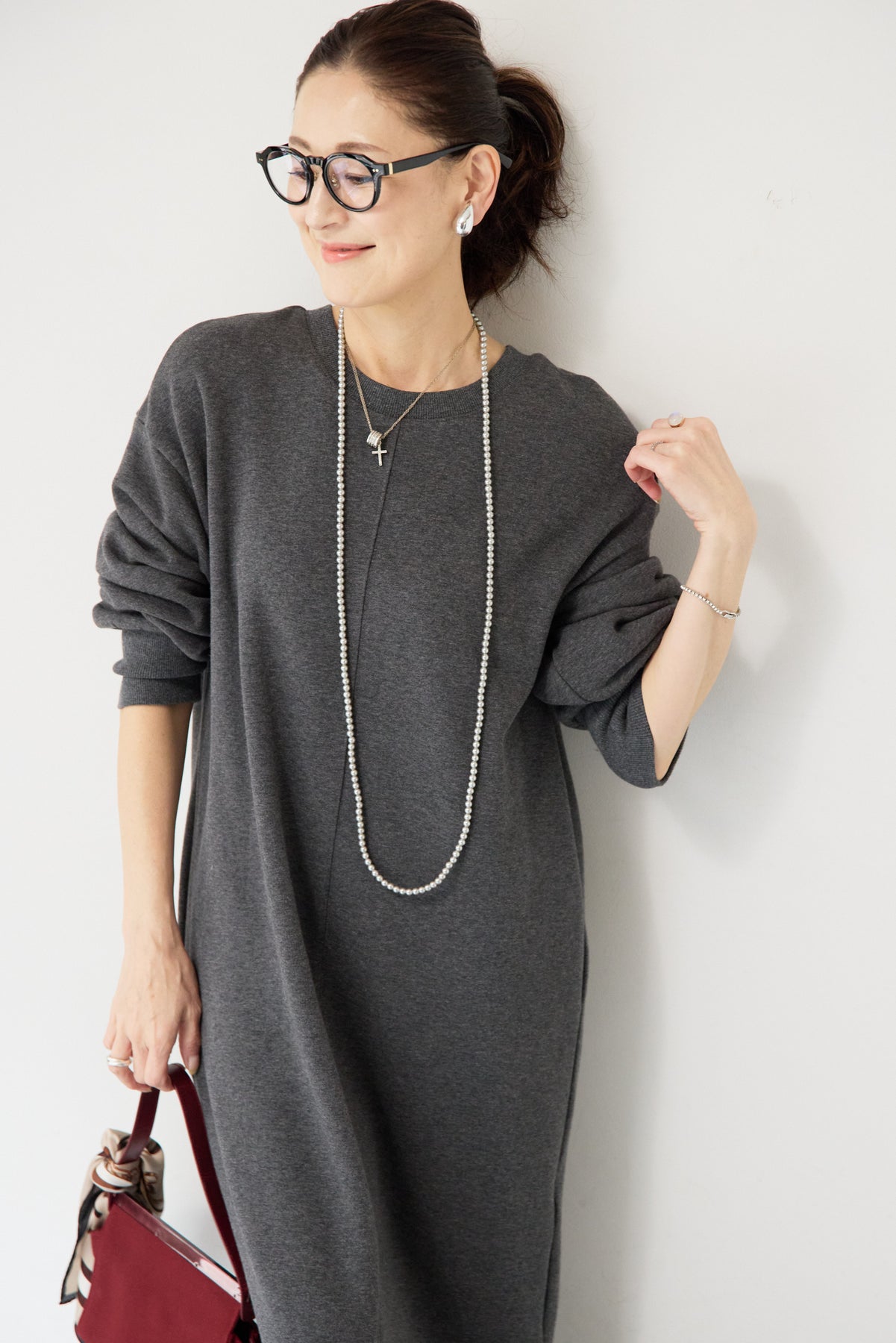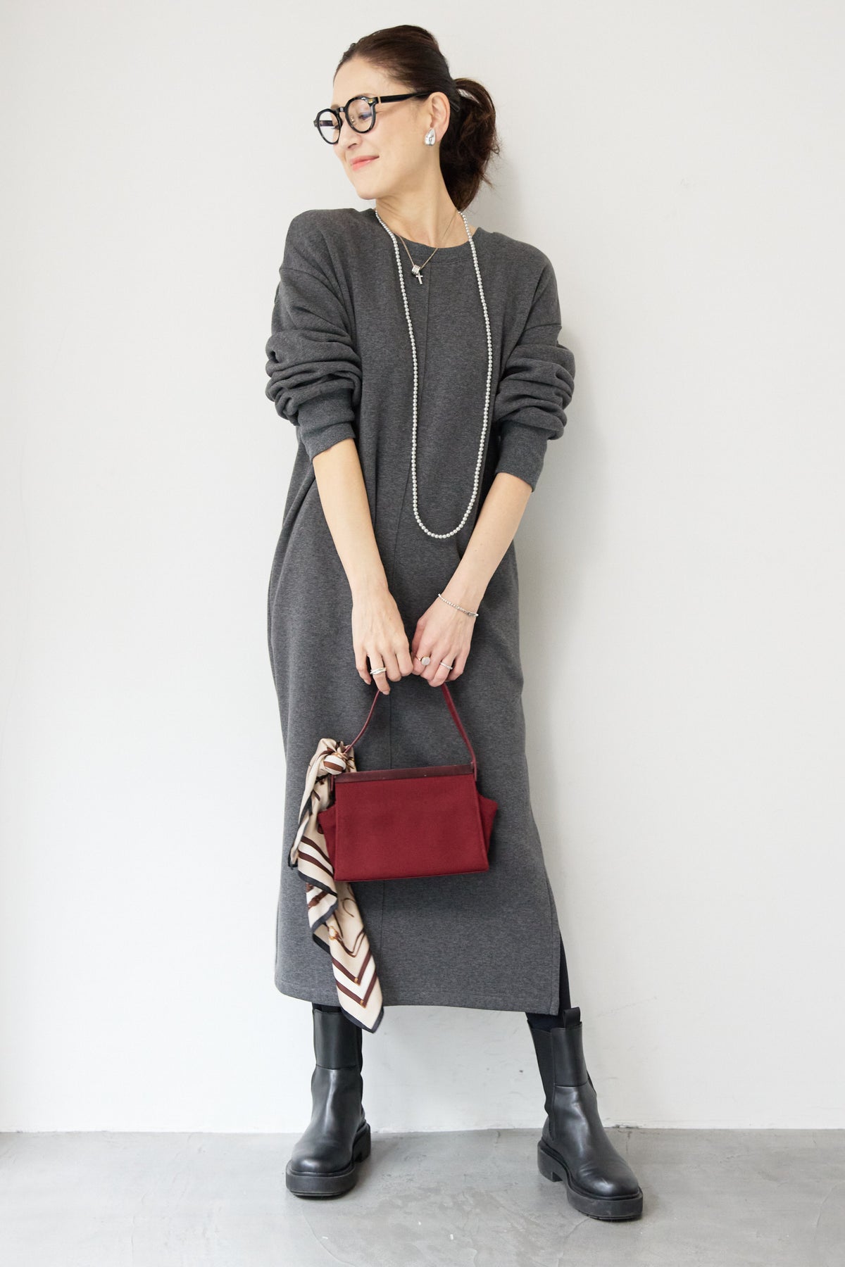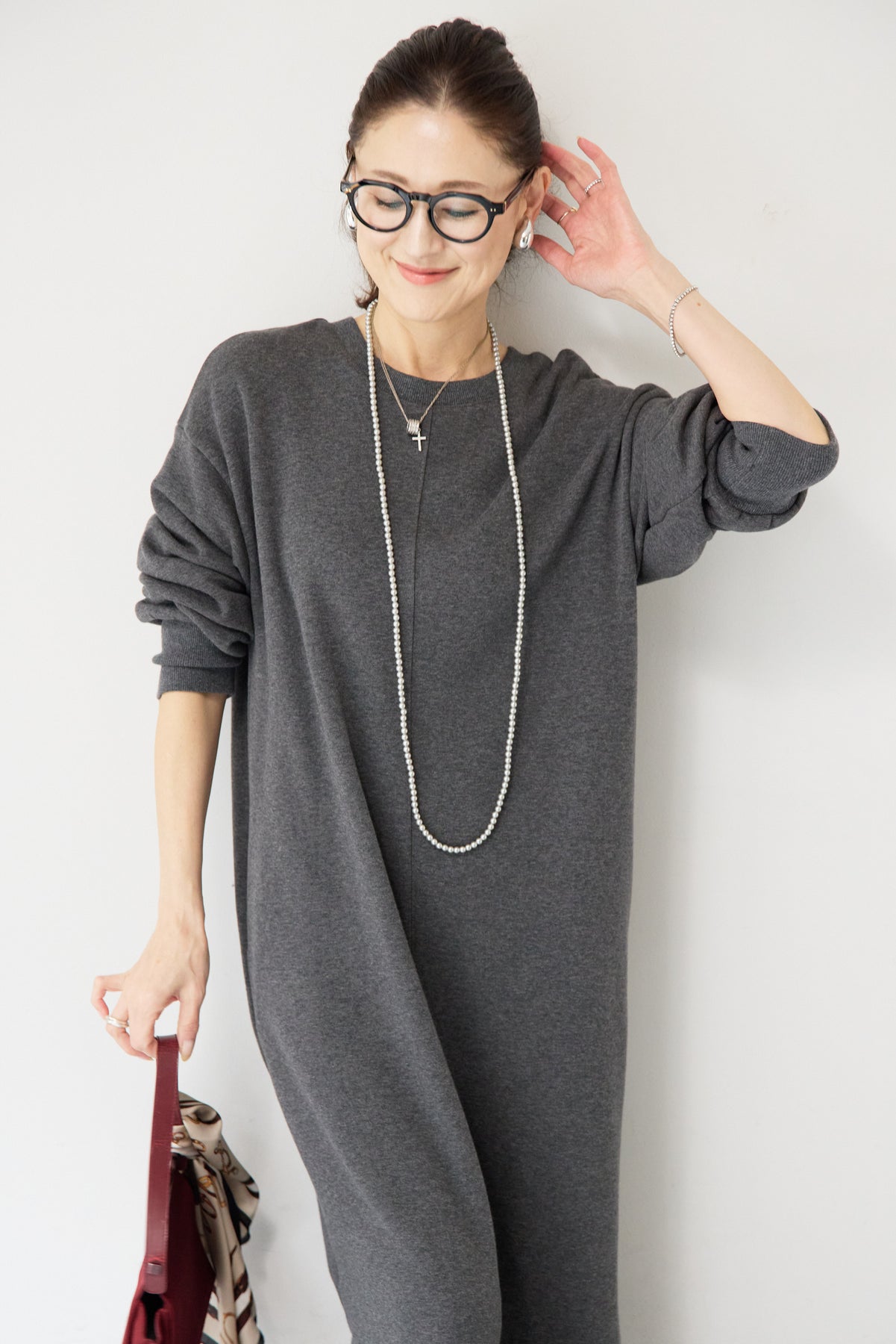 シンプルな中にさりげないデザイン性を効かせた、大人のための裏起毛ワンピース。柔らかくあたたかな裏起毛素材を使用し、寒い季節も快適な着心地を叶えます。フロントは縦ラインを強調する切り替えデザインで、すっきりとした印象に。背中には存在感のあるバックジップを施し、後ろ姿まで抜かりなく仕上げました。着脱のしやすさはもちろん、コーディネートのアクセントにもなるポイントです。程よくゆとりのあるストレートシルエットとロング丈が、体のラインを拾いすぎず上品にカバー。裾にはサイドスリットを入れることで、足さばきが良く、重たく見えないバランスに仕上げています。一枚でさらっと着るだけでサマになり、ブーツやスニーカーなど合わせる小物次第でカジュアルにもきれいめにも活躍します。
