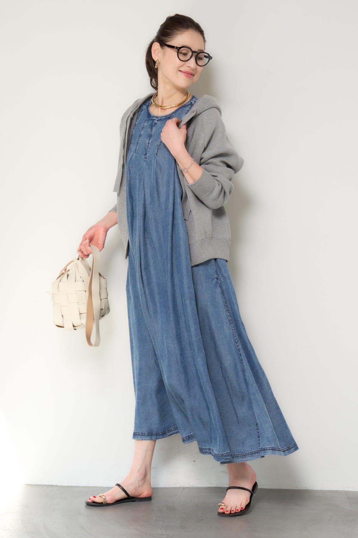 パウダーシルクデニムジップワンピース