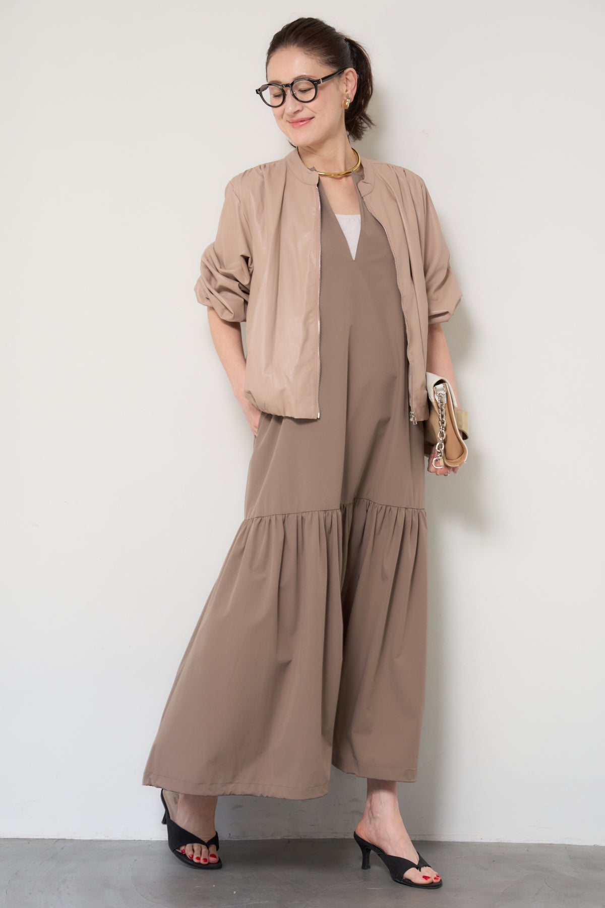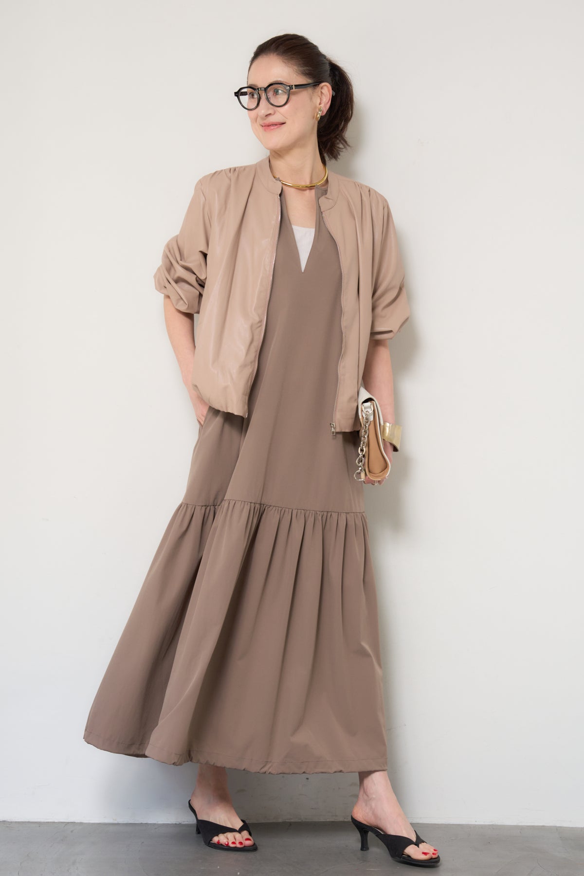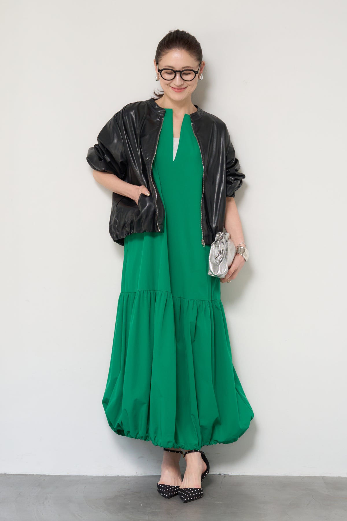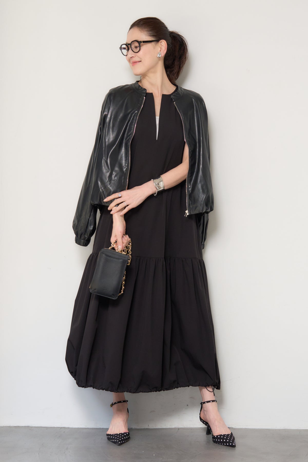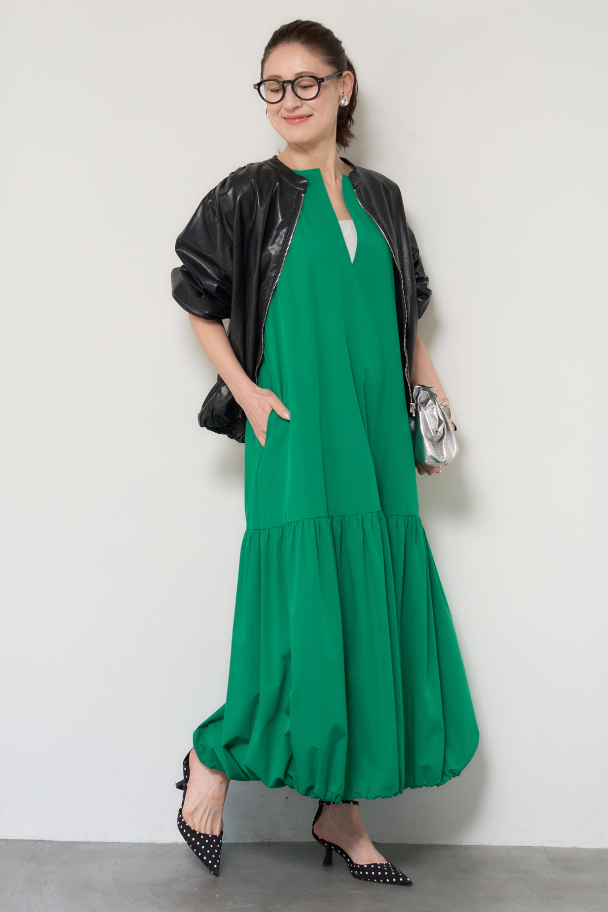涼しく快適に着られる、【接触冷感】素材のノースリーブワンピース。すっきりとしたキーネックデザインが顔まわりをシャープに見せ、大人っぽく洗練された印象に仕上げてくれる一枚。身頃はゆとりのあるシルエットで身体のラインを拾いにくく、リラックス感のある着心地ながら上品な雰囲気を演出します。裾には切り替えを入れたヘムデザインを採用し、動くたびにふんわりと揺れる立体的なシルエットが魅力。裾部分にはドロストで変化をつけられる2WAY仕様で、気分やスタイリングに合わせて印象を変えて楽しめます。さらに、ひんやりとした肌触りの接触冷感素材を使用しているため、暑い季節でも快適な着心地。両サイドには便利なポケット付きで、デイリーにもお出かけにも活躍します。
