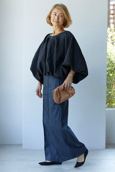 [SET]ウォッシャブルポンチョニット+カーブデニムパンツ(2set)