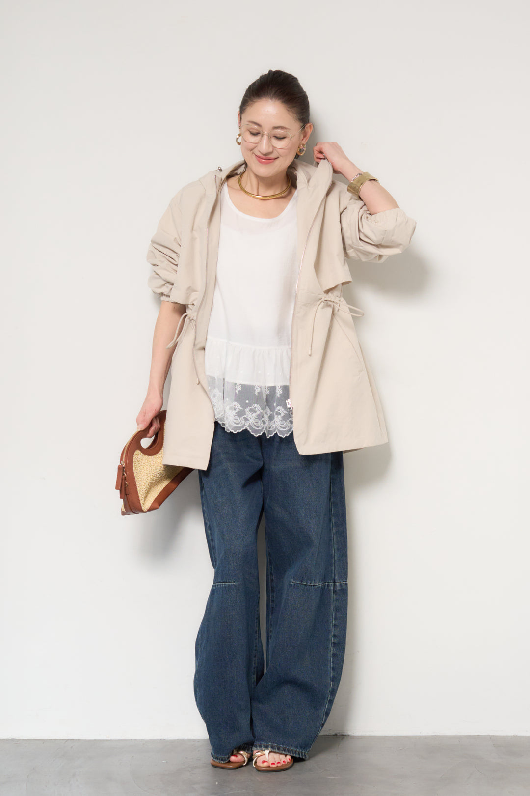 [SET]スカラップヘム レースシアーブラウス+ワークテイストデニムオールインワン(2set)