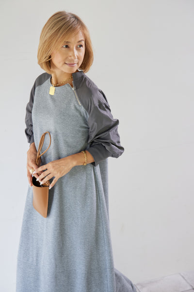 【防静電気】前後2WAY配色ラインやわもちニットワンピース
