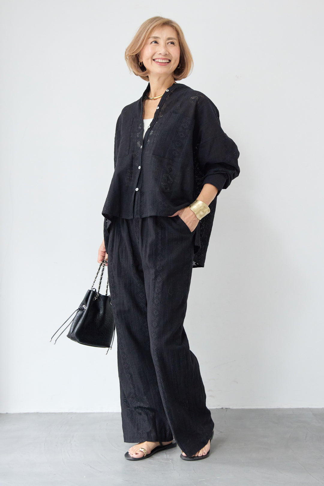 [SET]コットン幾何学レース ドビーシャツ+コットン幾何学レース ドビーワイドパンツ(2set)