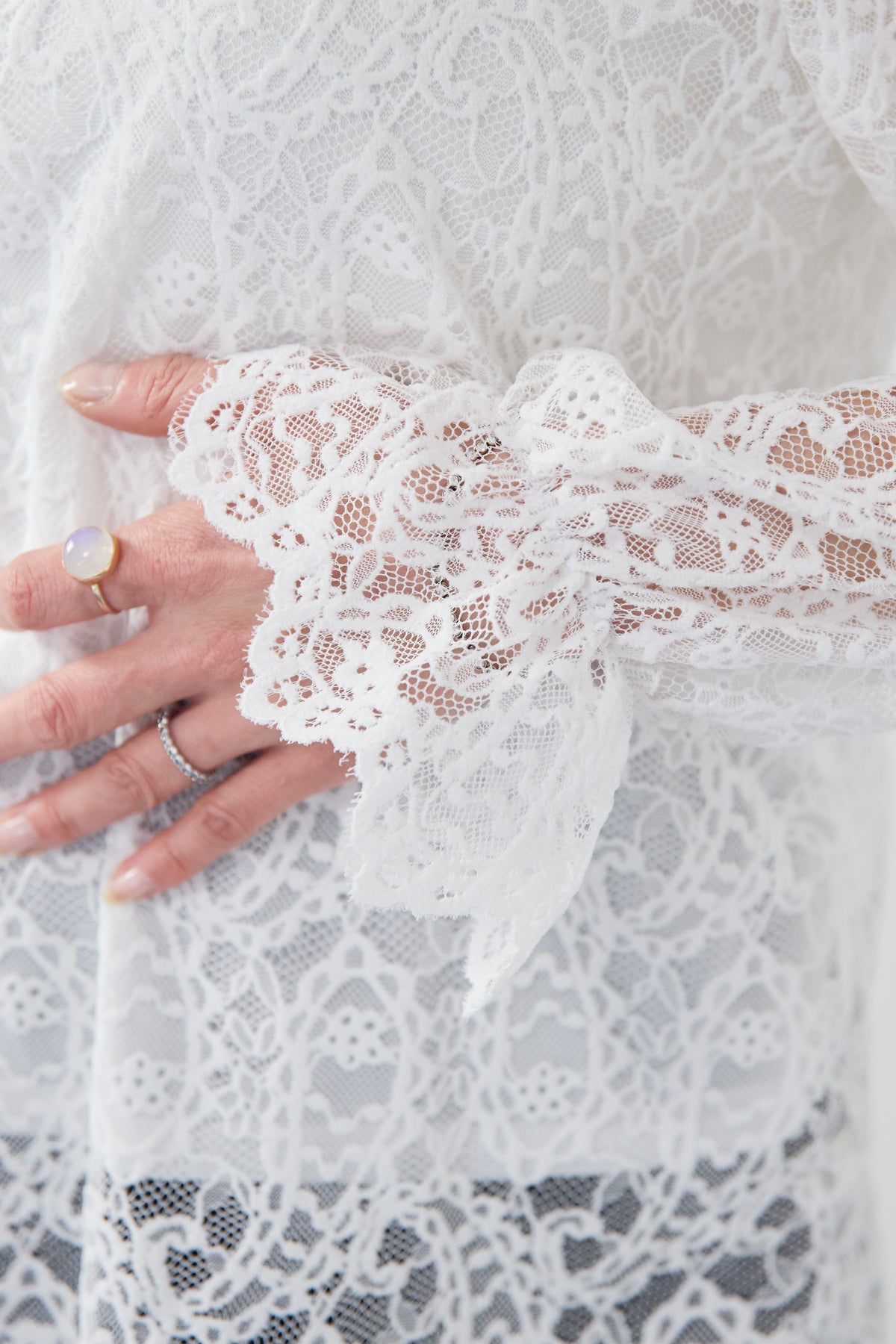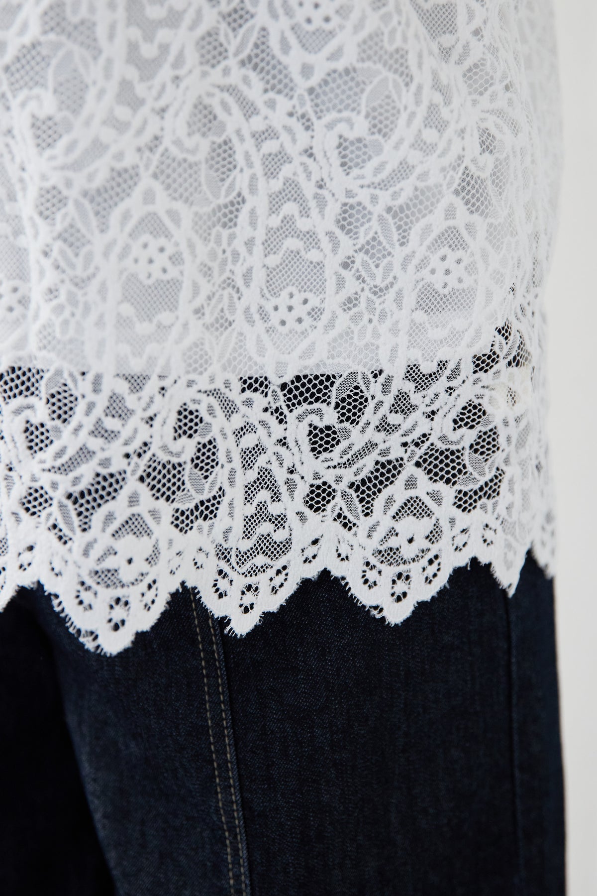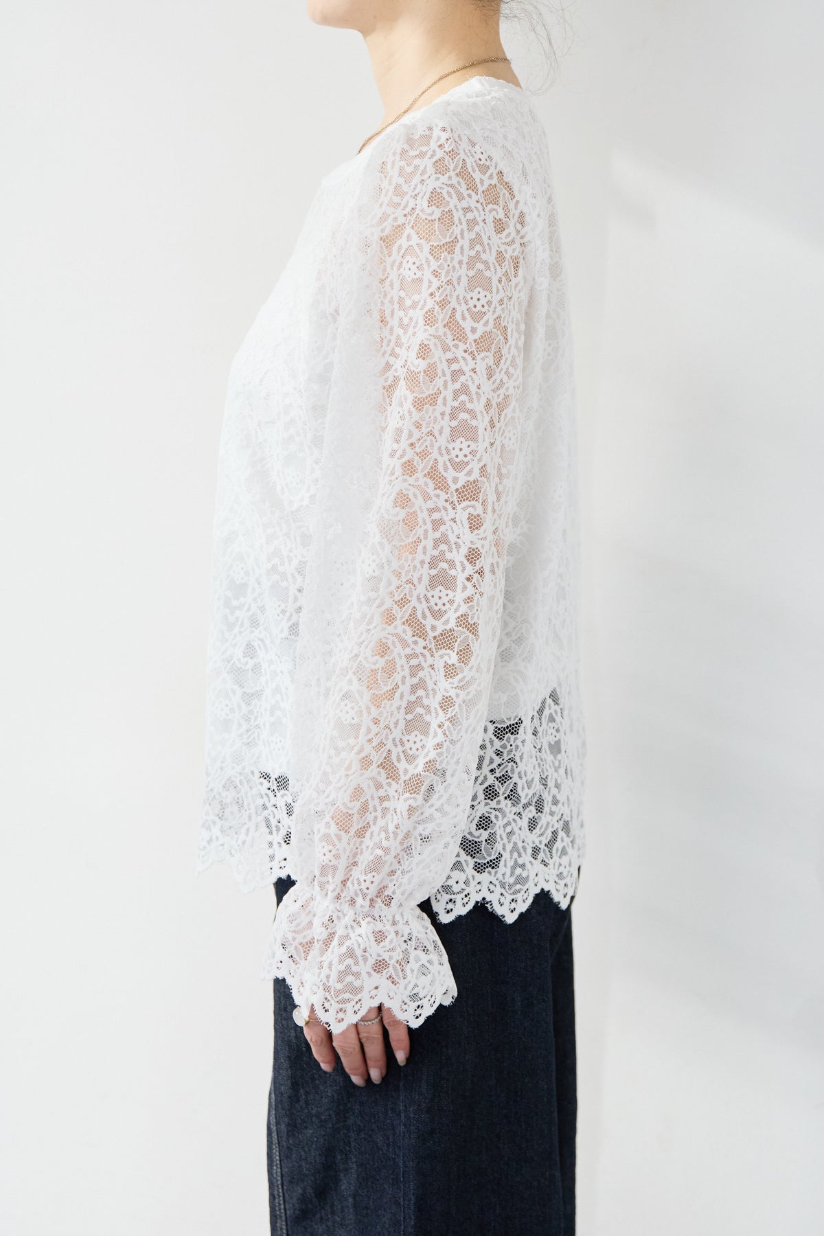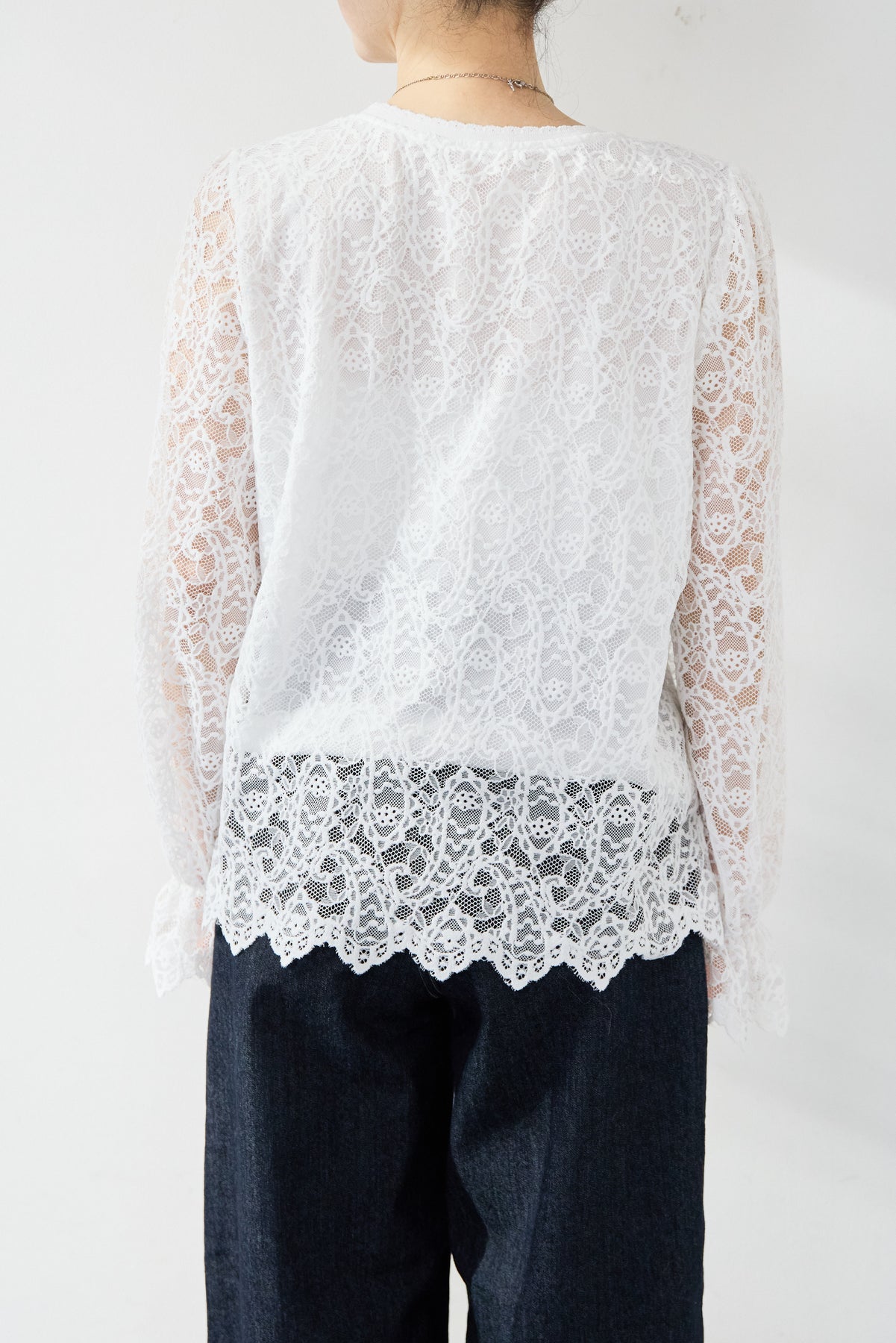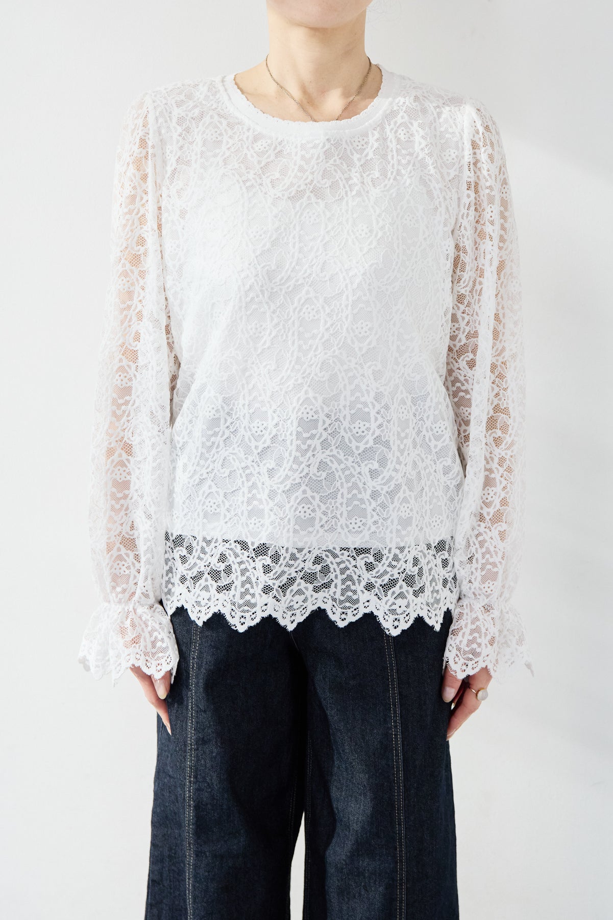 [SET]スカラップヘム レースシアーブラウス+ワークテイストデニムオールインワン(2set)