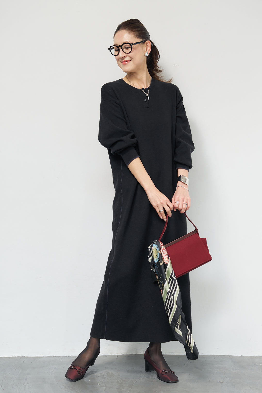 【防静電気】前後2WAY配色ラインやわもちニットワンピース
