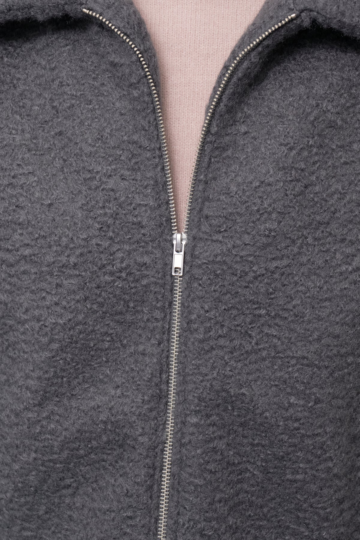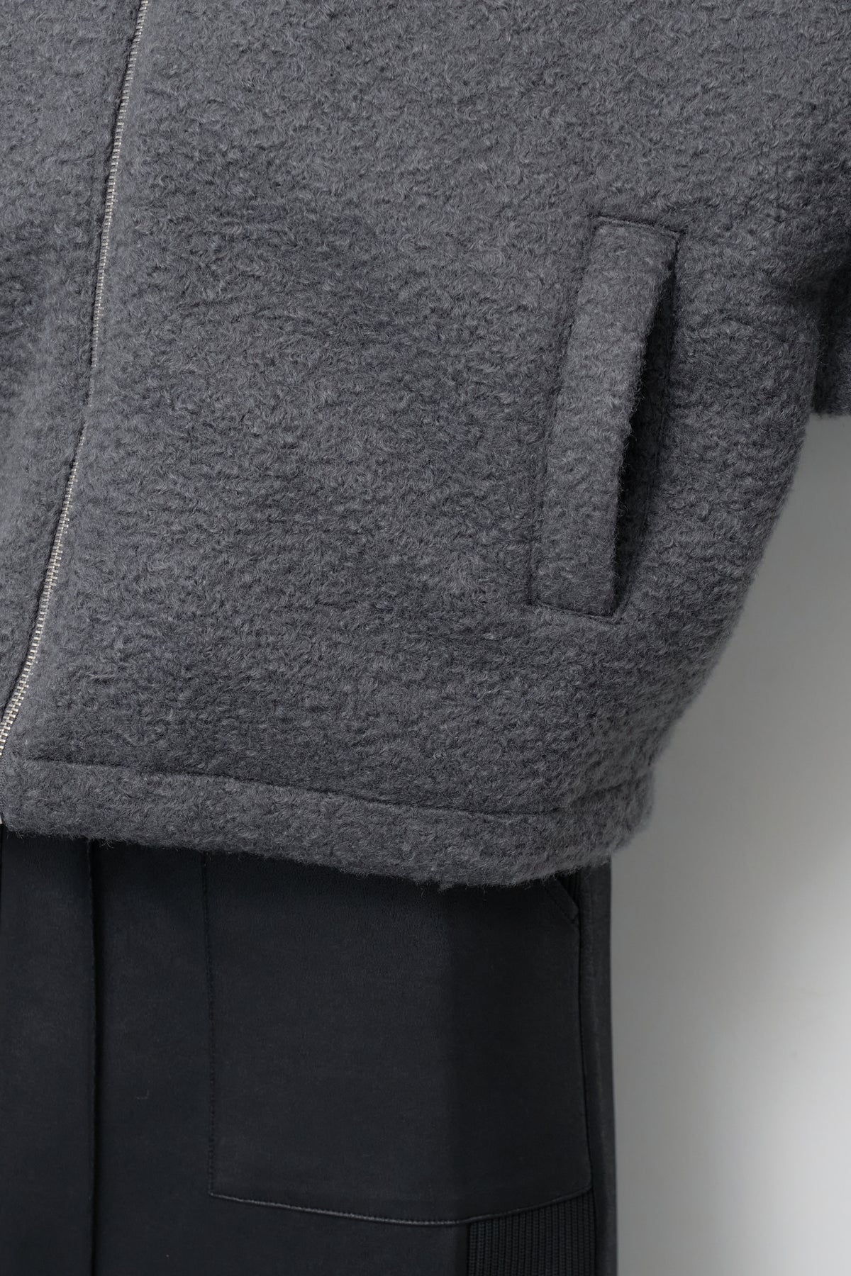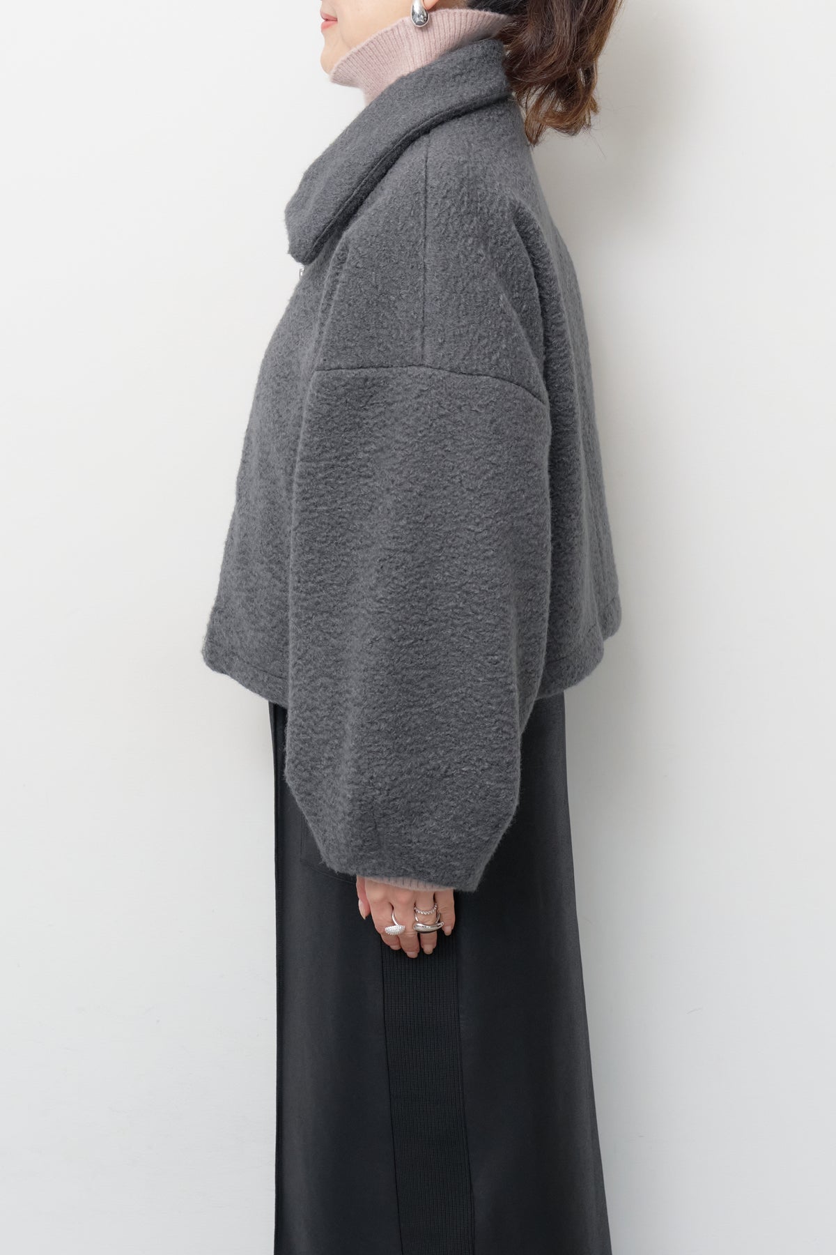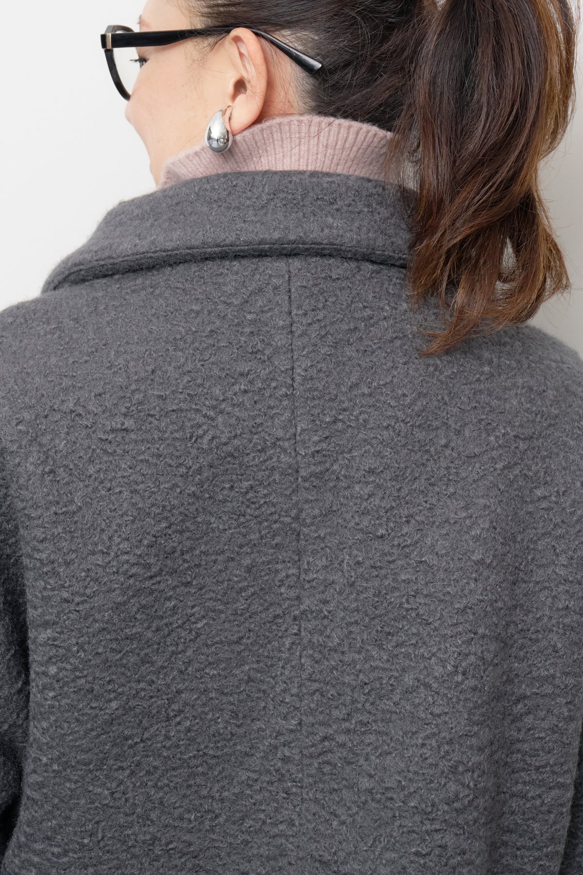 ふんわりとしたシープボア素材が目を惹く、季節感たっぷりのボリュームスリーブジャケット。柔らかく暖かな風合いで、肌寒い季節も心地よく包み込んでくれます。ゆったりと落ちるドロップショルダーと丸みのあるスリーブが、抜け感のある女性らしいシルエットを演出。ショート丈のバランスがスタイルアップ効果をもたらし、どんなボトムスとも相性よく着こなせます。フロントは使いやすいフルジップ仕様。襟は立てても寝かせても様になり、カジュアルからきれいめまで幅広いコーディネートに活躍します。裏地付きで滑りが良く、ニットの上からもストレスなく羽織れるのも嬉しいポイント。デイリー使いはもちろん、洗練されたデザインでお出かけシーンにもおすすめの一着です。
